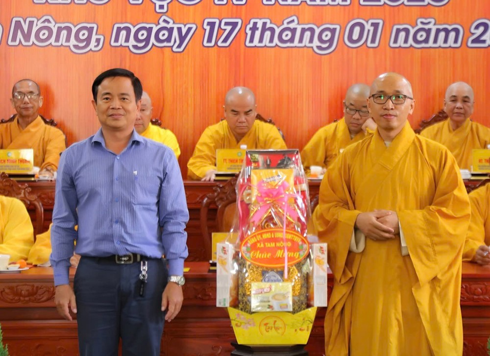 Phát biểu tại Hội nghị, đại diện chính quyền địa phương, ông Lê Công Trường –Phó Chủ tịch UB MTTQVN xã Tam Nông cùng ông Nguyễn Văn Vũ Minh – Tỉnh ủy viên, Giám đốc Sở Nội vụ tỉnh Đồng Tháp đã ghi nhận và đánh giá cao vai trò đồng hành của Phật giáo trong đời sống xã hội tại địa phương.
