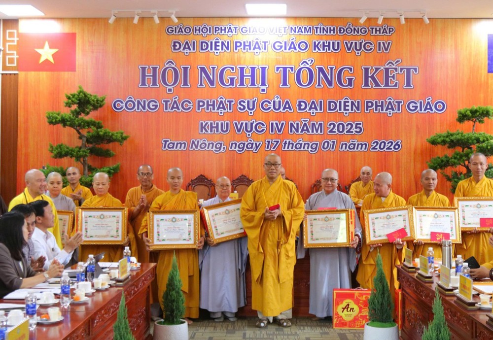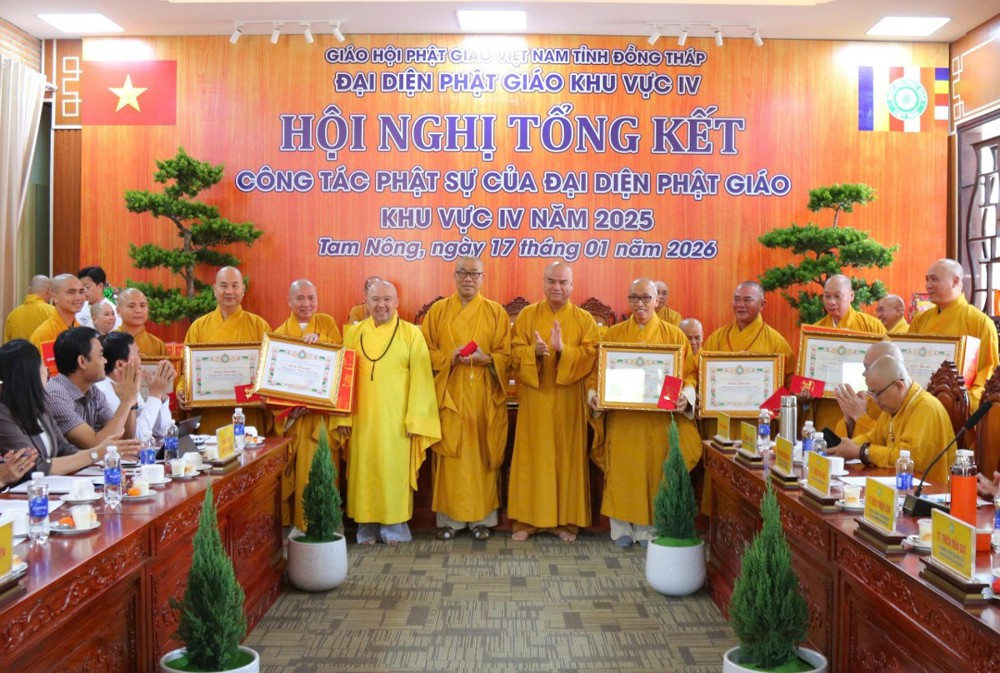 Hội nghị cũng là dịp để ghi nhận và tri ân những đóng góp tích cực của tập thể và các cá nhân đã đồng hành cùng Phật giáo Khu vực IV trong suốt thời gian qua, góp phần giữ vững sự ổn định, hòa hợp và phát triển bền vững của Phật sự tại địa phương.