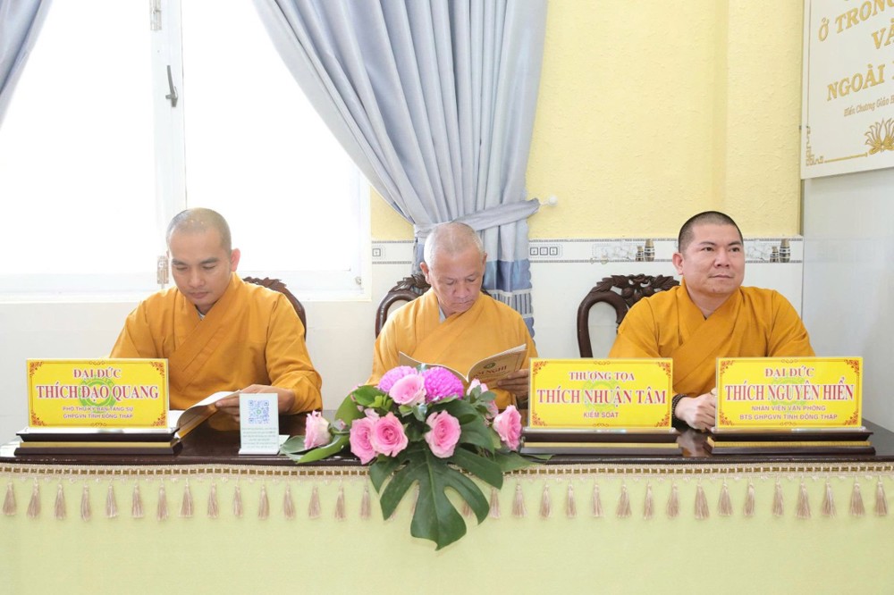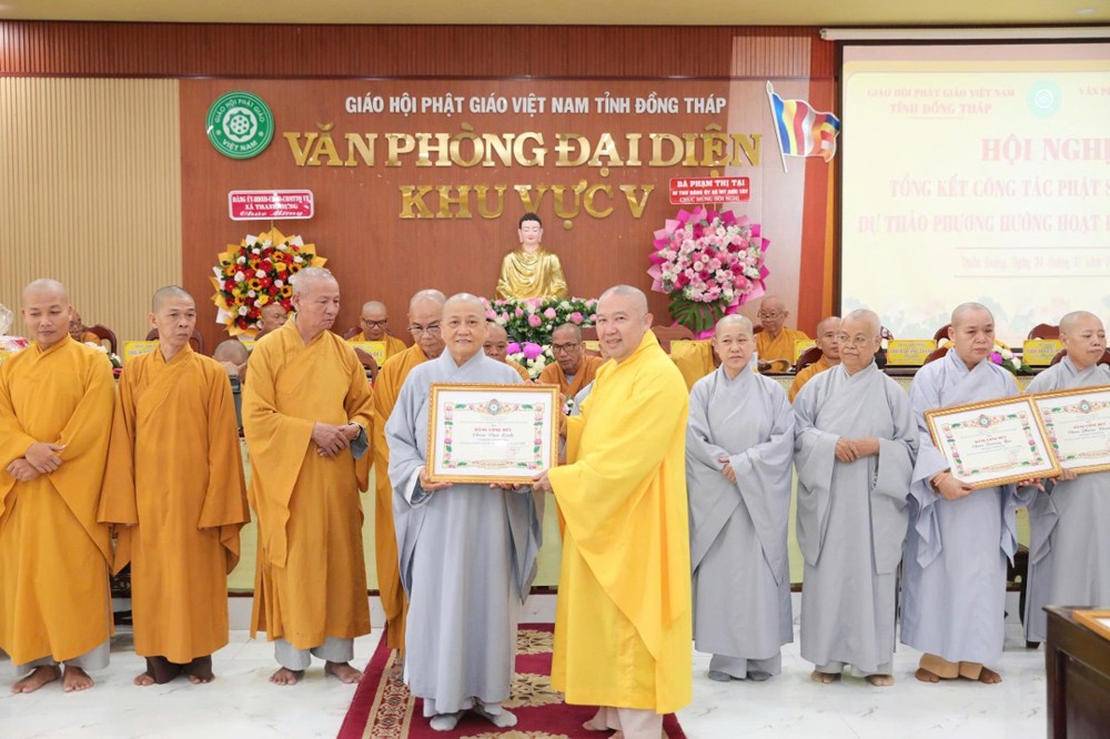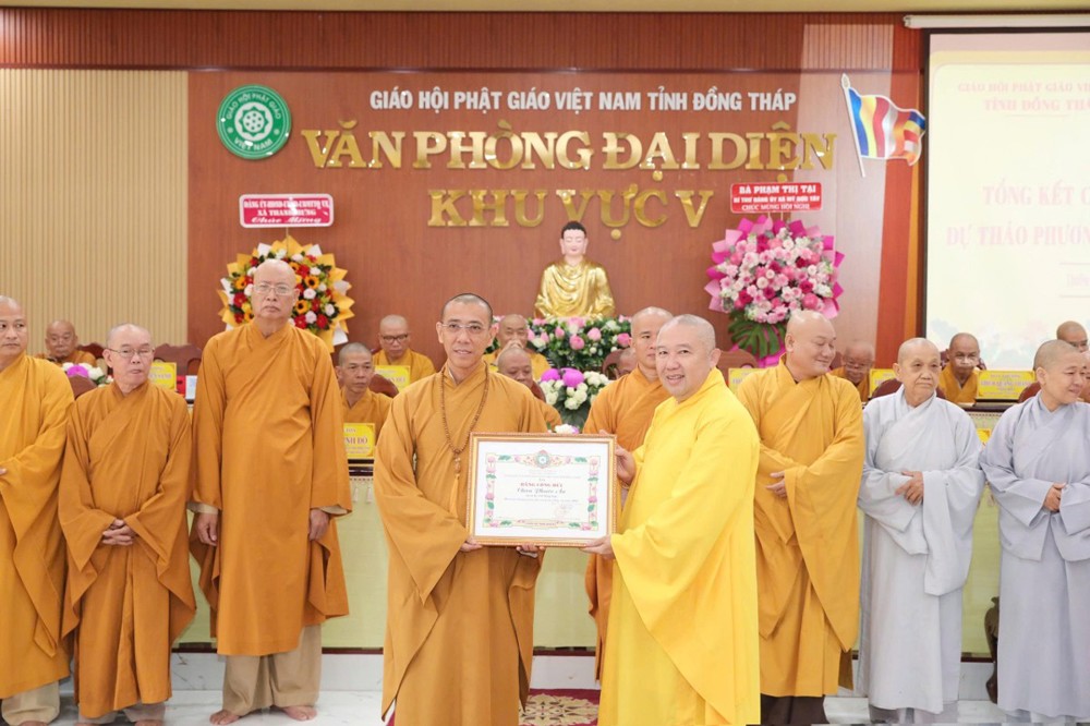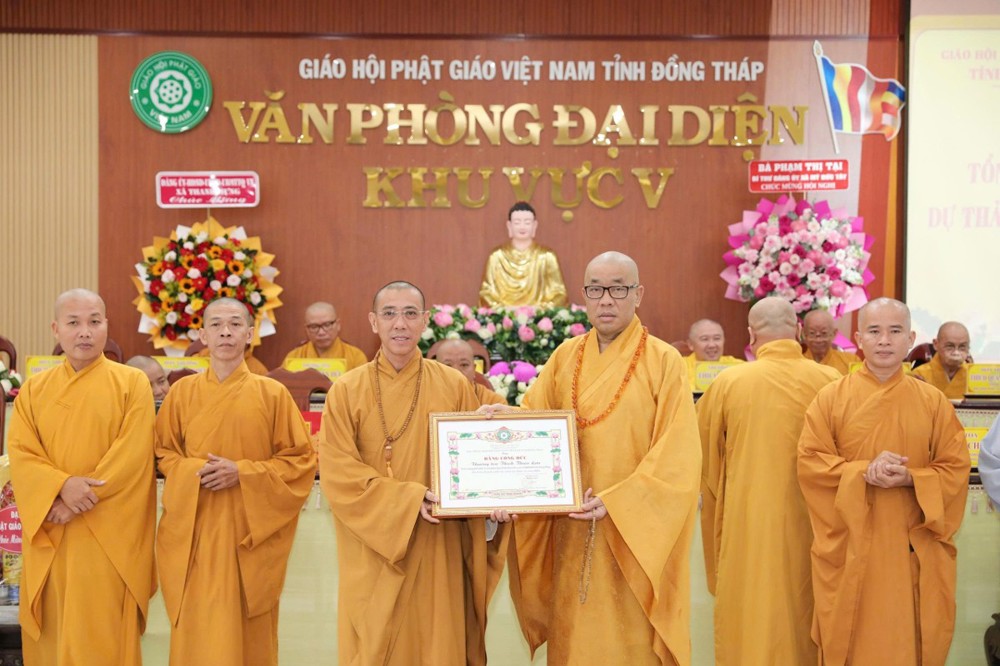 TT.Thích Minh Sơn – Phó Thư ký, Chánh Văn phòng BTS GHPGVN tỉnh Đồng Tháp đã thông qua quyết định trao tặng Bằng công đức của Thường trực BTS tỉnh đến các tập thể và cá nhân có nhiều đóng góp tích cực cho hoạt động Phật sự Khu vực V trong thời gian qua.