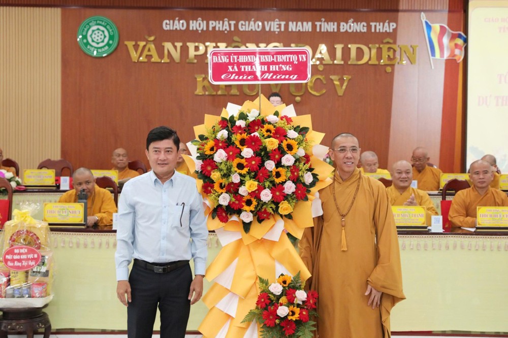 Đại diện chính quyền cơ sở, ông Nguyễn Vĩnh Linh – Phó Chủ tịch UBND xã Thanh Hưng bày tỏ sự trân trọng và đánh giá cao những nỗ lực của Phật giáo Khu vực V trong việc thực hiện thắng lợi các kế hoạch đã đề ra, góp phần giữ gìn ổn định đời sống tinh thần, xây dựng khối đại đoàn kết toàn dân tại địa phương, phát huy tinh thần trách nhiệm công dân, chung tay xây dựng quê hương ngày càng giàu đẹp, phồn thịnh.
