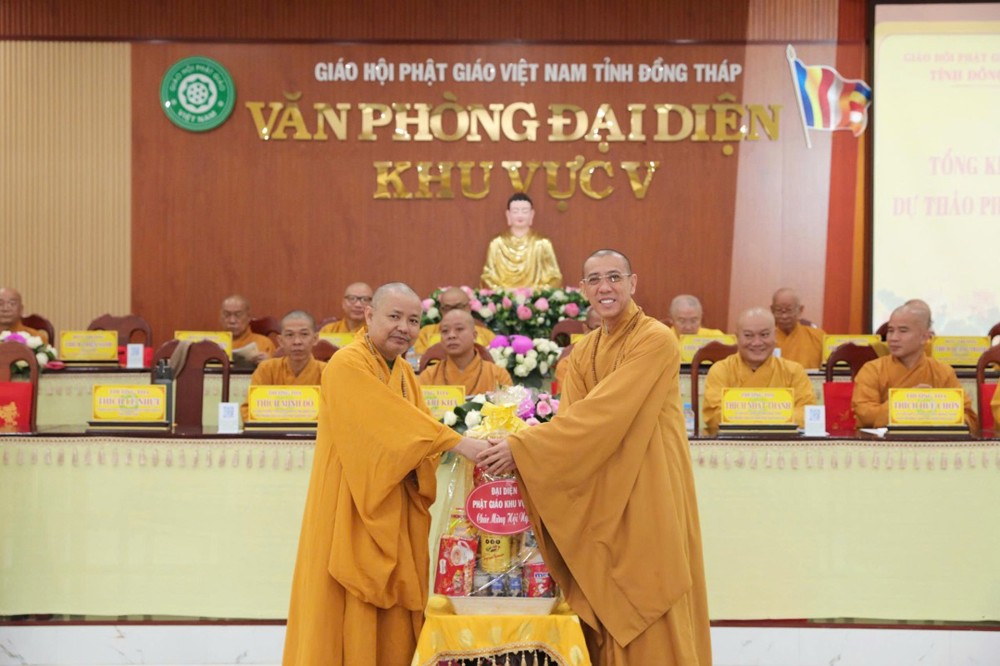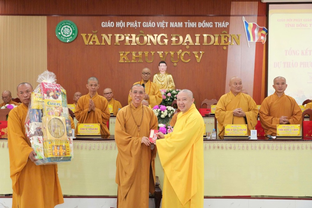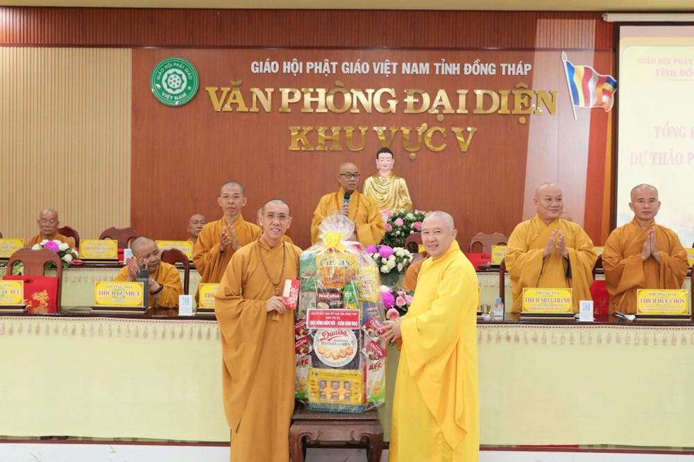 Nhân dịp đón chào Xuân Bính Ngọ, TT.Thích Quảng Lộc thay mặt Ban Thường trực Ban Trị sự GHPGVN tỉnh Đồng Tháp đã có phần quà và gửi lời chúc mừng năm mới an lành, cát tường đến toàn thể Tăng Ni, Phật tử; đồng thời ghi nhận, tán thán tinh thần phụng sự cho những đóng góp tích cực của Phật giáo Khu vực V trong công tác Phật sự và an sinh xã hội.
