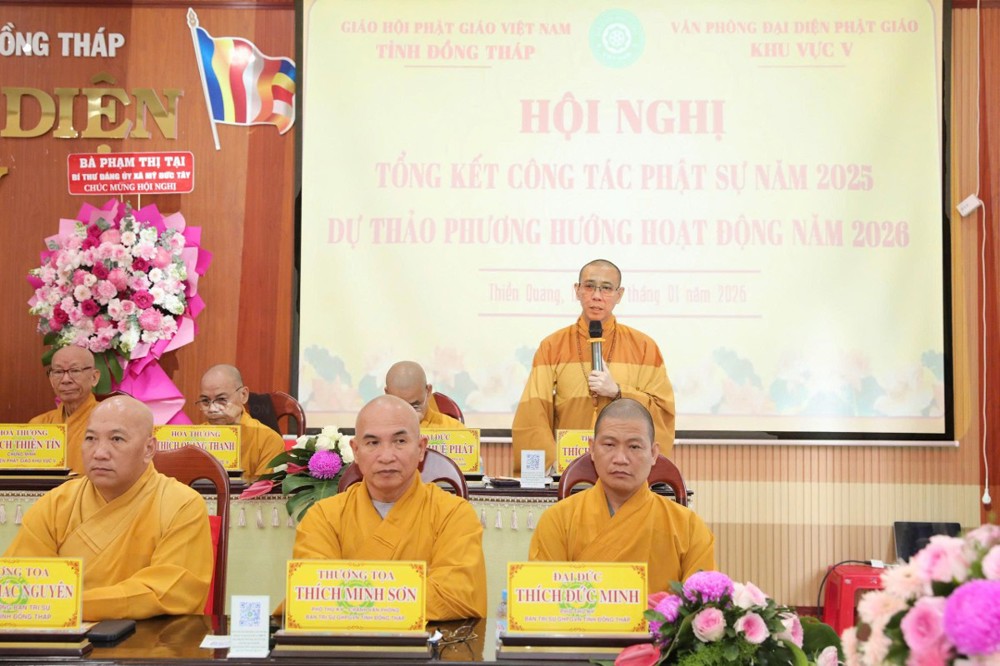 PSO – Sáng ngày 24/01/2026 (nhằm ngày 6/12 năm Ất Tỵ) tại chùa Thiền Quang (quốc lộ 30, xã Thanh Hưng, tỉnh Đồng Tháp) - Văn phòng Đại diện Phật giáo Khu vực V tổ chức Hội nghị Tổng kết công tác hoạt động Phật sự năm 2025 và trình phương hướng hoạt động năm 2026.