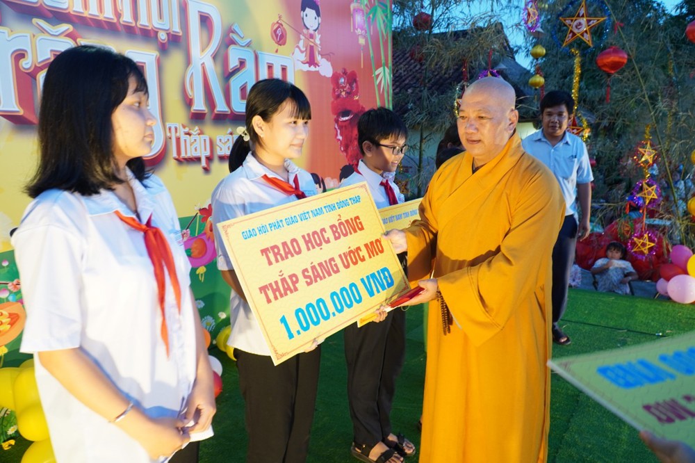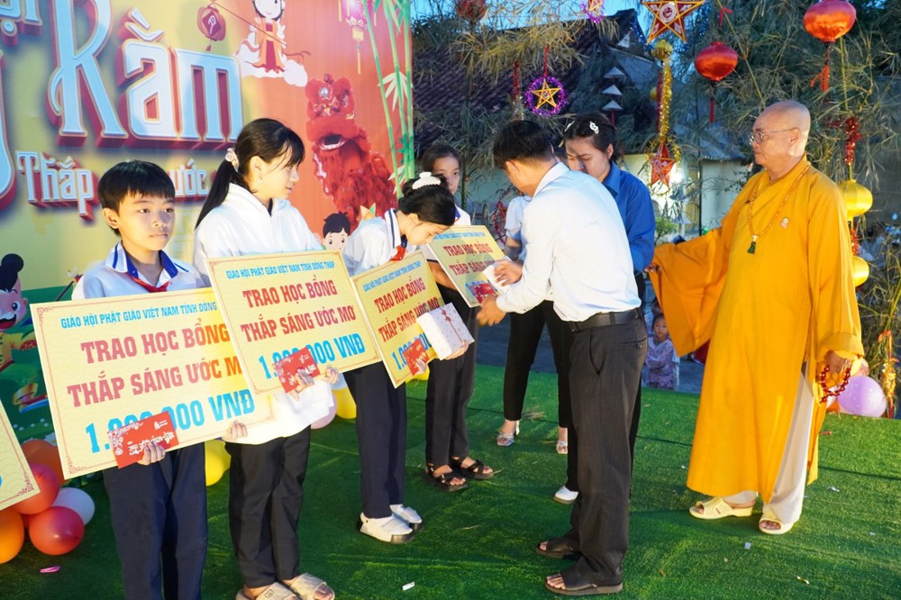 Trung thu ngày Tết đoàn viên từ lâu đã trở thành nét đẹp truyền thống trong đời sống văn hóa của dân tộc Việt Nam. Đây không chỉ là dịp để gia đình quây quần bên nhau, mà còn là ngày hội dành riêng cho các em thiếu niên, nhi đồng những mầm non tương lai của đất nước. Ban Trị sự Giáo hội Phật giáo Việt Nam tỉnh Đồng Tháp phối hợp cùng Hội Liên hiệp Thanh niên tỉnh long trọng tổ chức chuổi chương trình "Đêm hội Trăng rằm" tại khắp các khu vực Phật giáo trên toàn tỉnh, nhằm mang đến cho các em nhỏ một mùa Trung thu ấm áp, trọn vẹn yêu thương, đồng thời khích lệ, động viên tinh thần học tập, rèn luyện của các em.