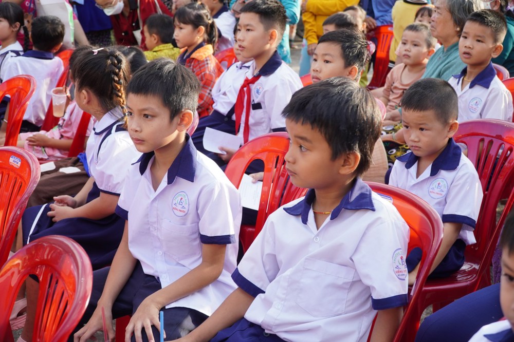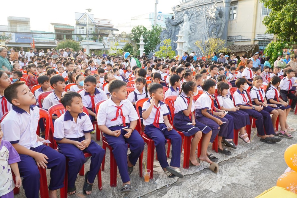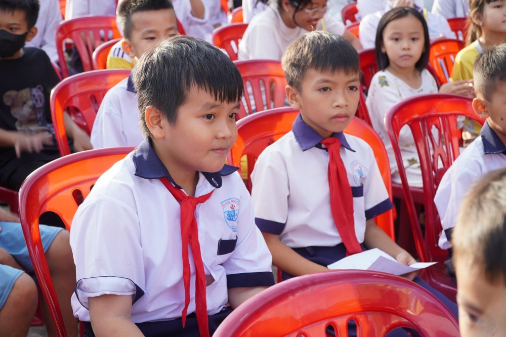 Các em thiếu nhi được nghe ông Tạ Thanh Sang đọc Thư Chúc Tết của Chủ tịch UBND tỉnh Đồng Tháp gửi cho các cháu thiếu nhi trong tỉnh nhân dịp Tết Trung thu năm 2025.