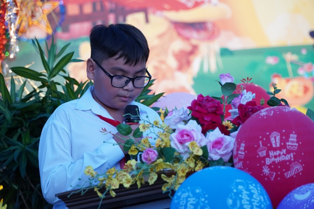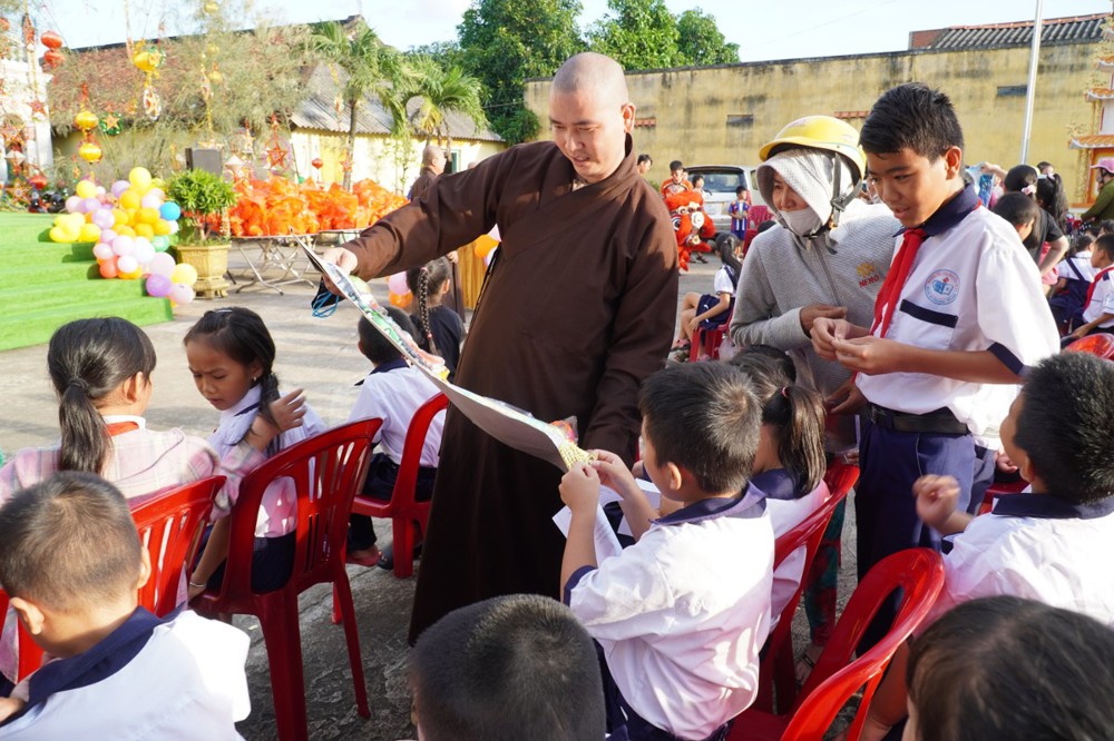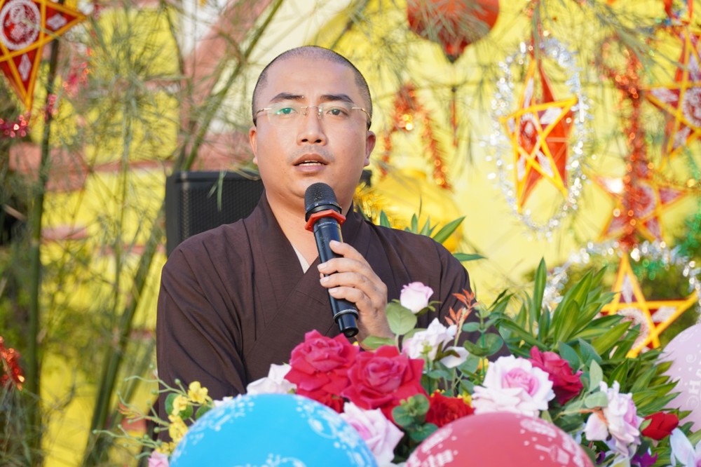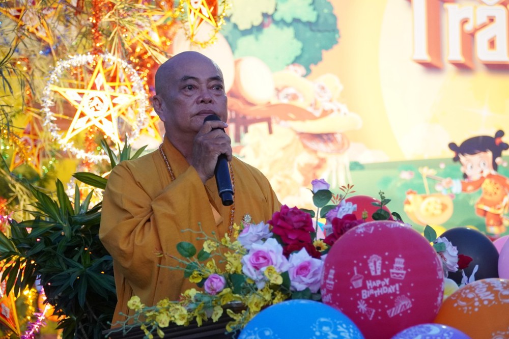 TT.Thích Giác Nguyên thay mặt Ban Tổ chức phát biểu khai mạc, chương trình không chỉ là món quà tinh thần ý nghĩa dành cho thiếu nhi, mà còn thể hiện sự quan tâm, chăm lo của Giáo hội, của các cấp chính quyền và đoàn thể đối với thế hệ trẻ, góp phần bồi đắp niềm tin, nuôi dưỡng tâm hồn trong sáng, giúp các em thêm tự tin và vững bước trên con đường học tập, rèn luyện và trưởng thành.