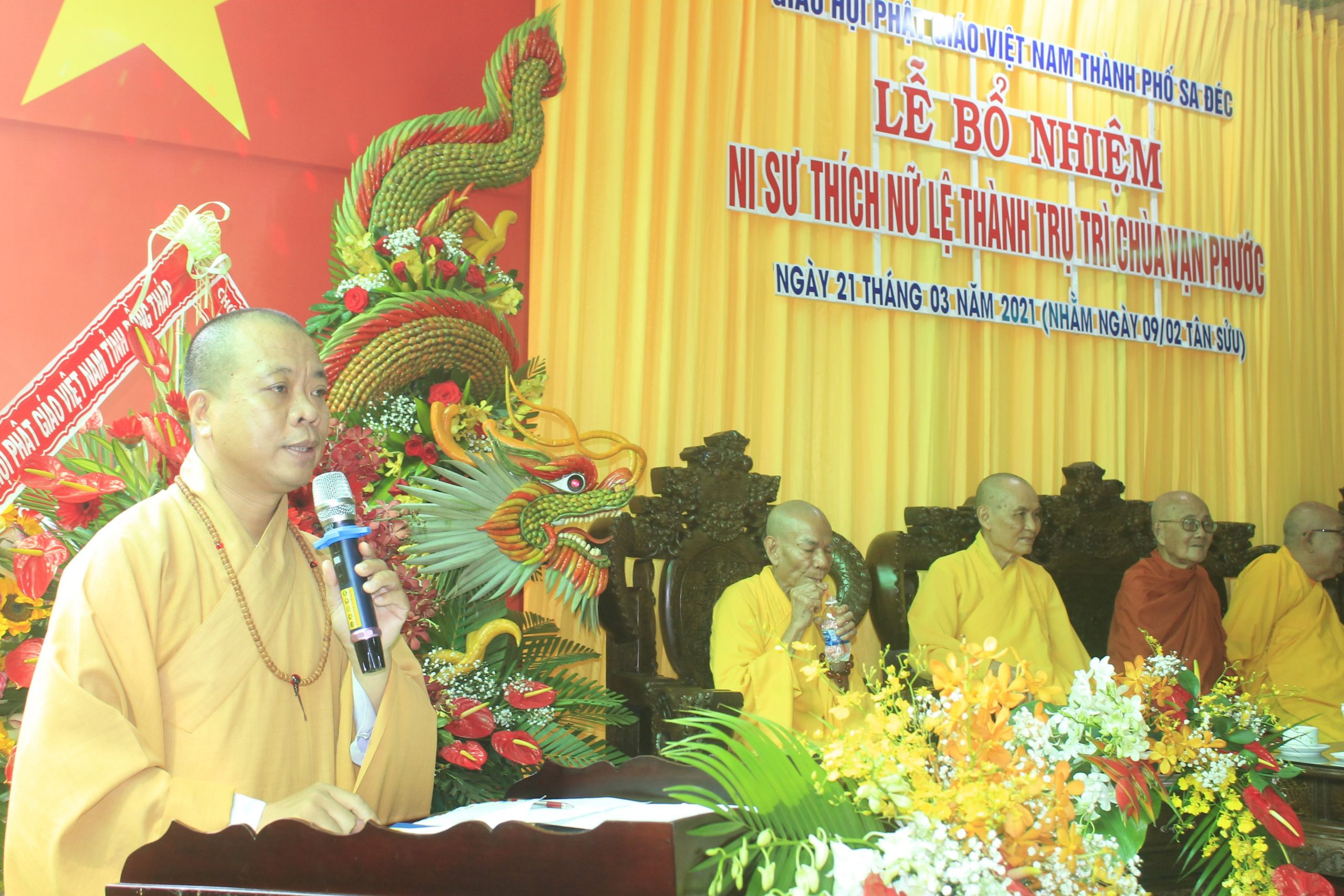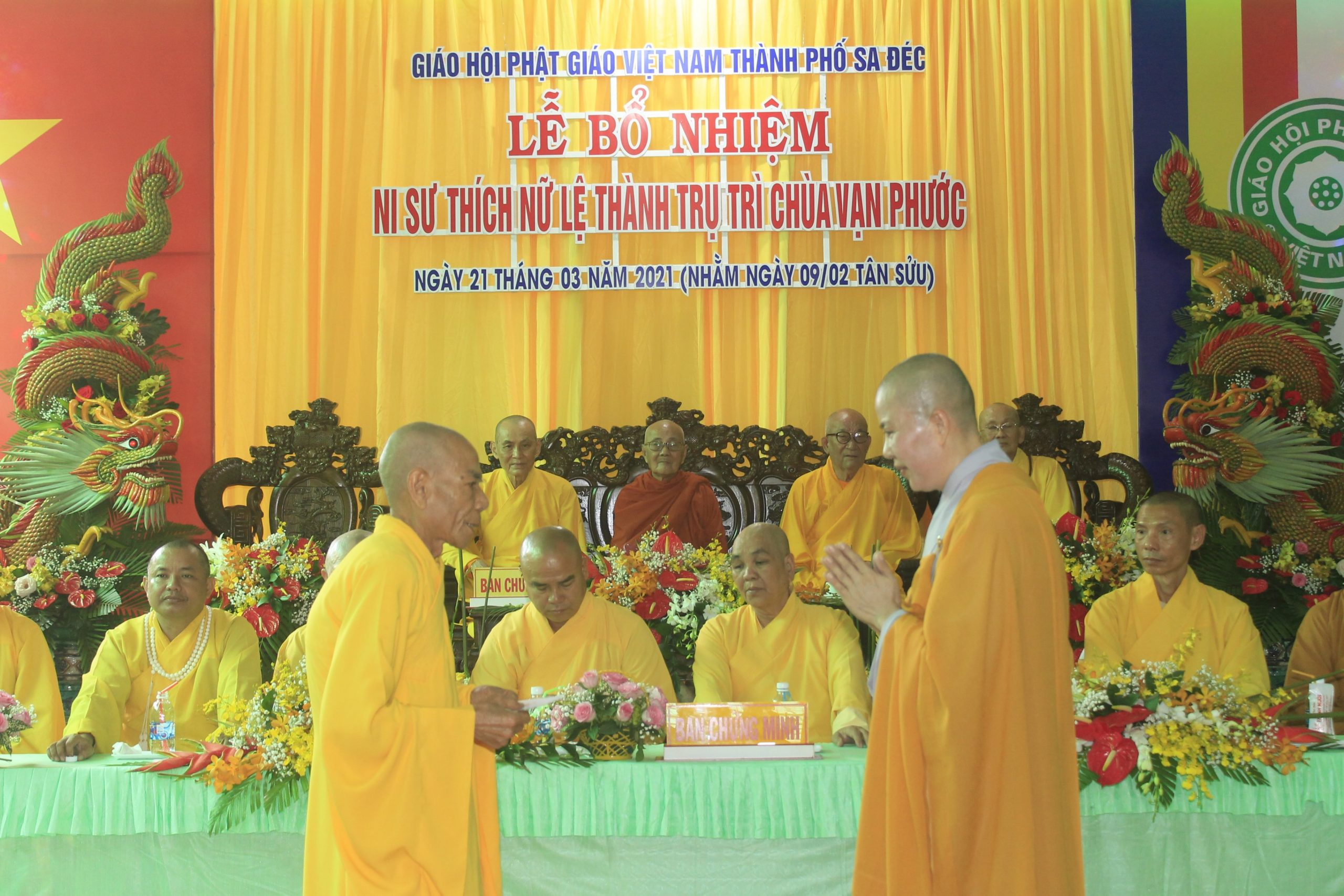 PSO - Sáng ngày 22/3/2021 (nhằm ngày 10/02 năm Tân Sửu), được sự chấp thuận của Ban Trị sự GHPGVN tỉnh Đồng Tháp và các cấp chính quyền, BTS Phật giáo thành phố Sa Đéc long trọng tổ chức lễ bổ nhiệm Ni sư Thích nữ Lệ Thành - trụ trì chùa Vạn Phước.