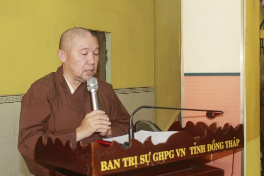 Đại đức Thích Chơn Tâm - Chánh thư ký Ban trị sự GHPGVN tỉnh Đồng Tháp đã tuyên đọc quyết định bổ sung Phó trưởng Ban Trị sự GHPGVN tỉnh Đồng Tháp nhiệm kỳ VIII (2017-2022)
