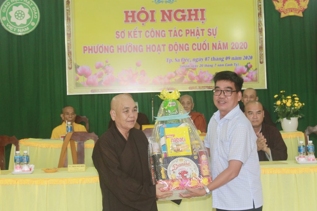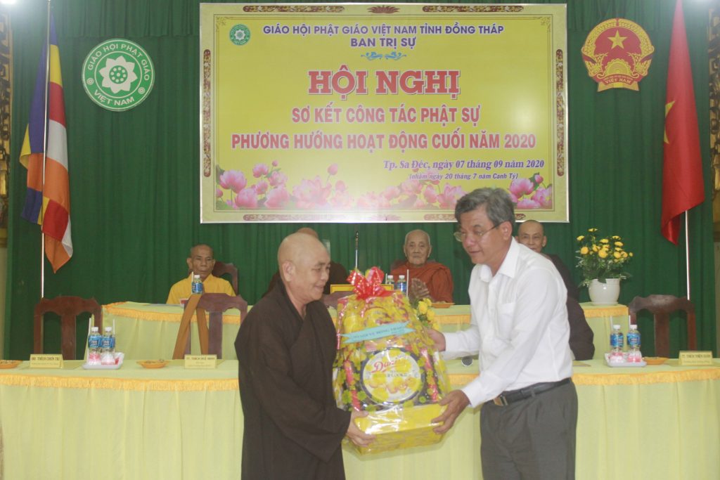 Tham dự hội nghị, Ông Võ Hoàng Cương đại diện các cấp lãnh đạo chánh quyền tỉnh Đồng Tháp phát biểu đồng tình với báo cáo hoạt động Phật sự 06 tháng đầu năm và phương hướng hoạt động 06 tháng cuối năm 2020. Trong thời gian qua, Phật giáo Đồng Tháp đã thực hiện lời kêu gọi ủng hộ phòng chống dịch bệnh, hỗ trợ từ thiện cho bà con có hoàn cảnh khó khăn với hơn 10 tỷ đồng, góp phần tích cực cho tỉnh nhà vượt qua khó khăn về kinh tế, văn hóa xã hội địa phương. Ông Hoàng Cương mong muốn Phật giáo Đồng Tháp sẽ luôn đoàn kết, đồng hành nhiều hơn nữa trong việc an sinh xã hội, lập thành tích để chào mừng Đại hội Đảng tỉnh Đồng Tháp được thành công tốt đẹp.