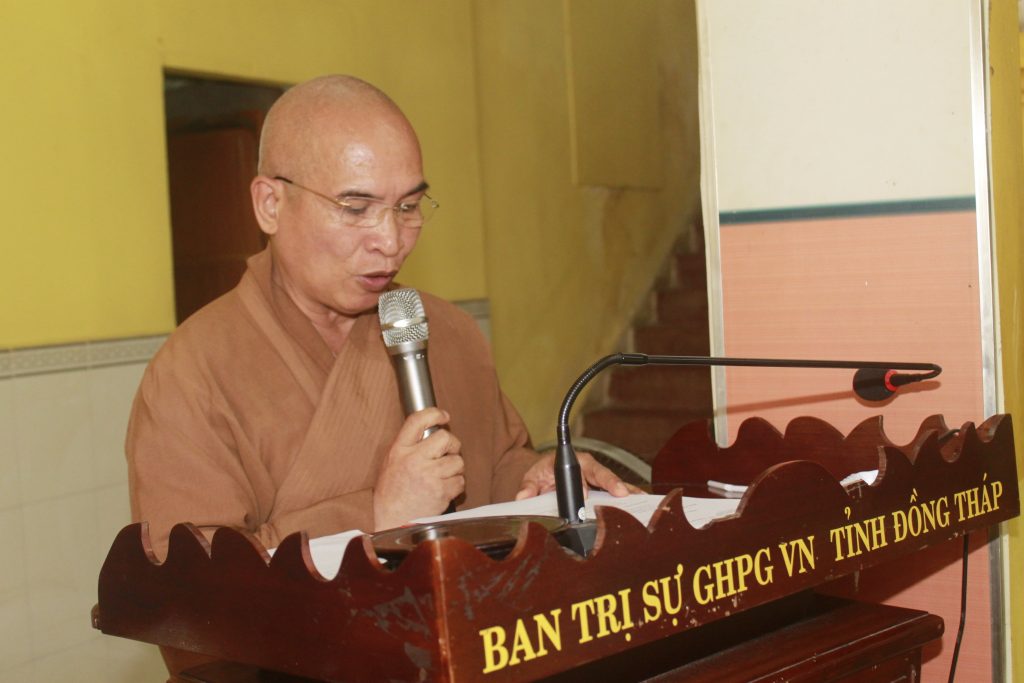 TT.Thích Minh Sơn - Phó Chánh Thư ký BTS PG tỉnh báo cáo sơ kết Phật sự 6 tháng đầu nămTrong những tháng đầu năm vừa qua, đại dịch Covid-19 hoành hành trên toàn cầu nói chung và tại Việt Nam nói riêng, đã ảnh hưởng lớn đến sự phát triển kinh tế – văn hóa cả nước. Thực hiện sự chỉ đạo của Ban Thường trực HĐTS GHPGVN, sự quan tâm giúp đỡ của chính quyền, ban ngành hữu quan các cấp, đặc biệt là sự cố gắng nỗ lực của tập thể BTS GHPGVN tỉnh, cùng toàn thể chư tôn đức Tăng Ni trụ trì các cơ sở tự viện trên địa bàn tỉnh, hoạt động công tác Phật sự của Phật giáo tỉnh Đồng Tháp 06 tháng đầu năm 2020 với trọng tâm về các lĩnh vực như: Hoằng pháp, Giáo dục Tăng Ni, Nghi lễ, Hướng dẫn Phật tử, Từ thiện Xã hội theo Nghị quyết hội nghị Tổng kết công tác Phật sự năm 2019 đề ra đã đạt được nhiều kết quả thành công tốt đẹp.