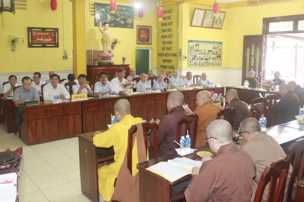 Quang cảnh Hội nghị Sơ kết Phật sự 06 tháng đầu năm 2020Thường trực Ban Trị sự giao Ban Hoằng pháp, Ban Hướng dẫn Phật tử kết hợp với Ban Thông tin Truyền thông Phật giáo tỉnh thông báo tới các tự viện, Tăng Ni, Phật tử về việc thực hiện cách ly xã hội, không tổ chức các khóa tu, các hoạt động tập trung đông người, thực hiện cấm túc tại chỗ, đồng thời đảm bảo an toàn trong phòng chống dịch Covid-19 cho thiện nam tín nữ Phật tử và khách thập phương khi đến chùa. Các đạo tràng phải tạm ngừng sinh hoạt, khuyến khích các chùa thuyết giảng Phật pháp trực tuyến (Online), chỉ duy trì các khóa lễ thường nhật, tụng kinh cầu nguyện quốc thái dân an, nạn dịch sớm được tiêu trừ.