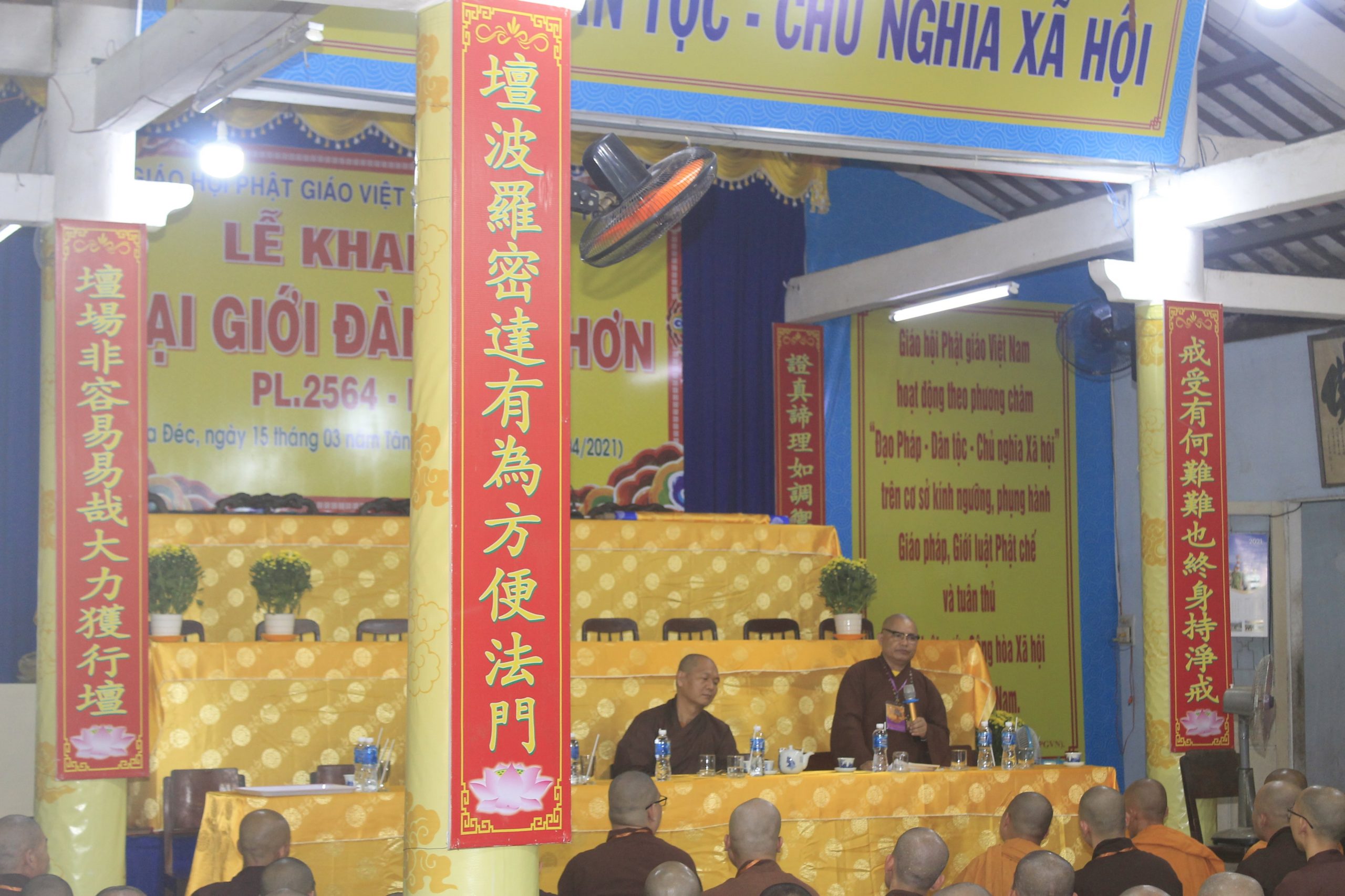 Tại buổi họp, Ban Thư ký BTS đã trình kế hoạch tổ chức Đại giới đàn Từ Nhơn; Tôn danh Ban Chứng minh, thành lập Ban Tổ chức, Ban Hộ đàn, Ban Quản giới tử, nội dung khảo hạch, Ban Giám khảo chấm bài khảo thí... Và đại diện các ban ngành được phân công đã báo cáo trình lên chư Tôn đức lãnh đạo Ban Trị sự GHPGVN tỉnh Đồng Tháp các công tác chuẩn bị liên quan đến đời sống sinh hoạt của giới tử tại giới trường.