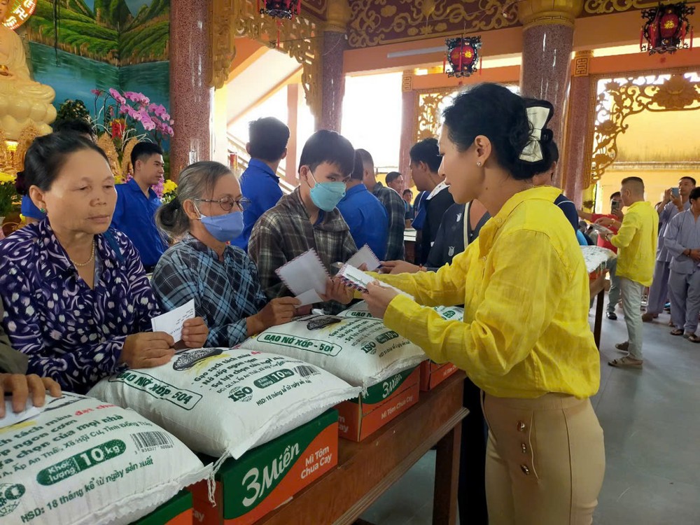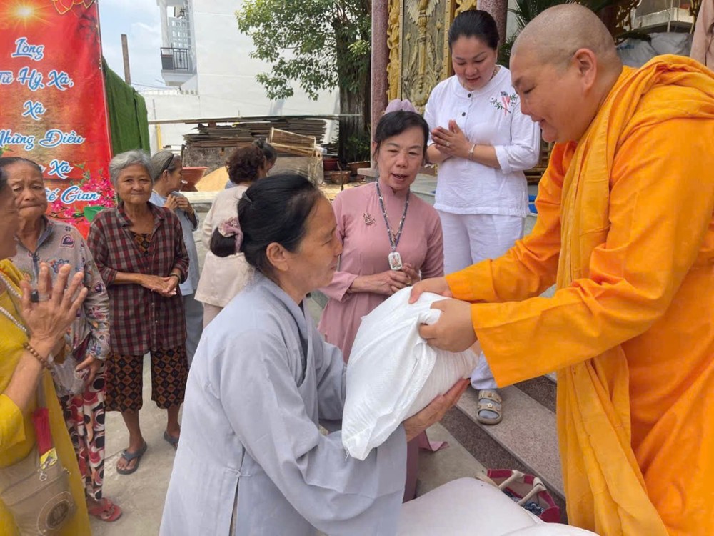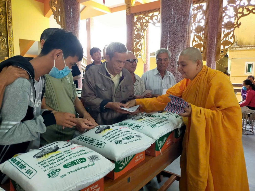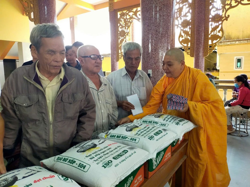 Cũng với tinh thần sẻ chia, trước nay một ngày, Ni sư Thành Liên tổ chức trao tặng 01 tấn gạo cho bà con nghèo. Tổng trị giá chung của 2 đợt tặng quà là 120 triệu đồng.