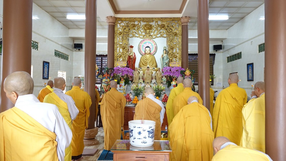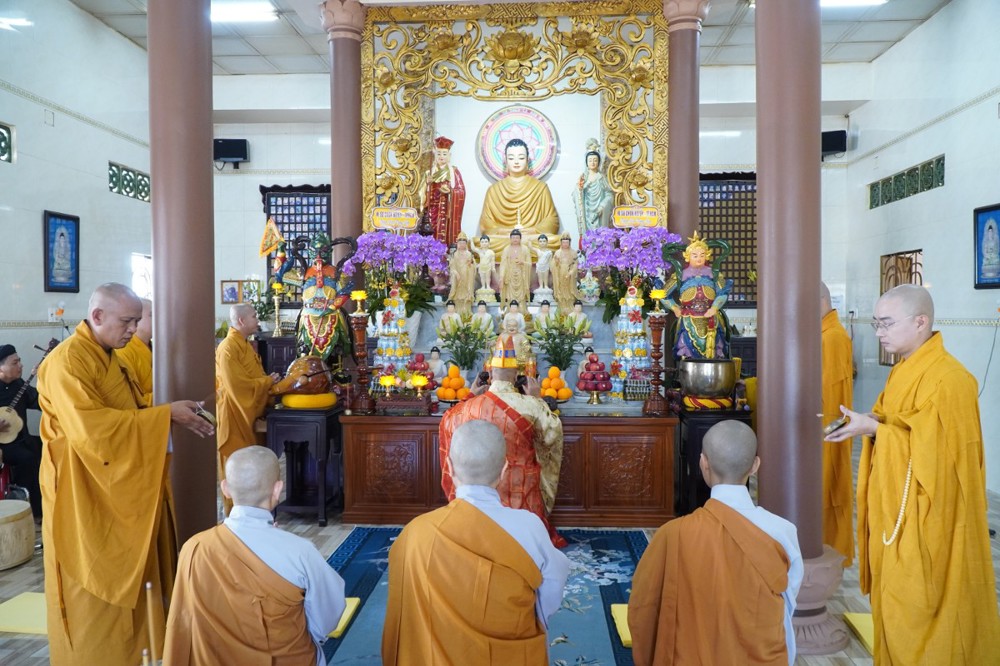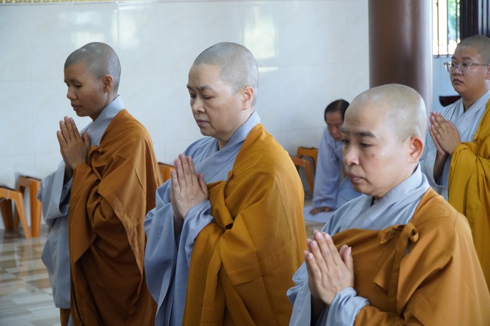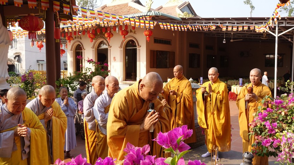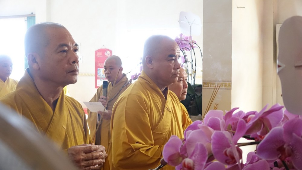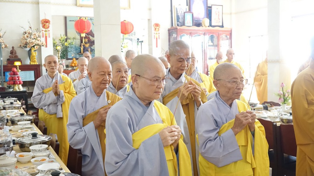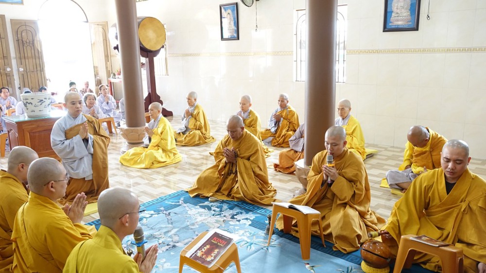 Trong không khí trang nghiêm, thanh tịnh, chư Tôn đức chứng minh đã niêm hương bạch Phật, thực hiện nghi thức sái tịnh và nhiễu tháp báo ân tại khuôn viên bảo tháp Ni trưởng. Tiếp đó, tại Chánh điện và Tổ đường, đại chúng đã đồng thanh trì tụng kinh văn, thực hiện nghi lễ theo nghi thức truyền thống thiền môn.