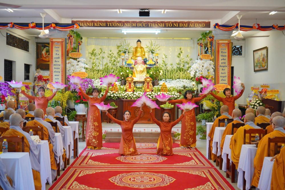 Tại buổi lễ tưởng niệm, sau nghi thức dâng hương hoa cúng dường, hội chúng cùng ngồi lại trang nghiêm lắng nghe những dòng chữ kể về cuộc đời của Đức Thánh Tổ Ni, qua đó nhắc nhở nhau cùng tinh tấn hơn nữa trên con đường tu tập và hành đạo.
