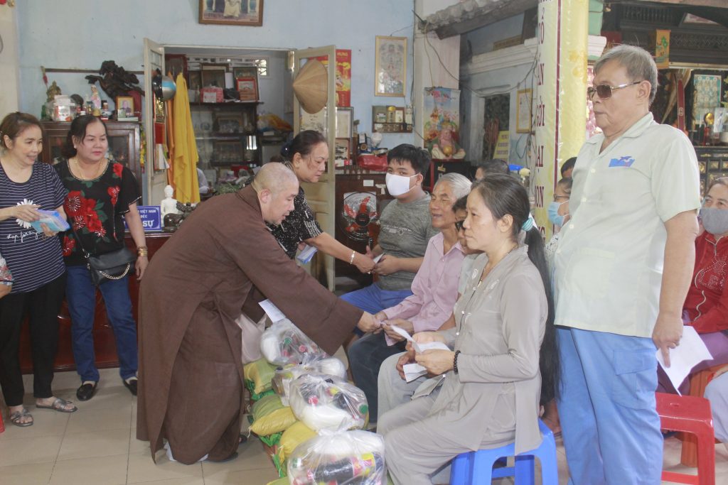 Đại đức Thích Chơn Trí cùng quý mạnh thường quân danh nghiệp trao quà cho bà con khiếm thị