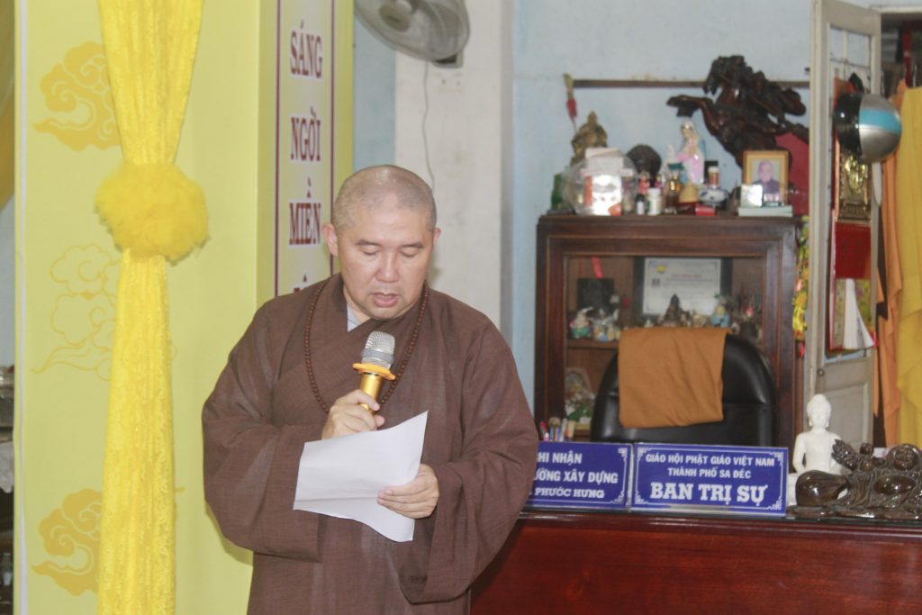 Đại đức Thích Chơn Trí - Phó ban Trị sự kiêm Trưởng ban Kinh tế Tài chánh GHPGVN tỉnh Đồng Tháp, Trưởng ban Trị sự Phật giáo Thành phố Sa Đéc, Phó trụ trì chùa Phước Hưng phát biểu