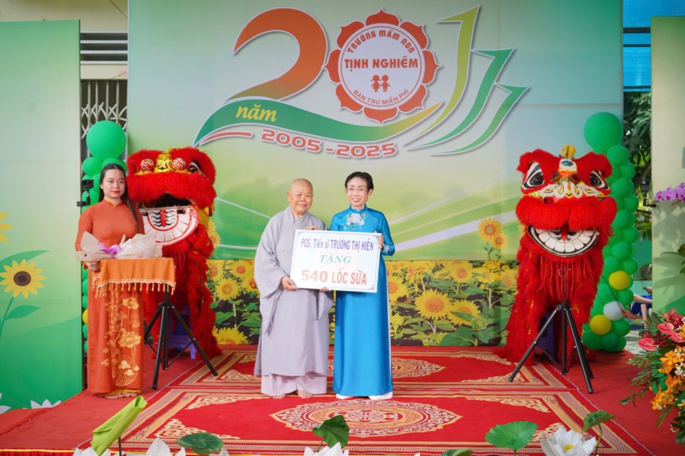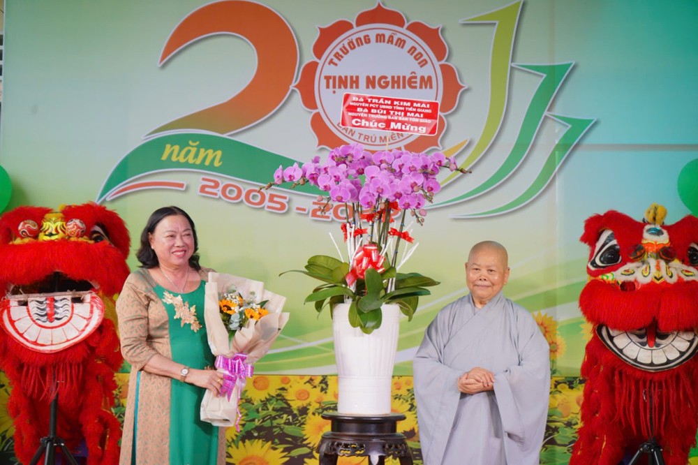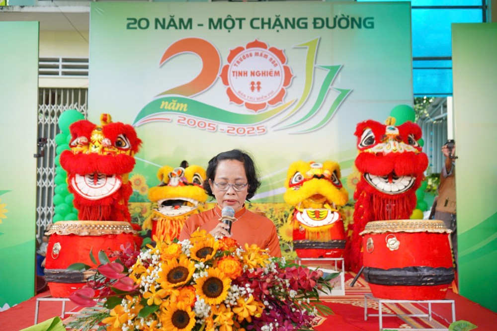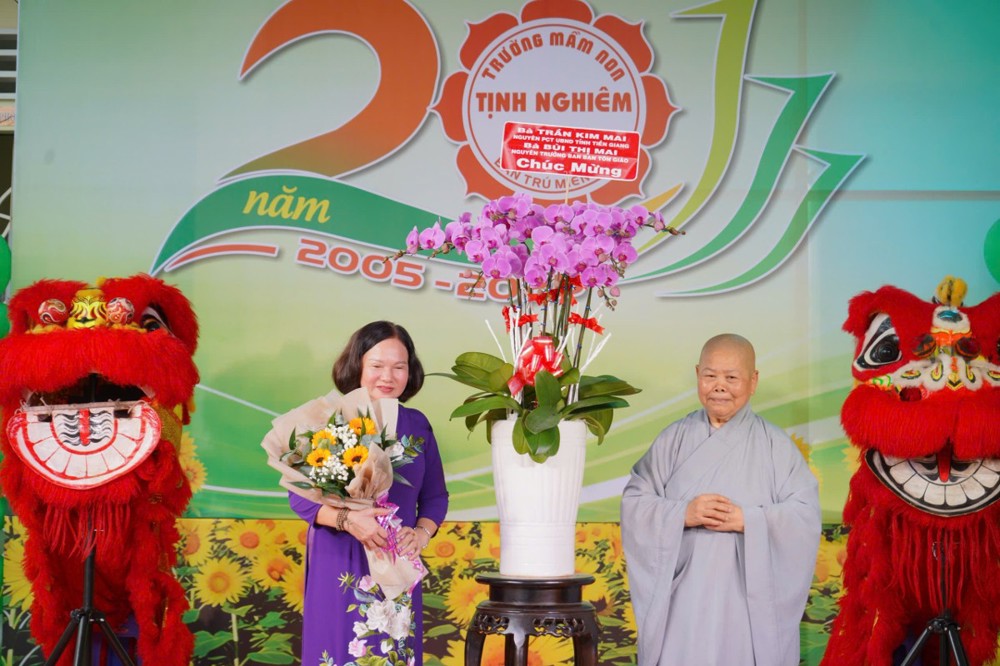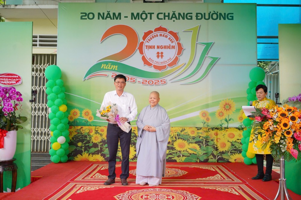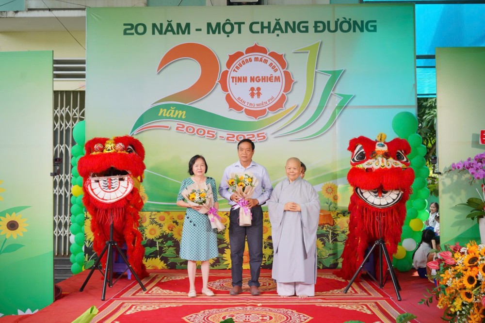 Thay mặt Trung ương Hội Khuyến học Việt Nam, PGS.TS Trương Thị Hiền phát biểu chúc mừng và đánh giá cao ý nghĩa nhân văn của mô hình giáo dục này: “Trường Mầm non miễn phí Tịnh Nghiêm là một mô hình độc đáo, kết hợp giữa tinh thần Phật giáo từ bi và chủ trương khuyến học – khuyến tài của Đảng và Nhà nước. Hai mươi năm qua, ngôi trường đã gieo hạt mầm tri thức và nhân ái, góp phần nuôi dưỡng thế hệ trẻ có đạo đức, nhân văn, biết sống yêu thương và chia sẻ.