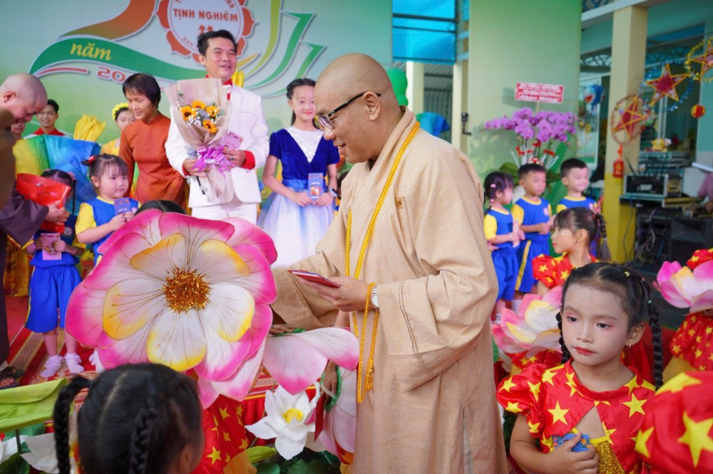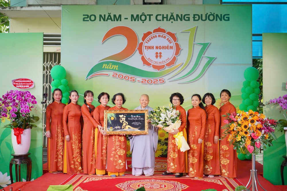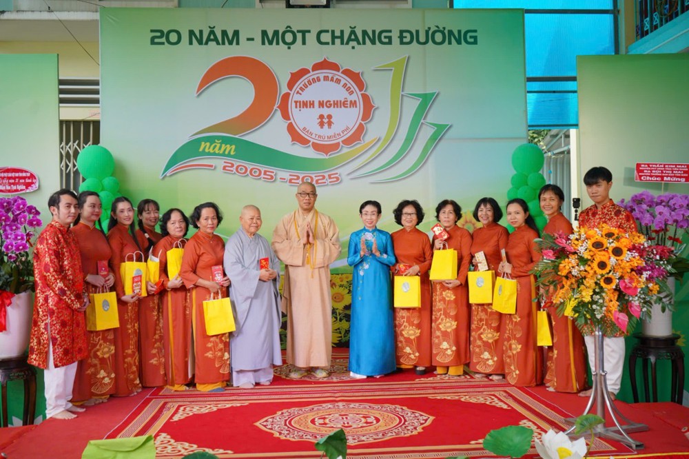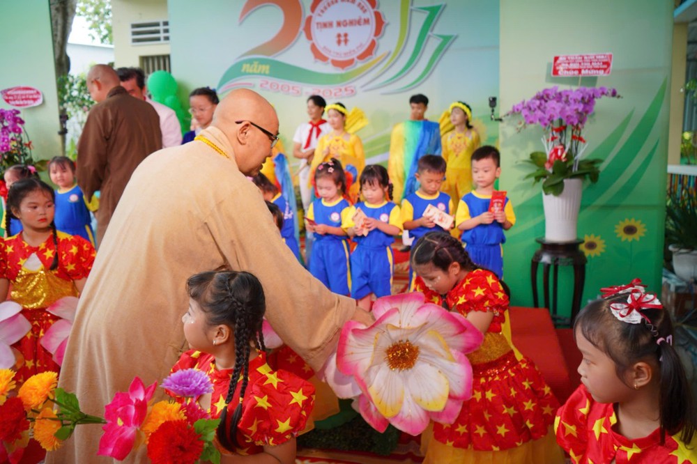 Trong buổi lễ, Thượng tọa Thích Quảng Lộc thay mặt Ban Trị sự GHPGVN tỉnh Đồng Tháp bày tỏ niềm hoan hỷ và tán thán công đức của Ni trưởng cùng tập thể nhà trường: “Hai mươi năm là một chặng đường không dài với một ngôi trường, nhưng lại là cả một hành trình phụng sự không mỏi mệt. Từ bi và trí tuệ được kết hợp hài hòa trong mô hình giáo dục của Trường Mầm non Tịnh Nghiêm, đó chính là minh chứng cho tinh thần nhập thế của đạo Phật – mang ánh sáng từ bi đến với từng mảnh đời nhỏ bé. Xin được tri ân Ni trưởng Thích Nữ Tịnh Nghiêm và chư Ni chùa Tịnh Nghiêm – những người đã biến lý tưởng Bồ Tát hạnh thành hành động cụ thể qua từng bữa cơm, từng bài học và từng nụ cười trẻ thơ.”
