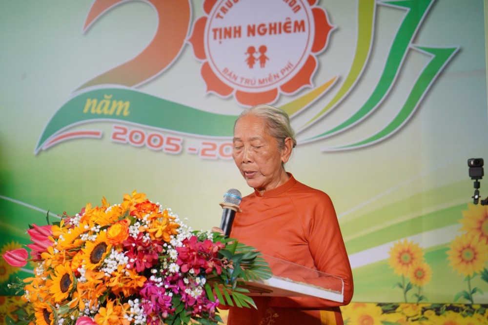 Trong lời cảm tạ, Ni trưởng Thích Nữ Tịnh Nghiêm xúc động chia sẻ: “Hai mươi năm qua, chúng con chỉ mong góp chút tâm lực nhỏ bé để mang ánh sáng Phật pháp đến với những hoàn cảnh kém may mắn trong cuộc sống. Mỗi nụ cười của các bé là nguồn động viên để chúng con tiếp tục con đường phụng sự.