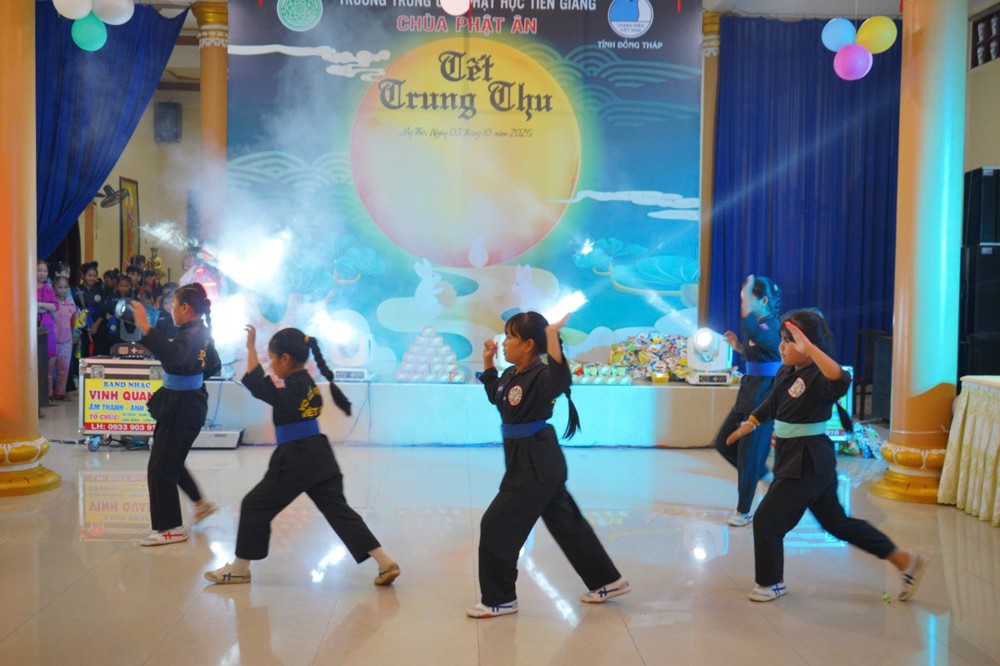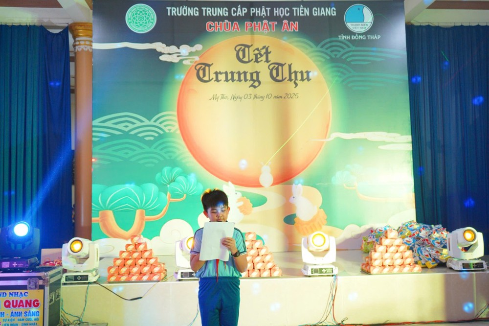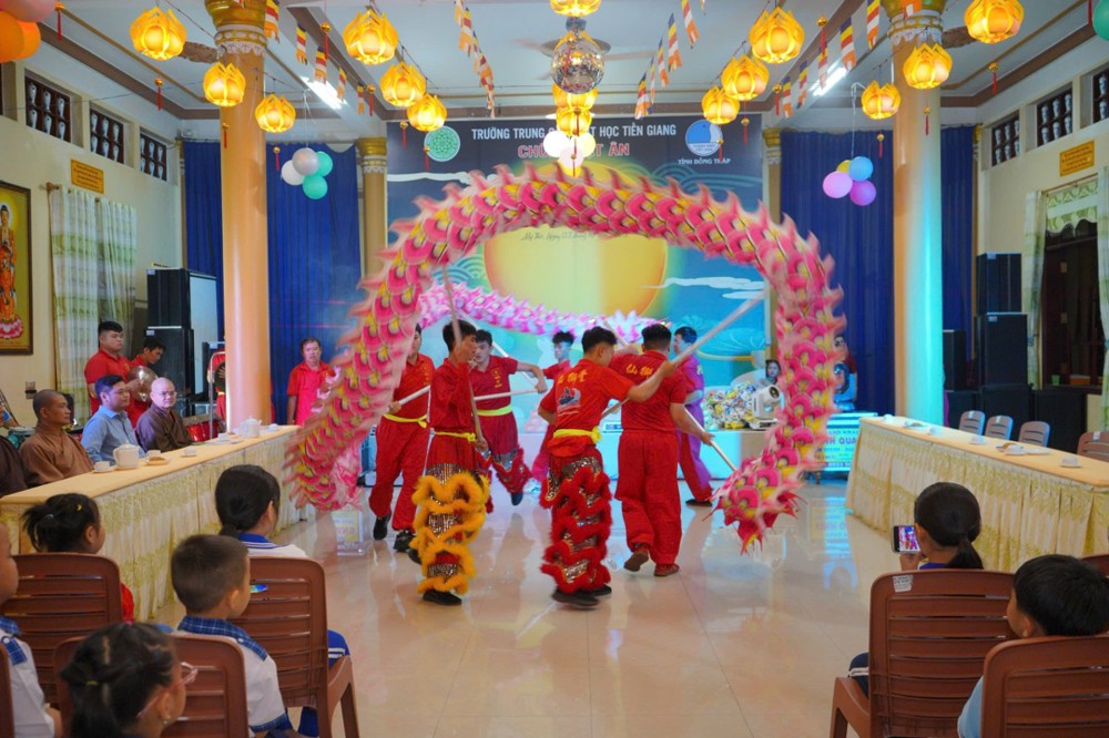 Trong không khí ấm áp của chương trình, Đại đức Thích Huệ Phát - Phó trưởng Ban kiêm Chánh Thư ký BTS Phật giáo tỉnh, Hiệu trưởng Trường TCPH Tiền Giang có đôi lời phát biểu gửi đến các em thiếu nhi. Với tấm lòng hướng về thế hệ măng non, Ban Tổ chức vui mừng được trao tặng 200 phần quà Trung thu đến tay các em nhỏ, như một món quà động viên, khích lệ các em trong dịp Tết thiếu nhi đặc biệt này. Để không khí Trung thu thêm phần rộn ràng, chúng ta sẽ cùng nhau thưởng thức chương trình văn nghệ đặc sắc, với những màn múa Lân sôi động và những tiết mục Múa Võ đặc sắc, mạnh mẽ. Đây chính là món quà tinh thần ý nghĩa, gìn giữ và phát huy những nét văn hóa truyền thống tốt đẹp của dân tộc.