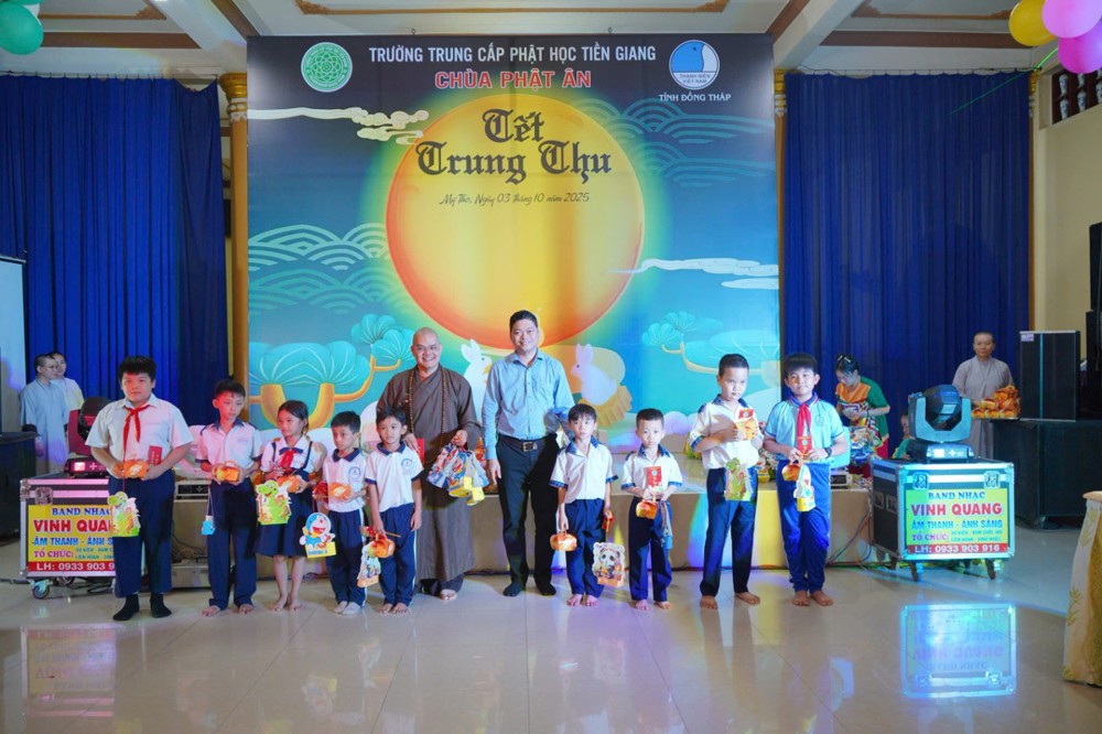 Trên tinh thần đó chiều ngày 3/10/2025 (nhằm ngày 12/8 năm Ất Tỵ) Trường Trung cấp Phật học Tiền Giang - chùa Phật Ân (số 5 Ngô Quyền, phường Mỹ Tho, tỉnh Đồng Tháp) đã tổ chức “Tết Trung Thu” cho các em thiếu nhi trên địa bàn phường Mỹ Tho có một mùa Trung thu vui tươi và ấm áp.