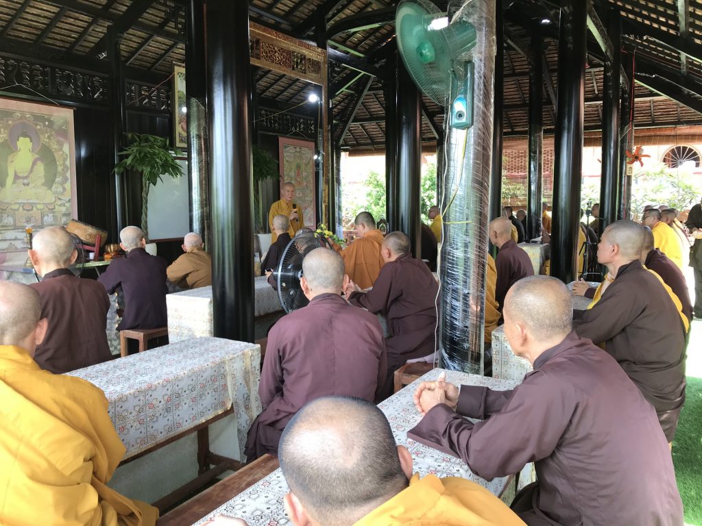 Người xuất gia phải có từ tâm, có từ bi và có kiến thức vì đây là con đường đầu tiên vào nhà Như Lai. Kinh Pháp Hoa chứng minh:“Vào nhà Như Lai, mặc áo Như Lai; vào tòa Như Lai” là con đường chính đi vào Đạo. Tất cả các pháp đều là Phật pháp, mọi thứ trong cuộc đời chính là phương tiện để đi vào đạo, chúng ta không chấp và làm gì có lợi cho Giáo hội chúng ta phải làm, làm gì chúng ta cũng phải có tình tương và trí tuệ, vì có tình thương thì mới dấn thân vào làm đạo. Thượng tọa cũng nhấn mạnh: “Đặc biệt là đối với giới trẻ, dùng tâm từ bi để giáo dục các em Thanh thiếu niên biết đến Phật pháp, dùng phương tiện, kiến thức để duy trì thu hút được giới trẻ đến chùa để học Phật và phát triển đạo pháp”. Thượng toạ rất mong chư Hành giả cùng suy ngẫm về các vấn đề nêu trên, cùng hướng về đạo pháp để phát triển chánh pháp mãi trường tồn.