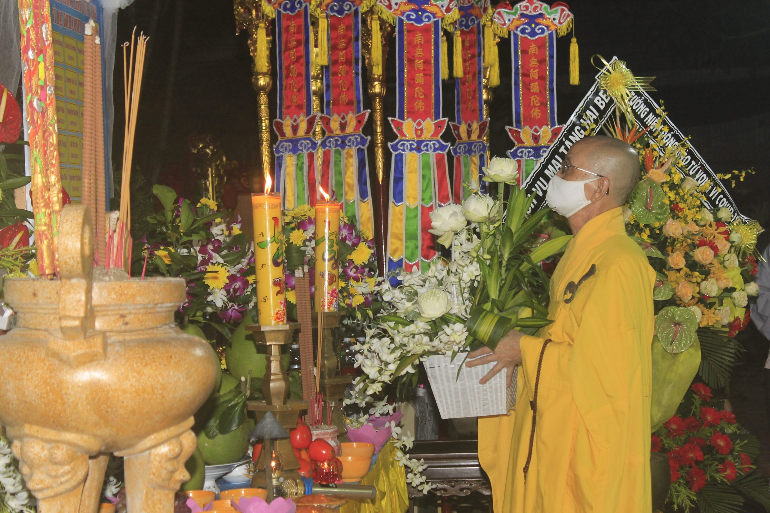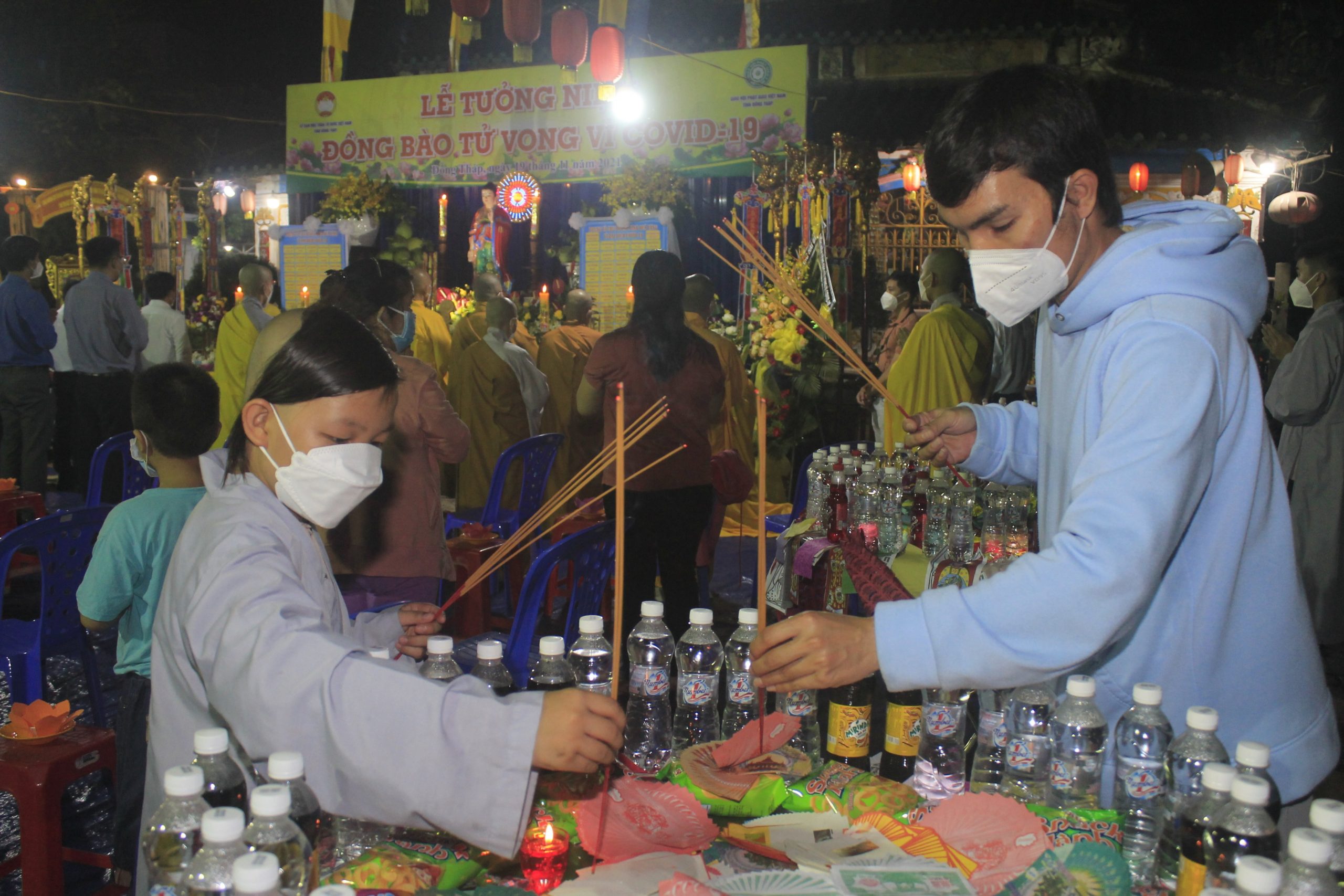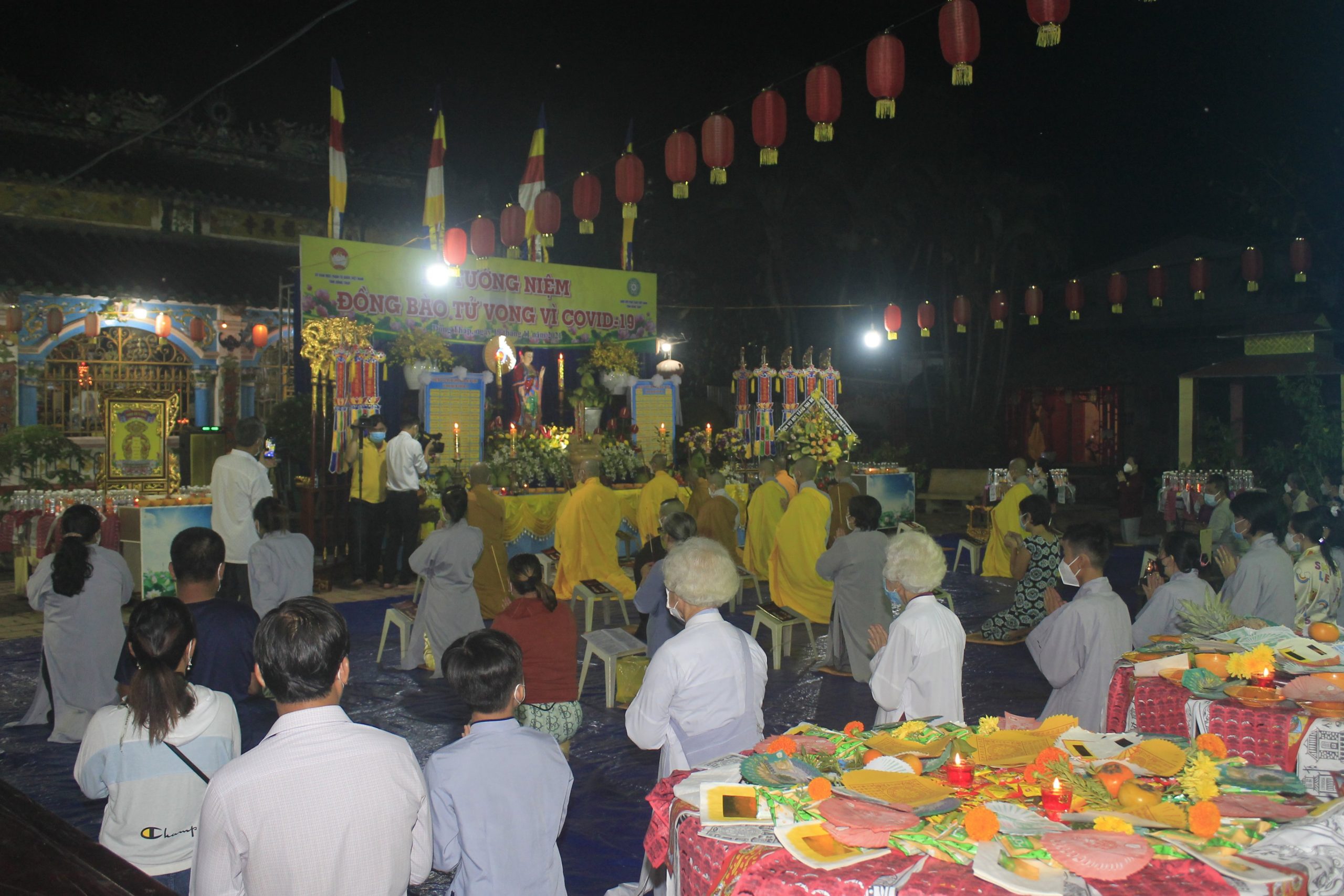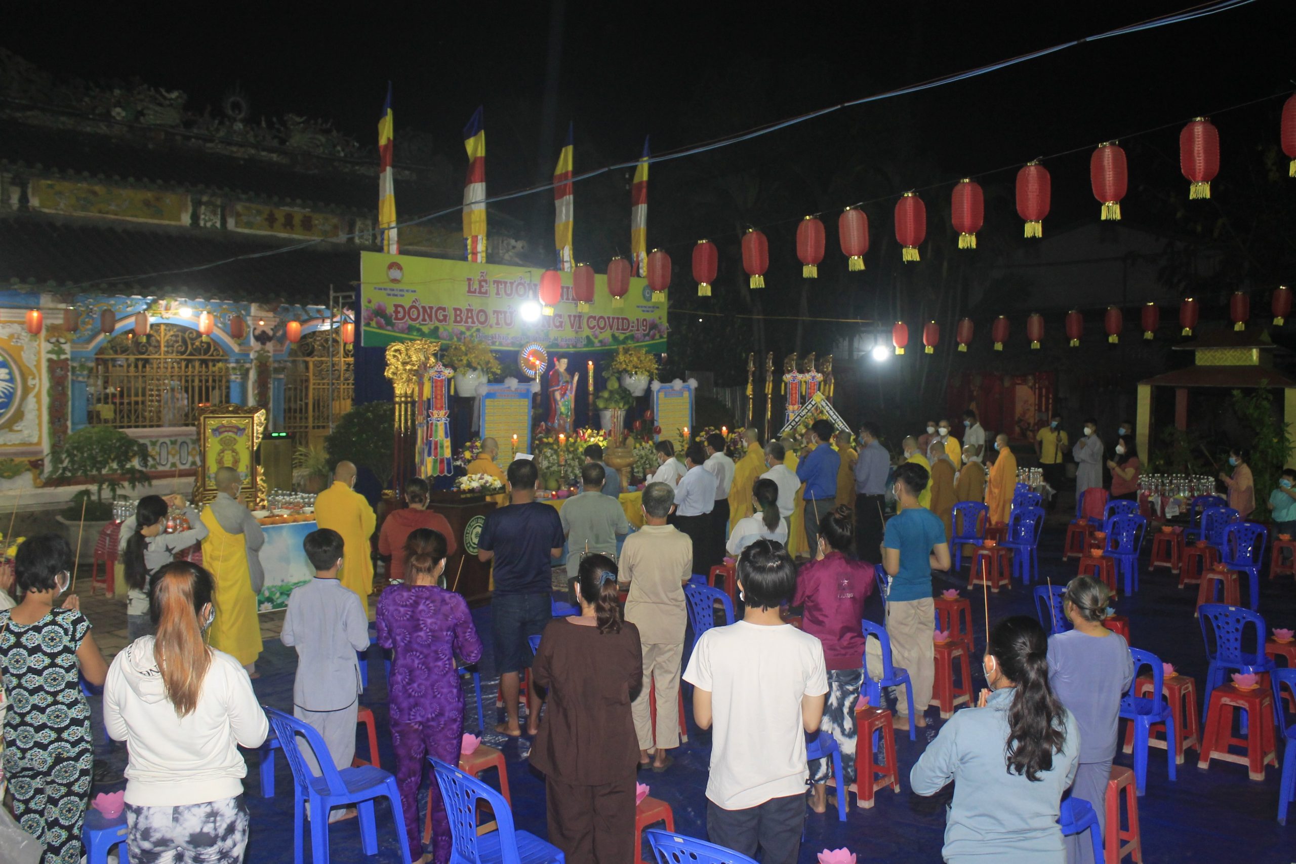 Thực hiện thông bạch của Hòa thượng Thích Thiện Nhơn - Chủ Tịch HĐTS GHPGVN. Đúng 20h00’, chính thức buổi tưởng niệm và cầu siêu cho nạn nhân tử vong vì dịch bệnh Covid-19. Theo đó, chư Tôn Giáo phẩm cùng đại diện lãnh đạo chánh quyền đối trước áng thờ thực hiện nghi lễ niêm hương, cầu siêu tưởng niệm trước bàn thờ Phật A Di Đà. Tất cả chư Tăng, Phật tử đã thắp 112 ngọn nến đèn sen và dành một phút mặc niệm tưởng nhớ những nạn nhân đã qua đời vì đại dịch.