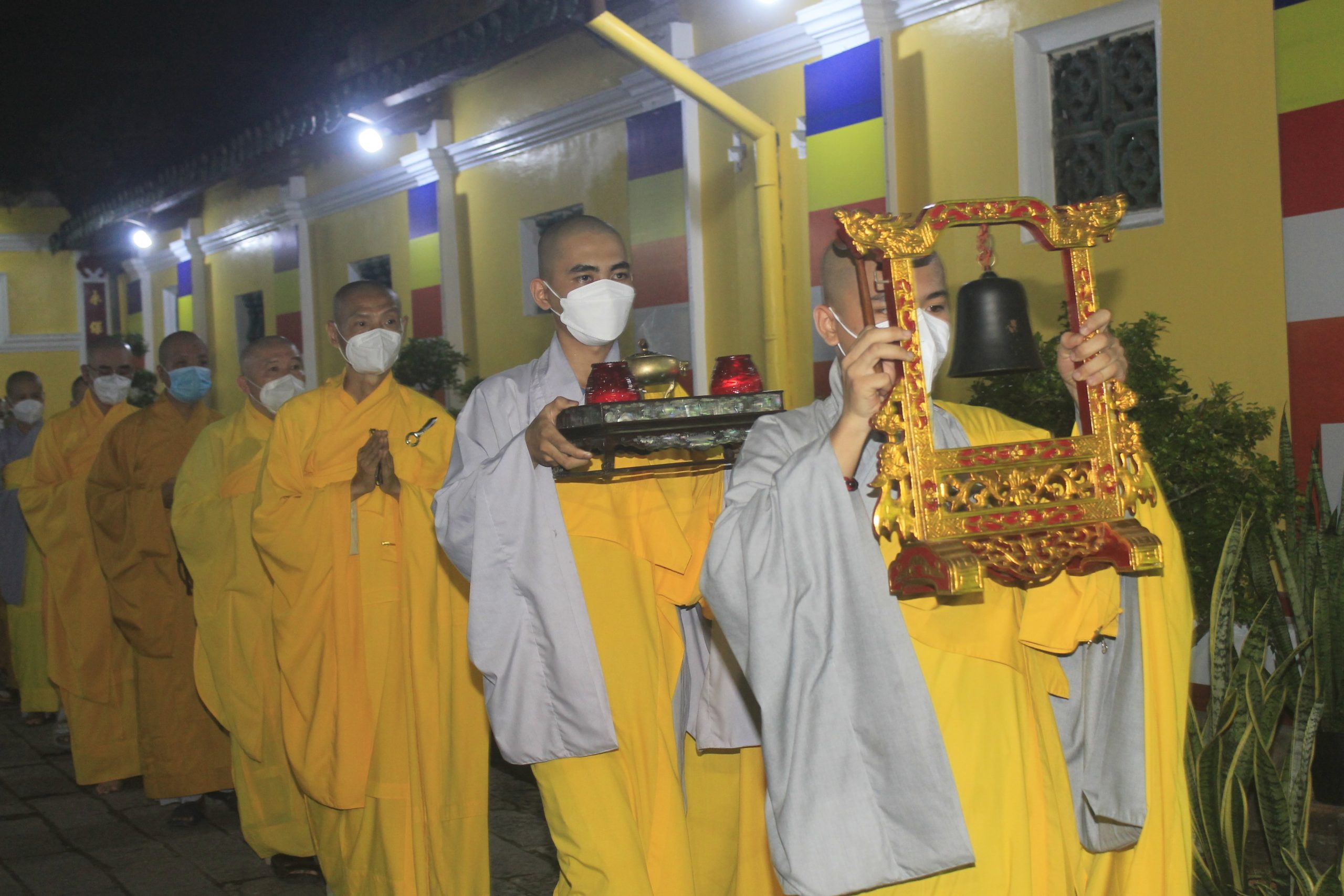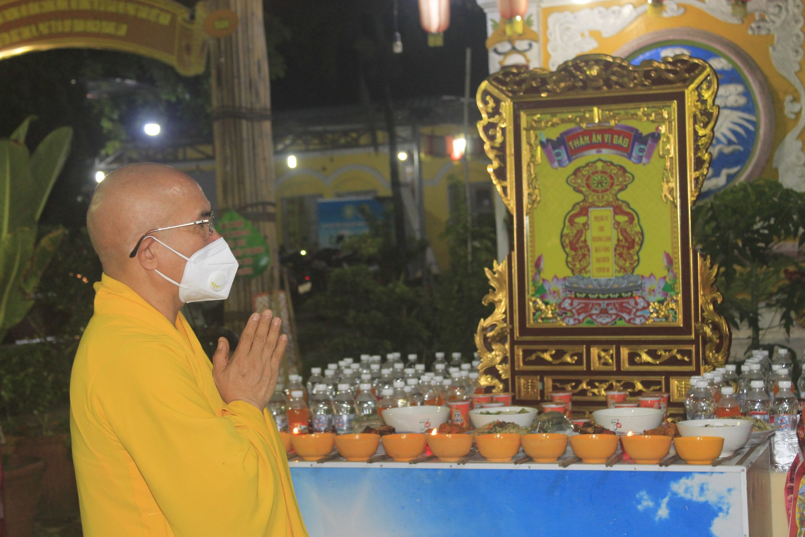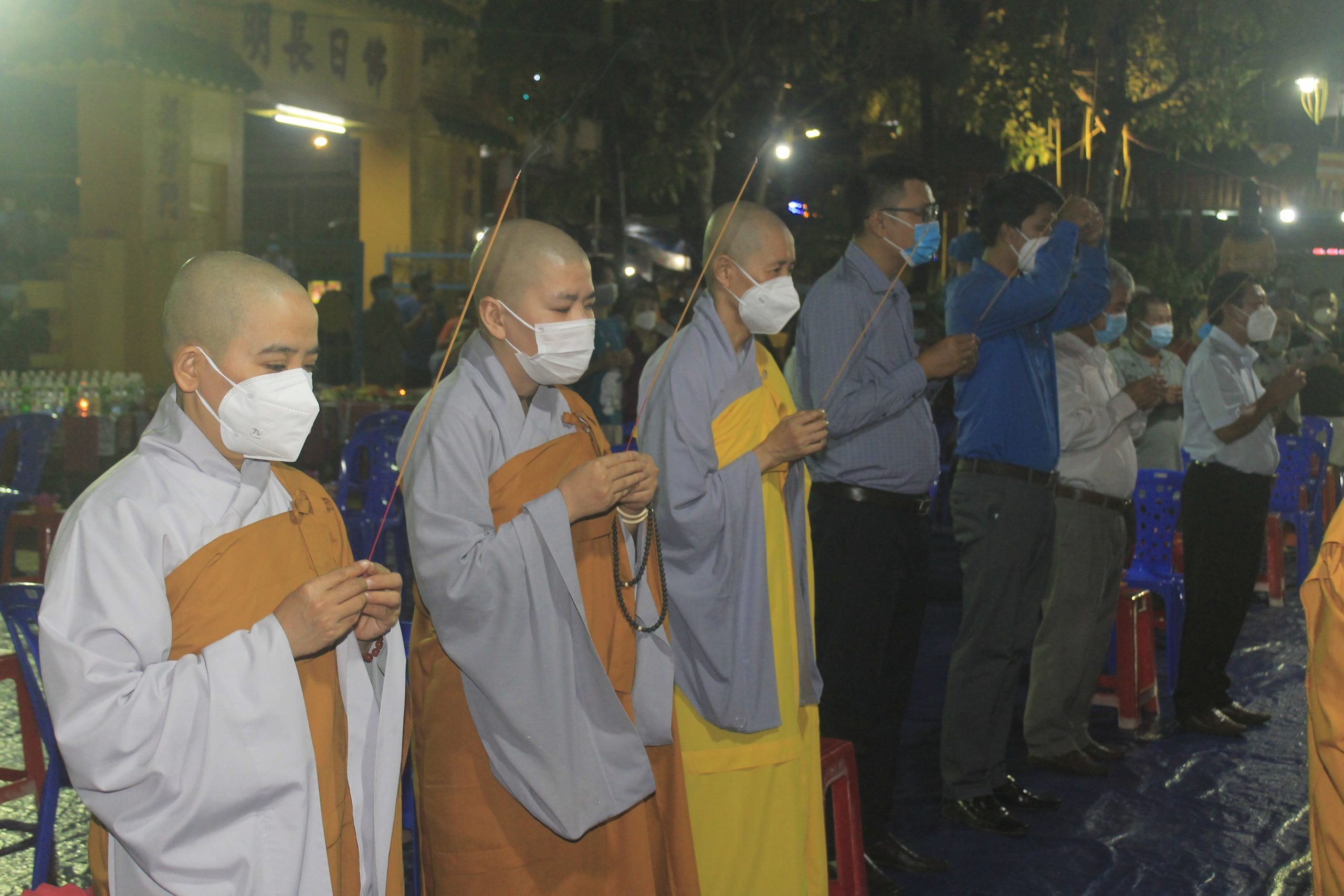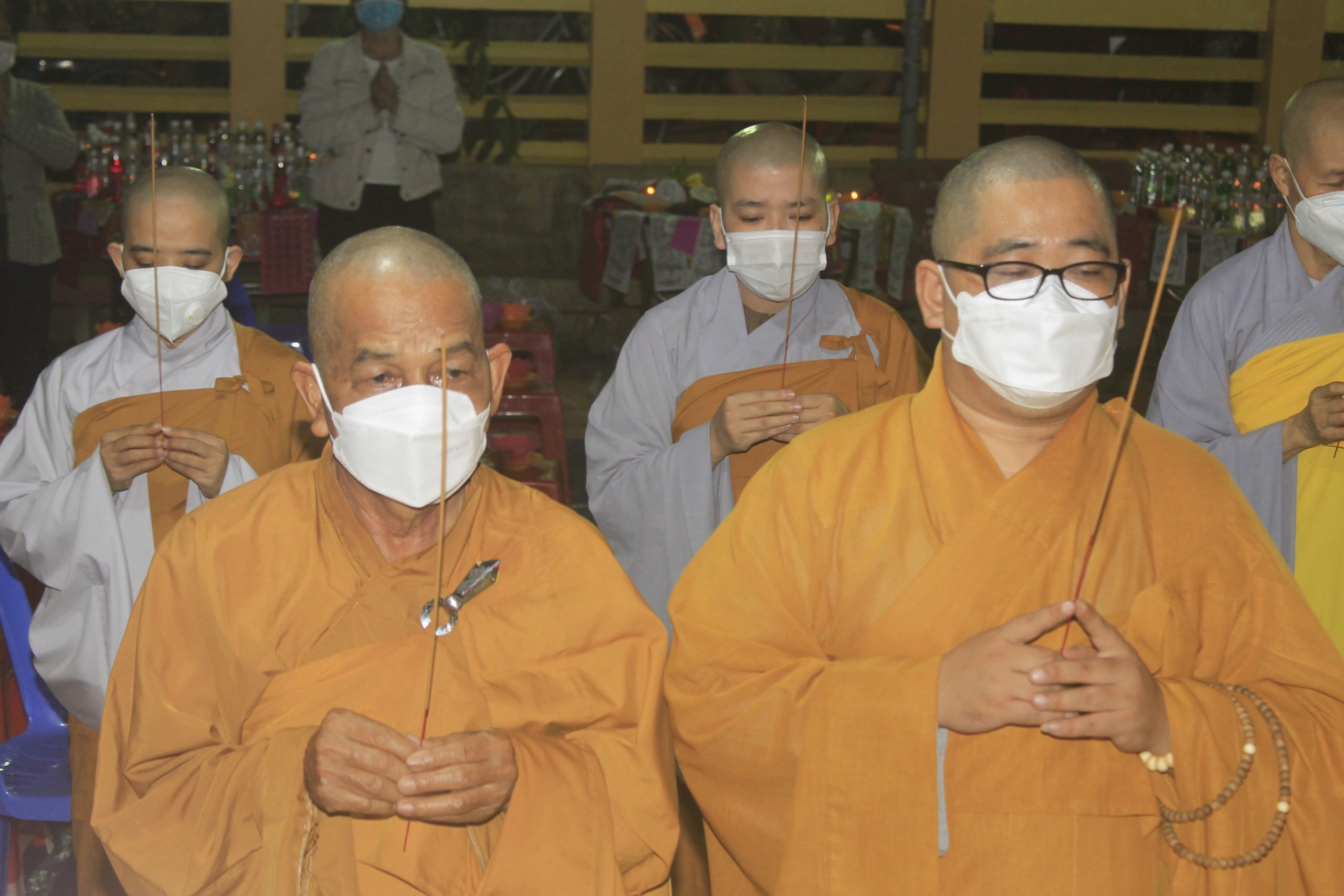 Thực hiện thông bạch của Hòa thượng Thích Thiện Nhơn - Chủ Tịch HĐTS GHPGVN. Đúng 20h00’, chính thức buổi tưởng niệm và cầu siêu cho nạn nhân tử vong vì dịch bệnh Covid-19. Theo đó, chư Tôn Giáo phẩm cùng đại diện lãnh đạo chánh quyền đối trước áng thờ thực hiện nghi lễ niêm hương, cầu siêu tưởng niệm trước bàn thờ Phật A Di Đà. Tất cả chư Tăng, Phật tử đã thắp 112 ngọn nến đèn sen và dành một phút mặc niệm tưởng nhớ những nạn nhân đã qua đời vì đại dịch.