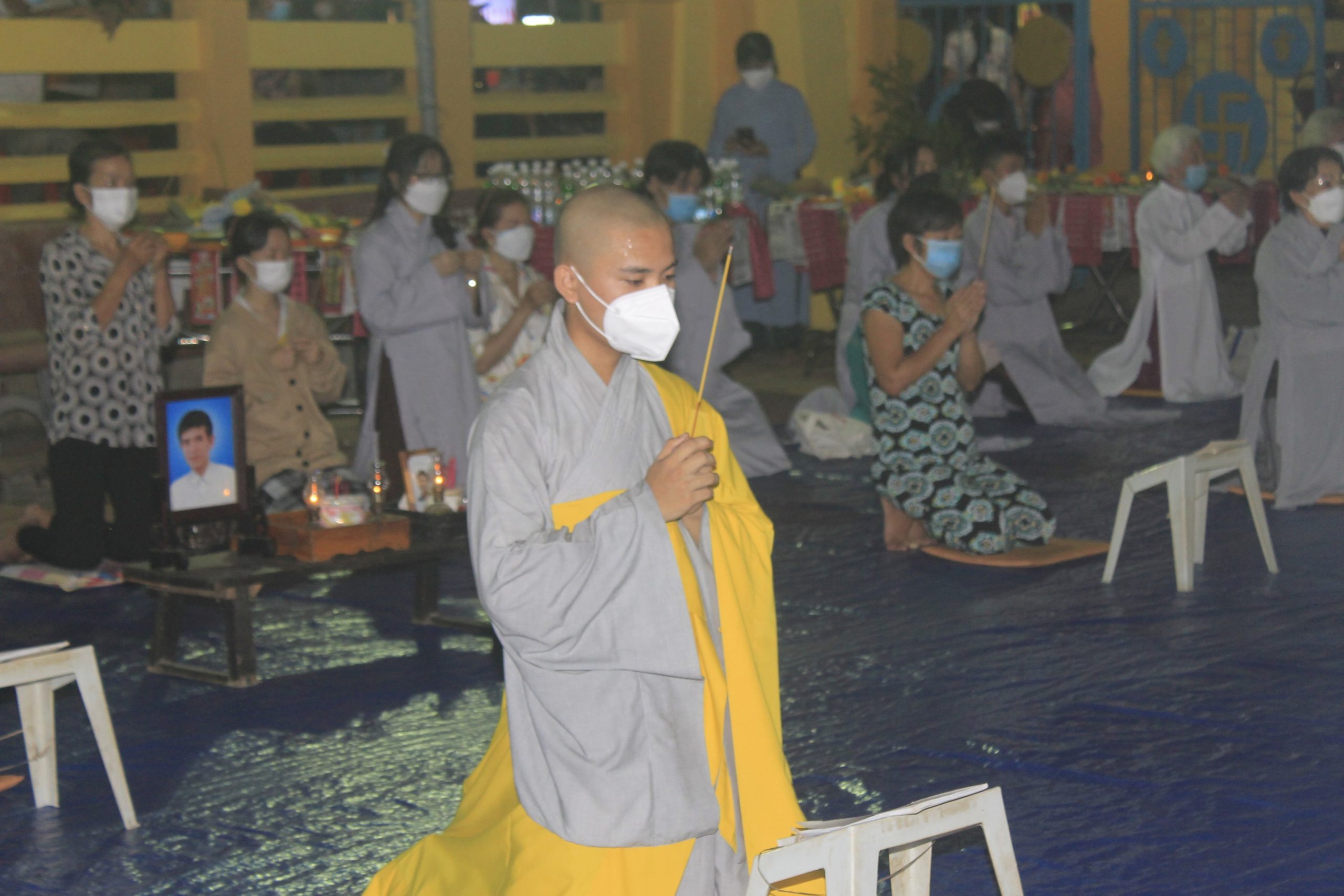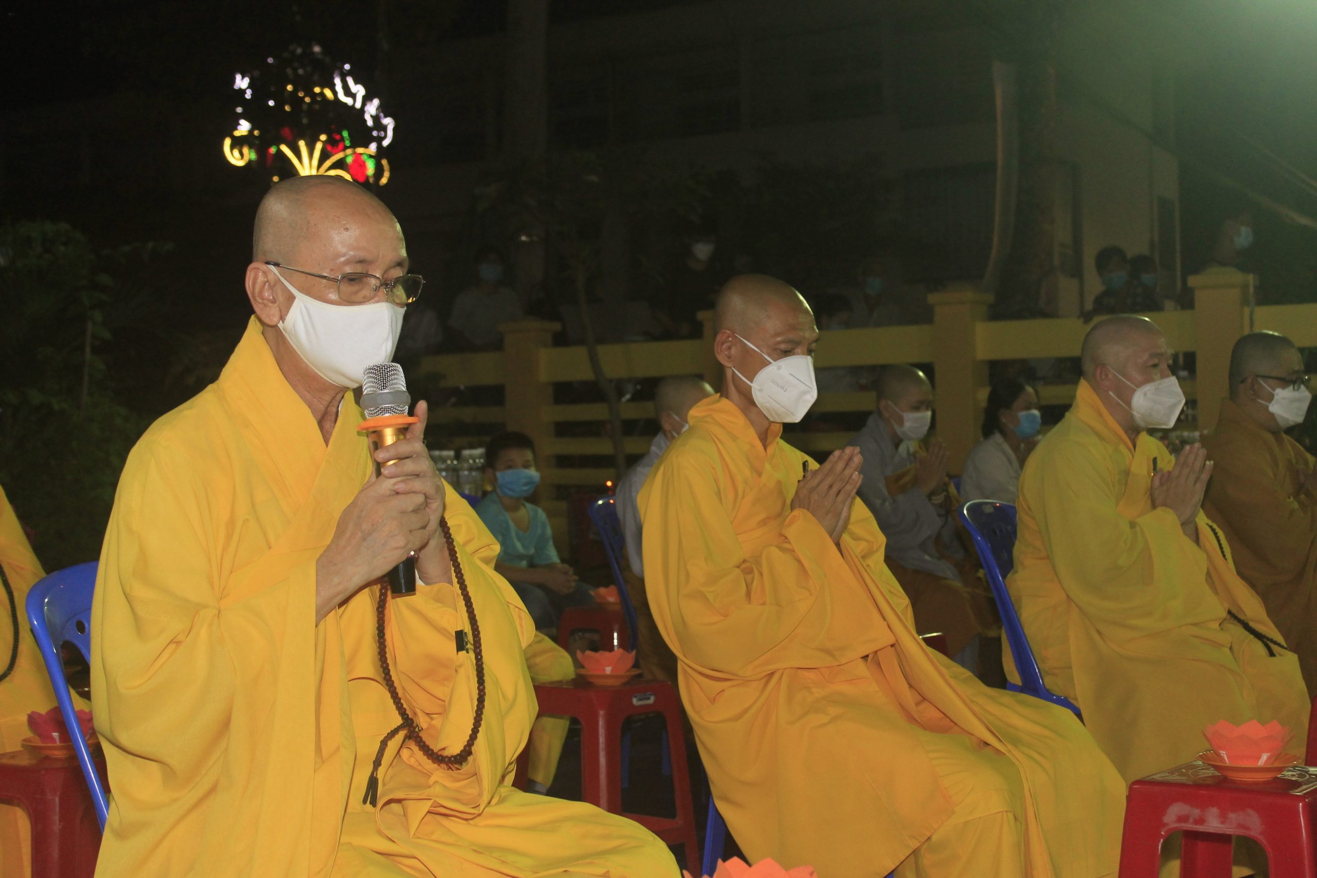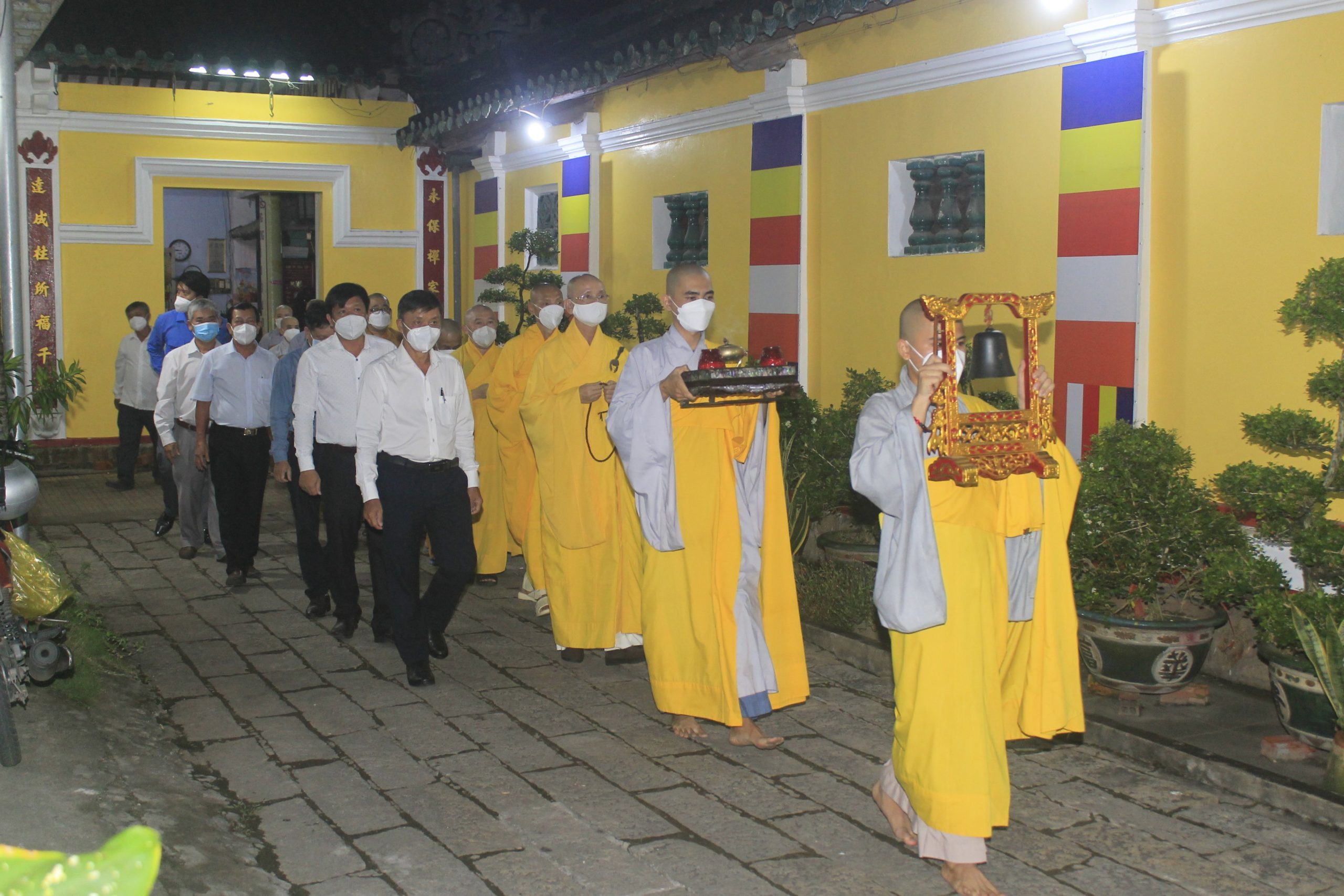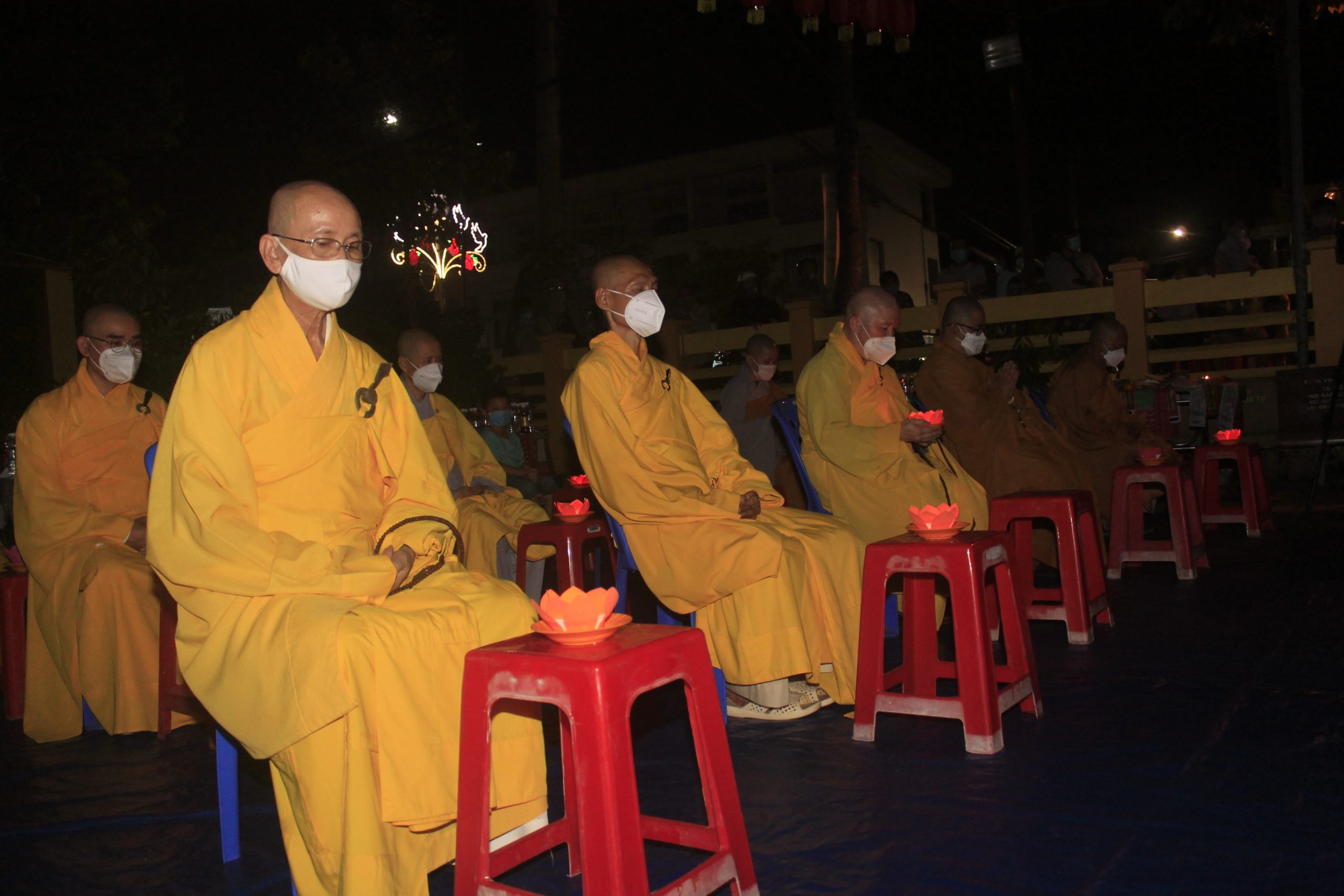 Thực hiện thông bạch của Hòa thượng Thích Thiện Nhơn - Chủ Tịch HĐTS GHPGVN. Đúng 20h00’, chính thức buổi tưởng niệm và cầu siêu cho nạn nhân tử vong vì dịch bệnh Covid-19. Theo đó, chư Tôn Giáo phẩm cùng đại diện lãnh đạo chánh quyền đối trước áng thờ thực hiện nghi lễ niêm hương, cầu siêu tưởng niệm trước bàn thờ Phật A Di Đà. Tất cả chư Tăng, Phật tử đã thắp 112 ngọn nến đèn sen và dành một phút mặc niệm tưởng nhớ những nạn nhân đã qua đời vì đại dịch.