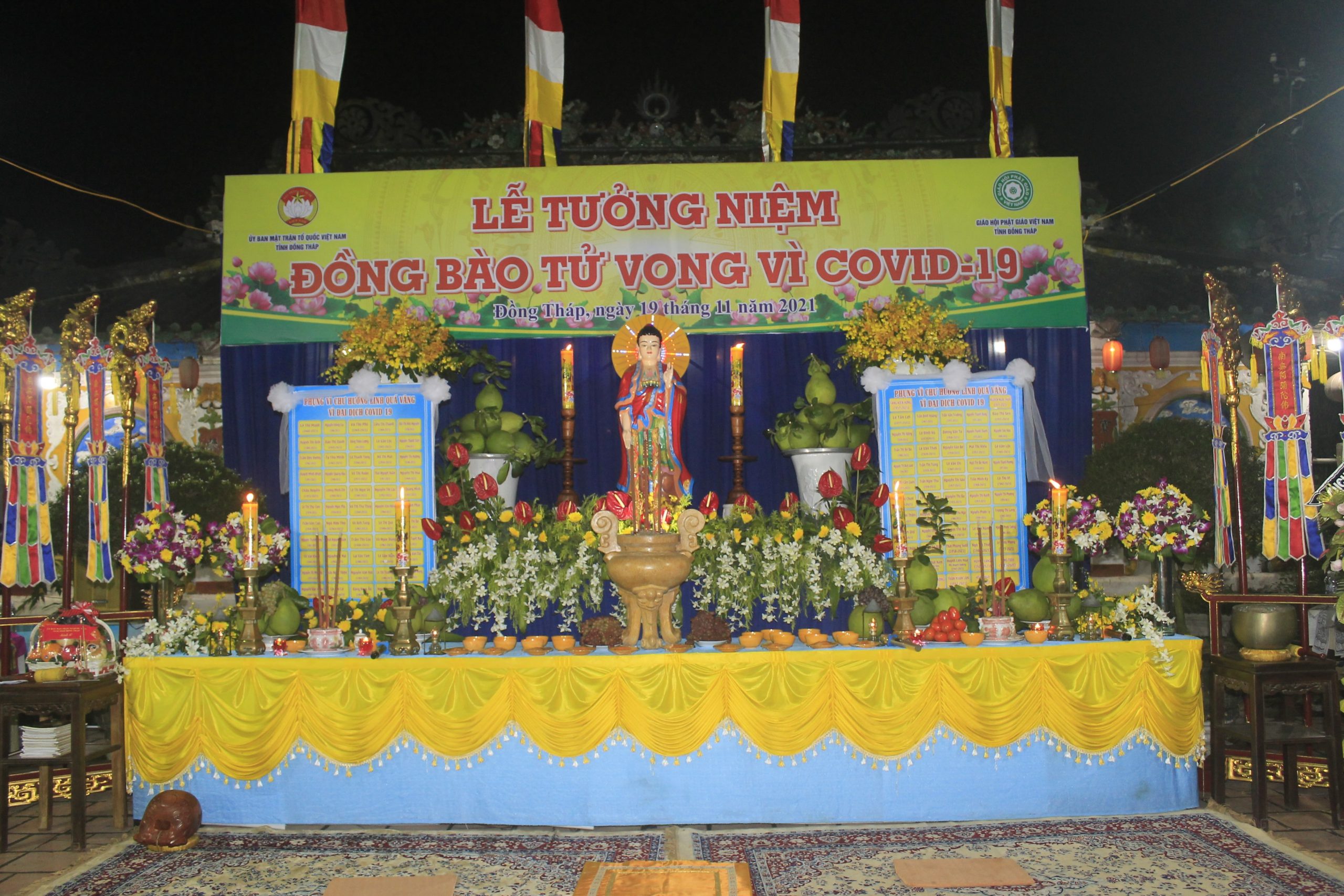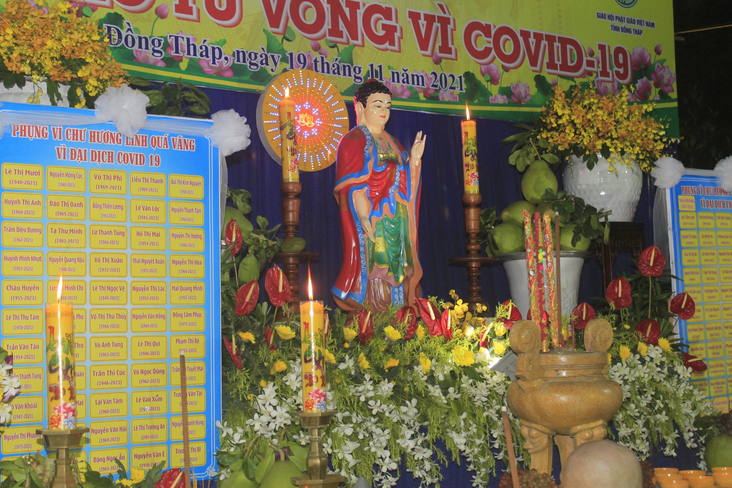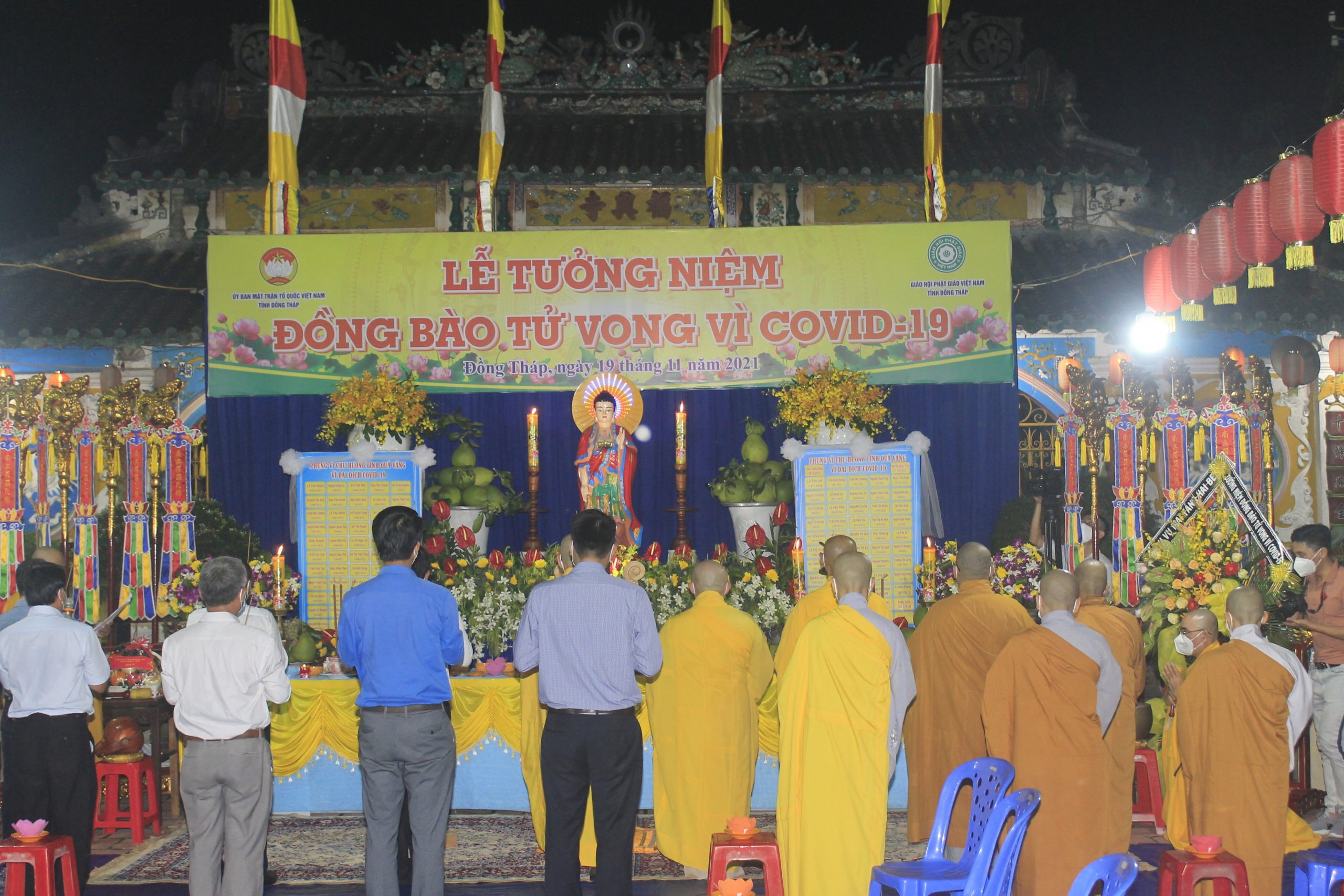 PSO - Đạo Phật luôn lấy Từ bi – Trí tuệ để hoằng pháp lợi sanh, đem tình thương đến người hiện tại và chú nguyện cho người qua đời sanh về nơi cõi an lành. Trên tinh thần đó, tối ngày 19/11/2021, Ban Trị sự GHPGVN tỉnh Đồng Tháp phối hợp Ủy ban MTTQVN tỉnh tổ chức lễ tưởng niệm và cầu siêu cho các nạn nhân tử vong trong đại dịch Covid-19, tại chùa Phước Hưng (phường 1, TP. Sa Đéc, tỉnh Đồng Tháp).