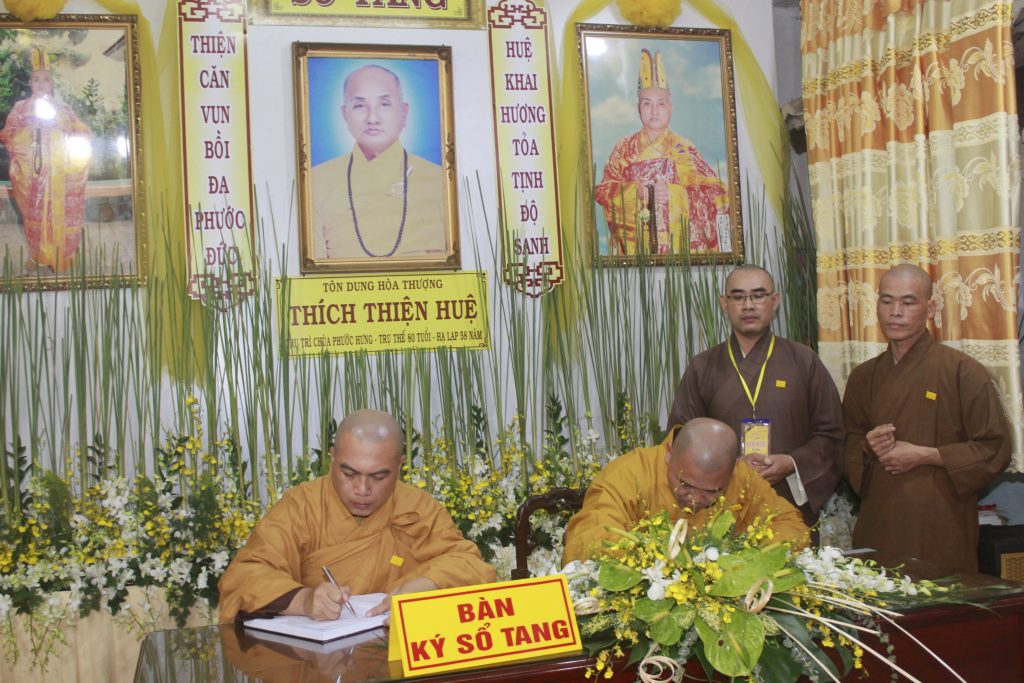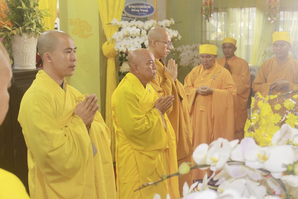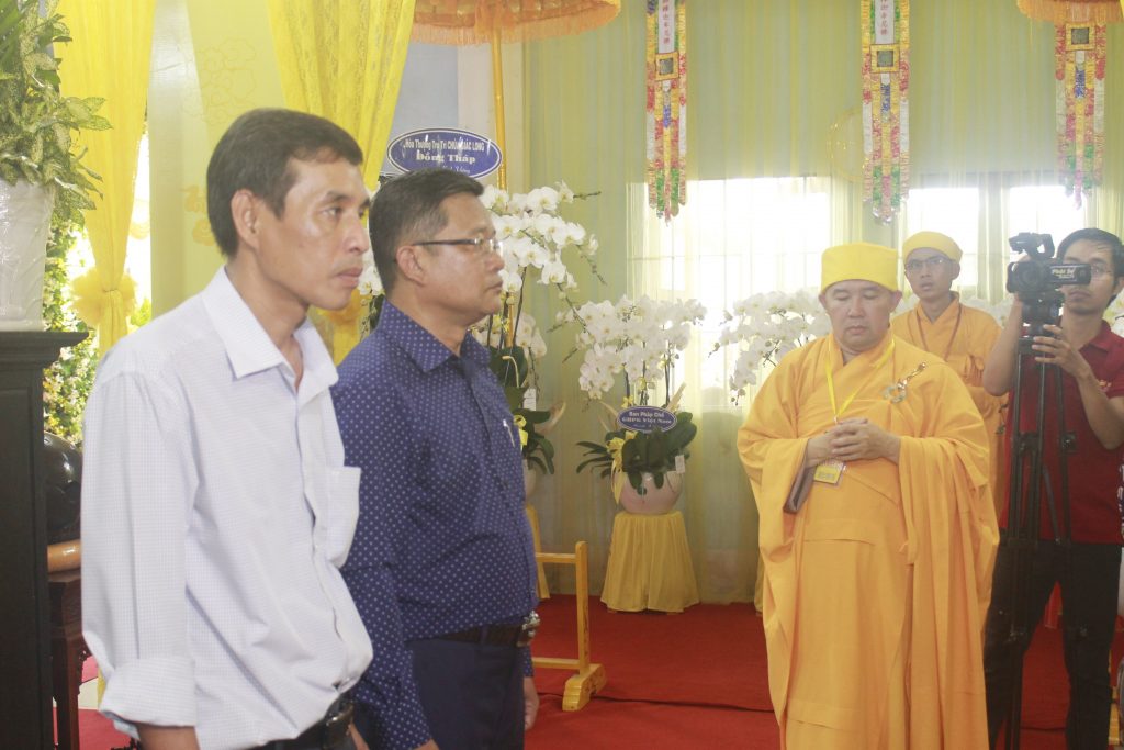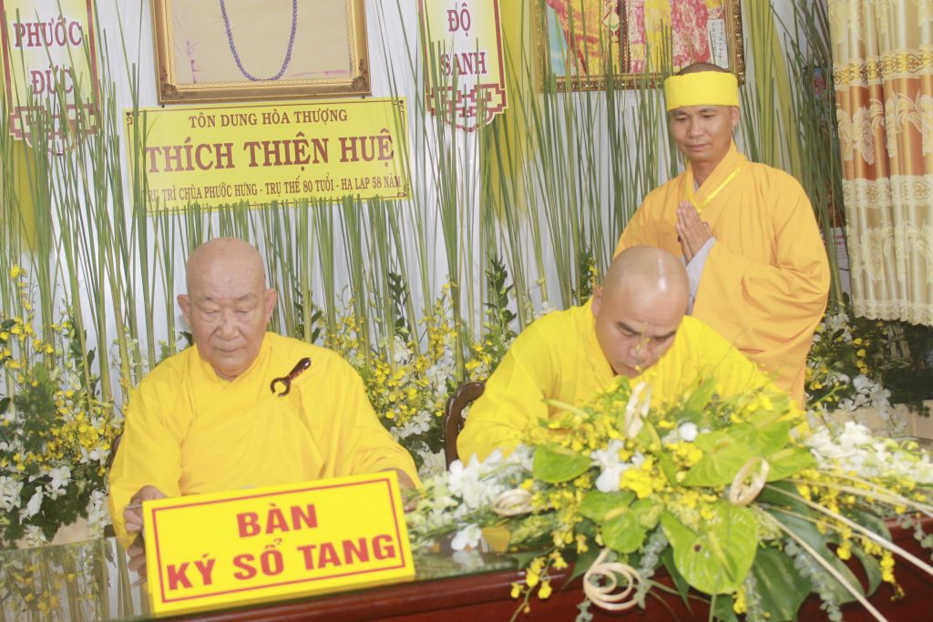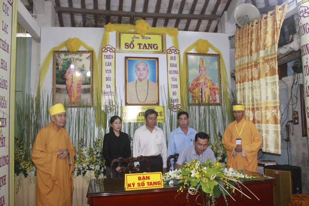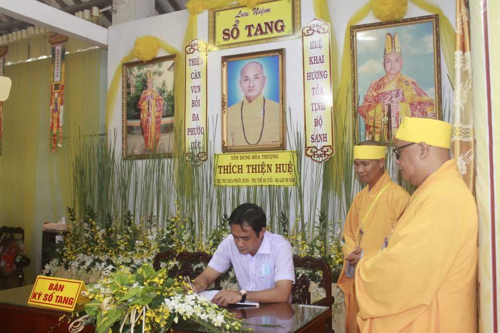 Trước đó, Ban Tổ chức Tang lễ và môn nhơn pháp quyến trang trọng cung đón phái đoàn chư Tôn đức Ban Chứng minh, Thường trực Ban trị sự GHPGVN tỉnh Đồng Tháp; Ban Trị sự Phật giáo tỉnh Kiên Giang, Long An; Ban trị sự PG huyện Ba Tri, tỉnh Bến Tre; BTS PG TP. Long Xuyên, tỉnh An Giang; Ban Trị sự PG huyện Hồng Ngự, thị xã Hồng Ngự, huyện Lai Vung, huyện Cao Lãnh, Ban Giám hiệu Trường TCPH tỉnh Đồng Tháp, chư Tăng Ni trụ trì các tự viện thuộc TP. HCM, TP. Huế quang lâm đạo tràng kính viếng Giác linh cố Trưởng lão HT. Thích Thiện Huệ.