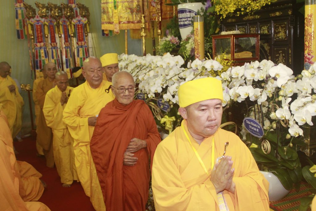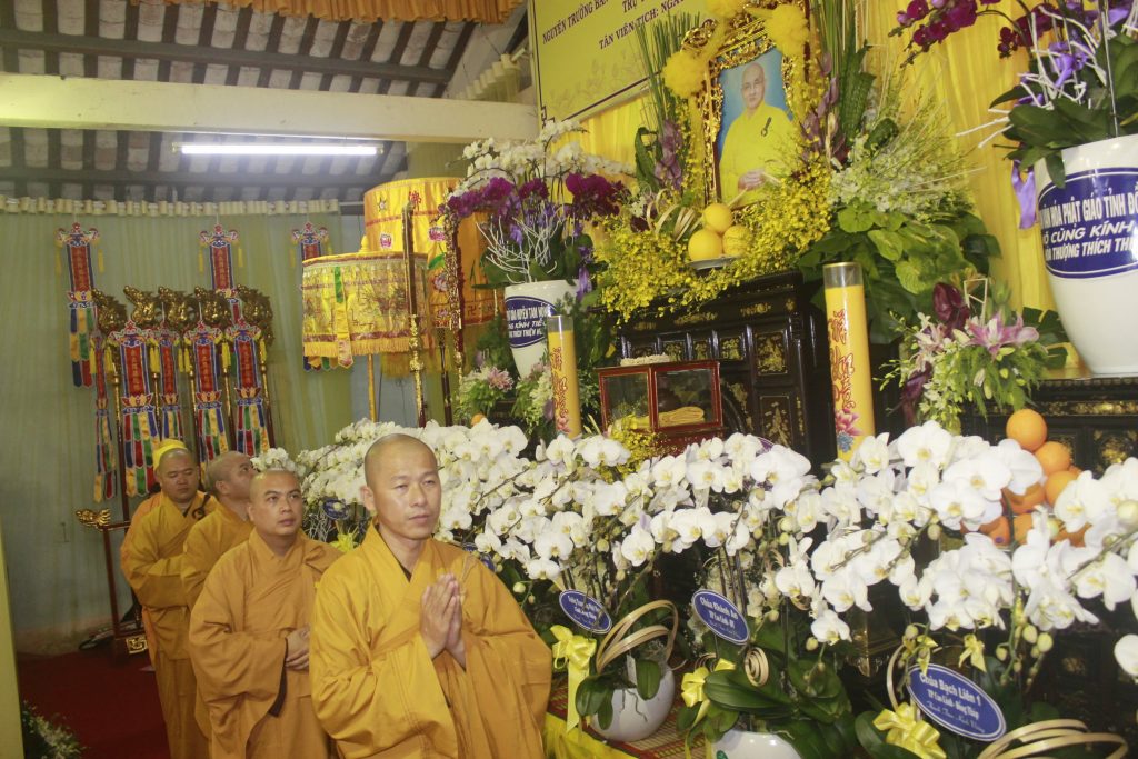 Theo chương trình Tang lễ, môn đồ pháp quyến đồng trang nghiêm đàn tràng, bạch thỉnh chư Tôn đức Ban Nghi lễ, Ban Kinh sư Phật giáo tỉnh quang lâm pháp tràng cử hành nghi thức niêm hương, bạch Phật, cung tiến Giác linh cố Đại lão Hòa thượng theo Nghi lễ truyền thống Phật giáo.