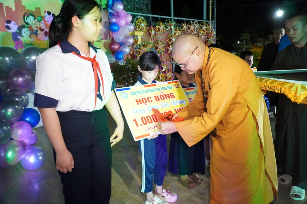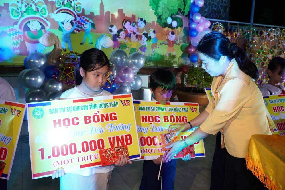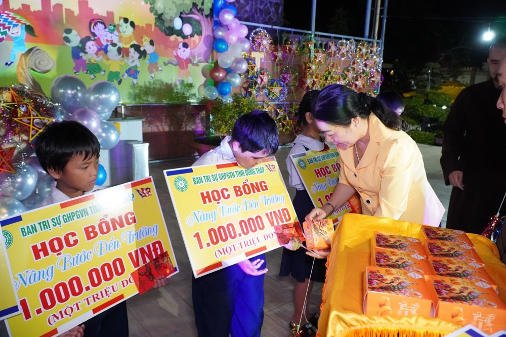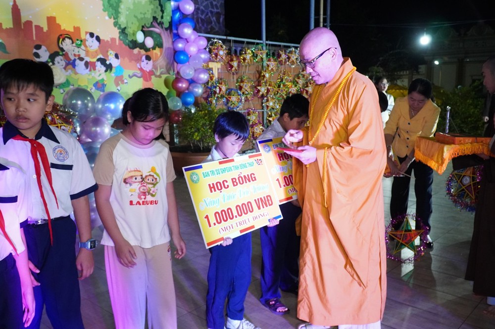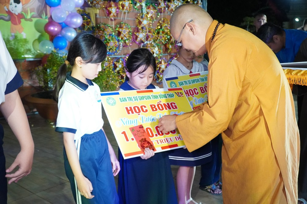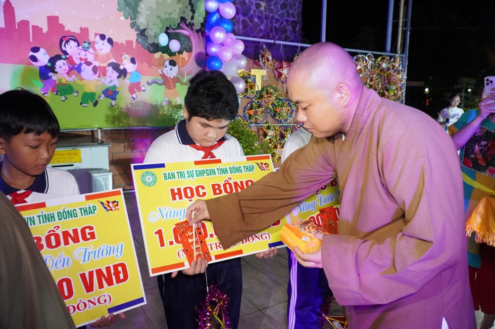 Chiều tối ngày 4/10/2025 (nhằm ngày 13/7/Ất Tỵ) Ban Trị sự Giáo hội Phật giáo Việt Nam tỉnh Đồng Tháp phối hợp cùng Ban Thư ký Ủy ban Hội Liên hiệp Thanh niên (LHTN) Việt Nam tỉnh và chư Tôn đức Đại diện Phật giáo khu vực VII, tố chức chương trình Trung thu, trao 60 phần học bổng và hơn 500 phần quà bánh đến các em Thiếu nhi, học sinh tại khu vực Mỹ Tho.