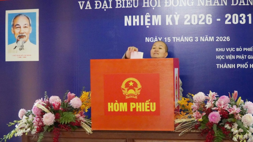 PSO - Hòa chung không khí ngày hội của non sông, sáng nay 15/3, gần 500 cử tri là chư Tôn đức HĐĐH, Văn phòng các Tăng Ni sinh của Học viện Phật giáo VN tại Hà Nội đã nô nức tham bỏ phiếu bầu cử đại biểu Quốc hội khóa XVI và đại biểu HĐND các cấp, nhiệm kỳ 2026-2031.