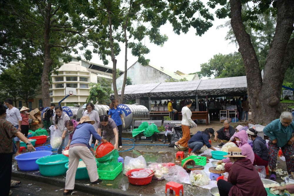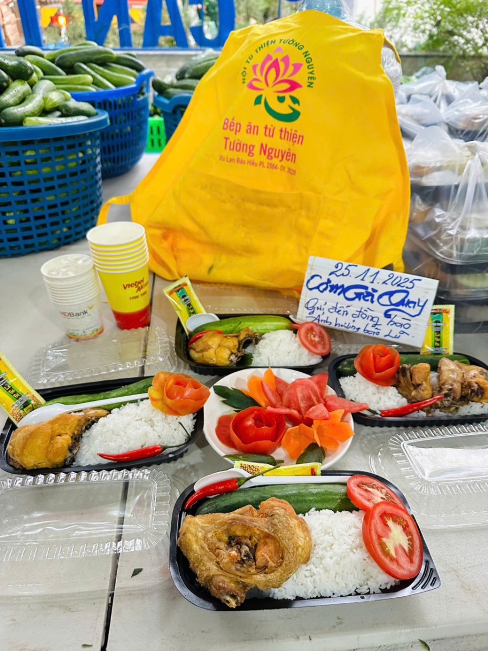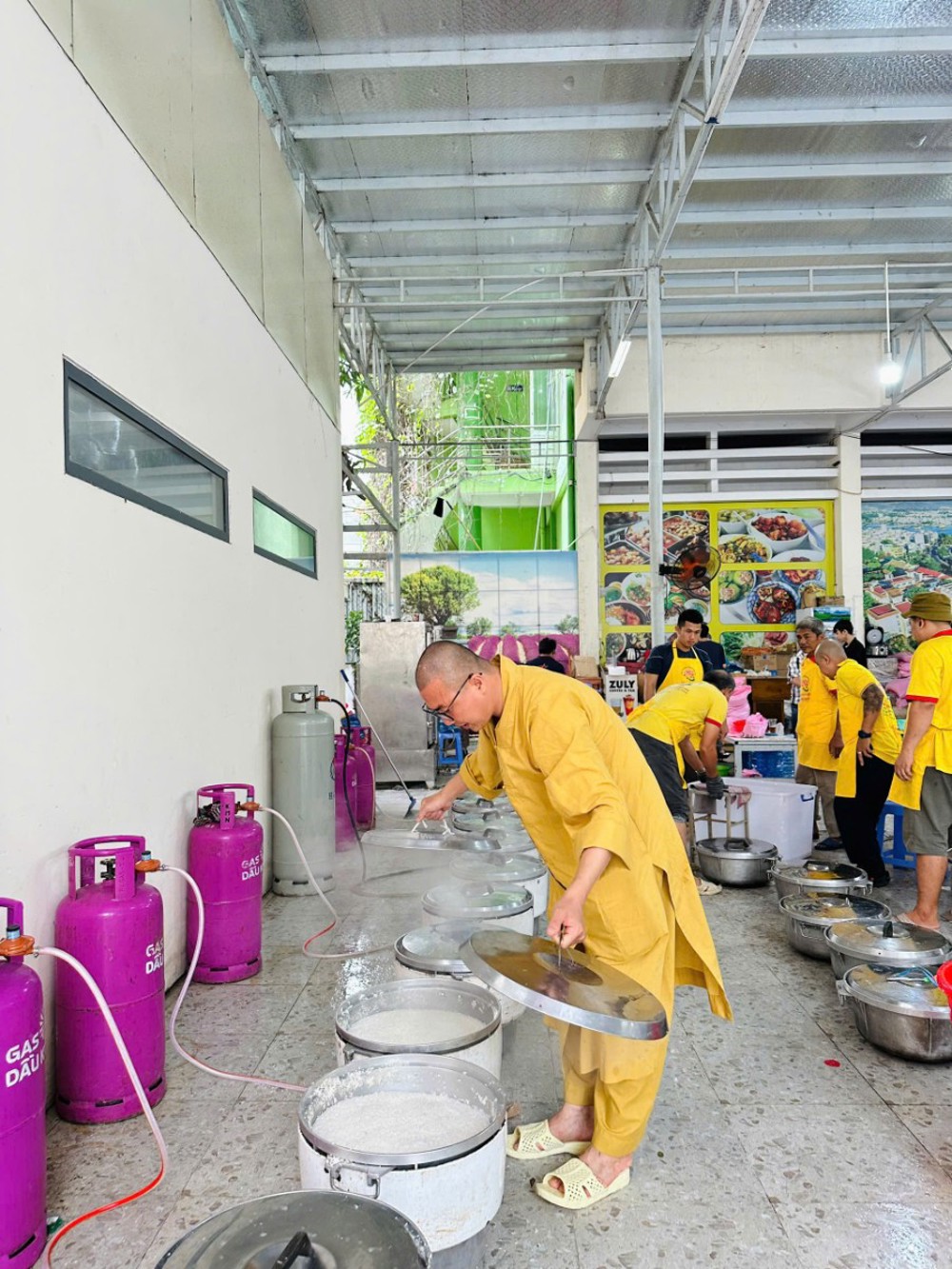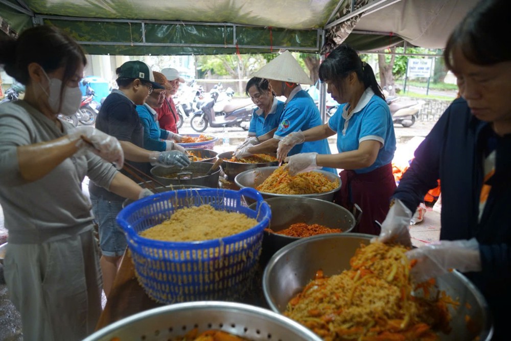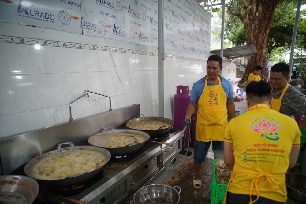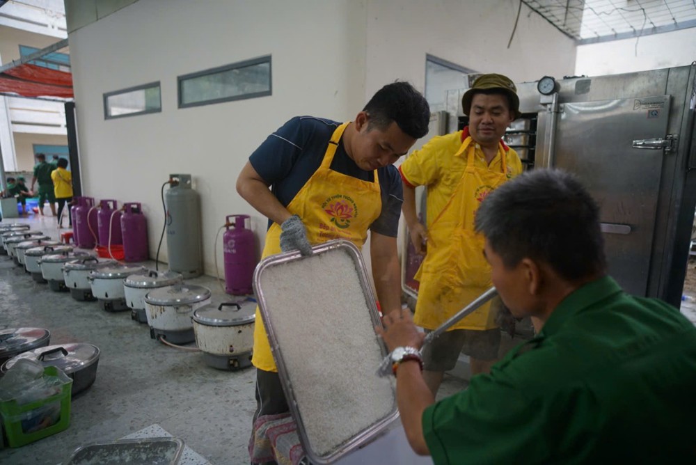 Trước tình hình cấp bách đó, hưởng ứng lời kêu gọi của Ủy ban MTTQVN và GHPGVN, Ban Từ thiện xã hội GHPGVN TP.HCM do TT. Thích Thanh Phong – Phó Chủ tịch HĐTS, Trưởng ban Từ thiện xã hội, đã vận động phối hợp cùng Tổ đình Vĩnh Nghiêm, Hội Từ thiện chùa Tường Nguyên do TT. Thích Minh Phú – người có nhiều kinh nghiệm vận hành bếp ăn dã chiến trong đại dịch Covid-19 và các sự kiện lớn như Đại lễ Vesak 2025, Tăng Ni Trường TCPH Khánh Hòa, Phật tử TP.HCM, Nhóm từ thiện Chia sẻ Sharing của bà Mai Thị Hạnh (Phu nhân nguyên Chủ tịch nước Trương Tấn Sang), cùng các tình nguyện viên, thanh niên xung phong, chiến sĩ Quân khu V đã chung tay thiết lập hệ thống bếp ăn dã chiến, đến nay đã cung cấp 75.200 phần cơm, riêng ngày 25/11/2025 đạt 34.000 phần, gồm: Đại học Nha Trang - 21.000 phần (do TT. Thích Minh Phú điều hành); chùa Phước Điền - 5.000 phần (do Ni trưởng Thích Nữ Huệ Tuyến điều hành); Tân Hòa – Phú Yên - 4.000 phần (do TT. Thích Minh Thật điều hành); 33 Kim Đồng – Phú Yên - 3.800 phần (do Phật tử Nguyên Hạnh điều hành).