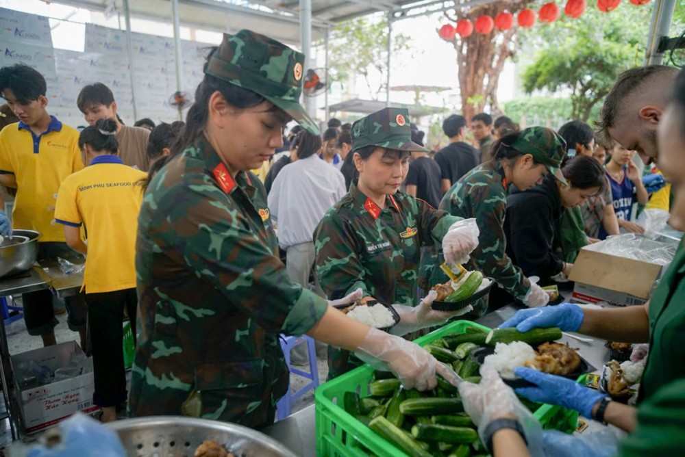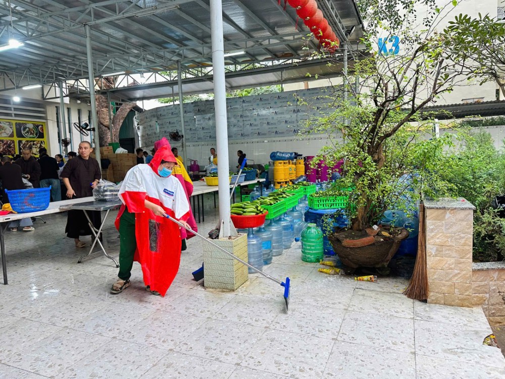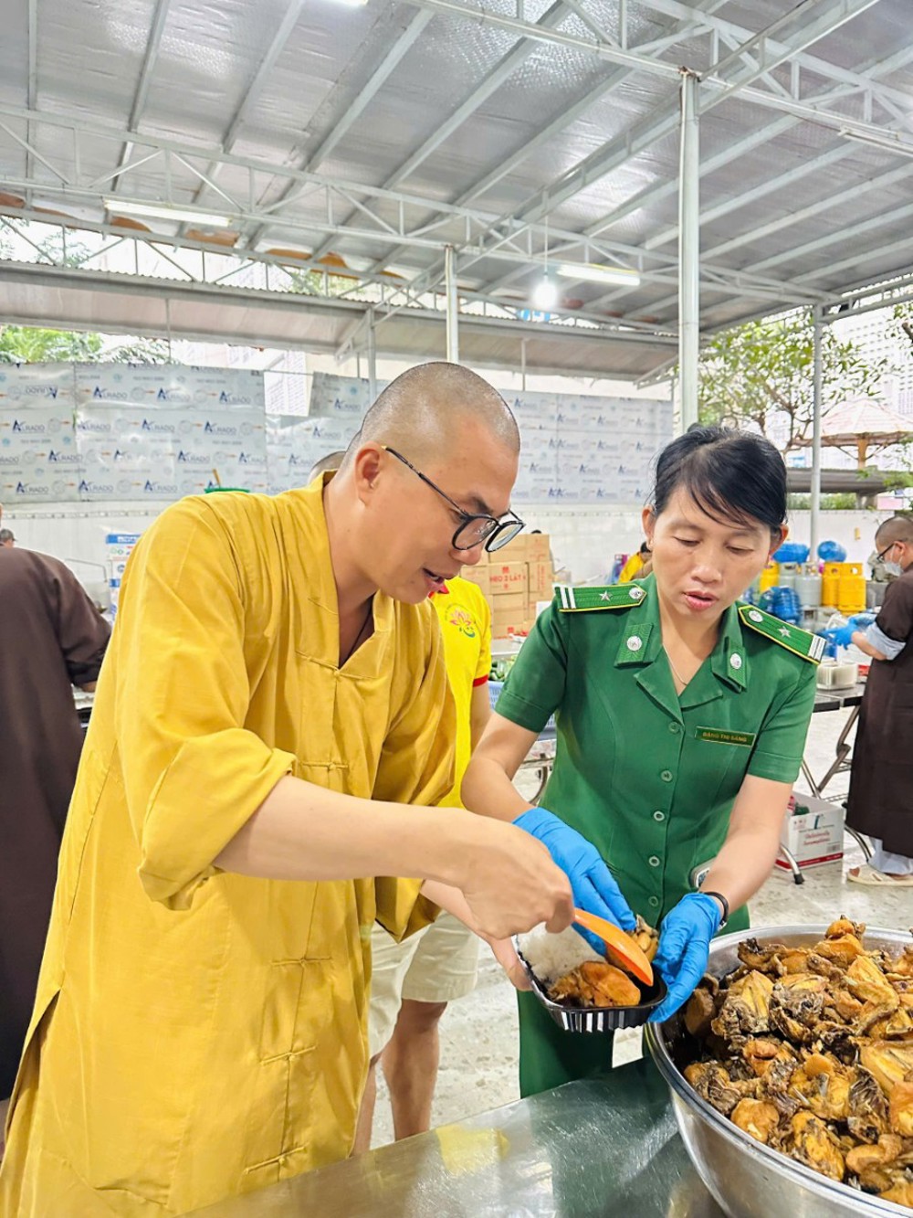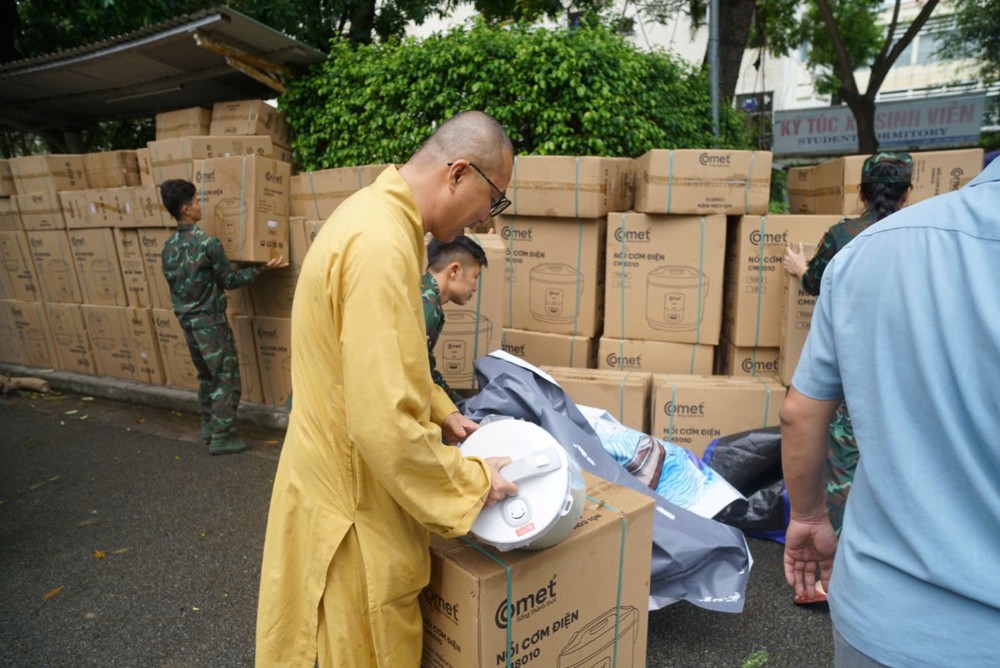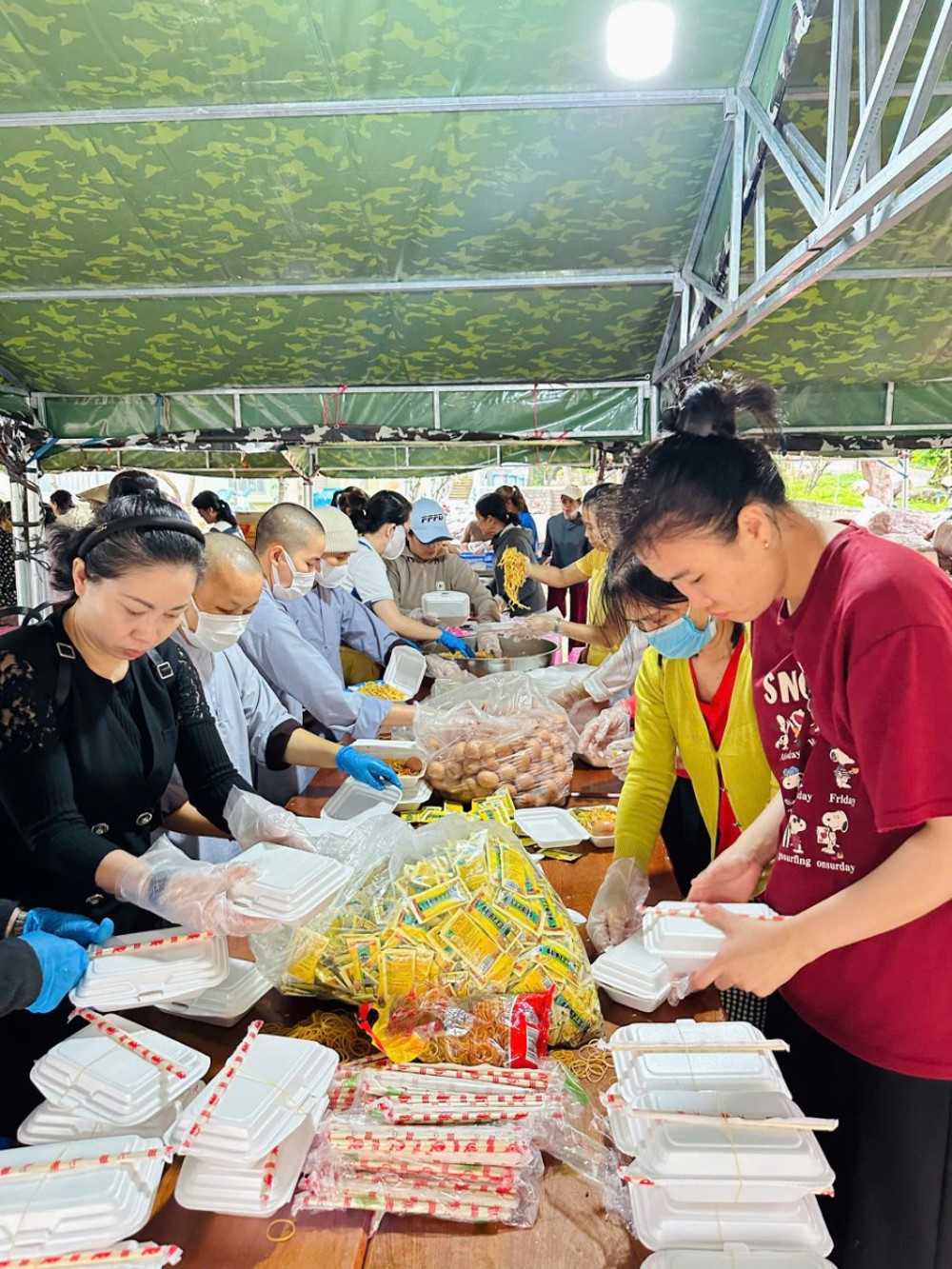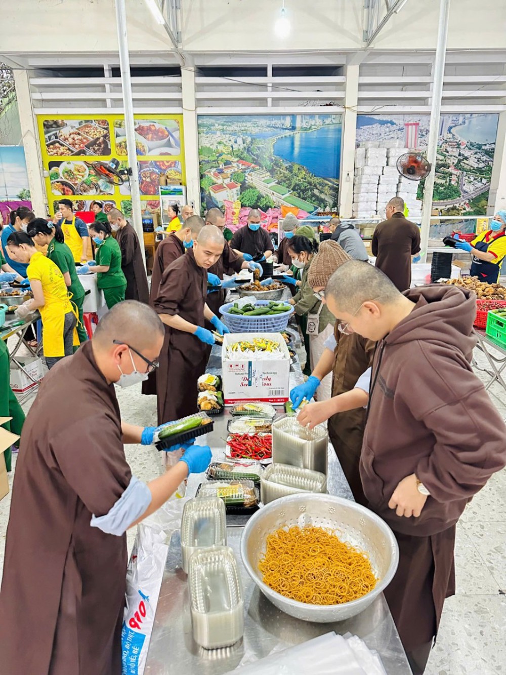 Trước tình hình cấp bách đó, hưởng ứng lời kêu gọi của Ủy ban MTTQVN và GHPGVN, Ban Từ thiện xã hội GHPGVN TP.HCM do TT. Thích Thanh Phong – Phó Chủ tịch HĐTS, Trưởng ban Từ thiện xã hội, đã vận động phối hợp cùng Tổ đình Vĩnh Nghiêm, Hội Từ thiện chùa Tường Nguyên do TT. Thích Minh Phú – người có nhiều kinh nghiệm vận hành bếp ăn dã chiến trong đại dịch Covid-19 và các sự kiện lớn như Đại lễ Vesak 2025, Tăng Ni Trường TCPH Khánh Hòa, Phật tử TP.HCM, Nhóm từ thiện Chia sẻ Sharing của bà Mai Thị Hạnh (Phu nhân nguyên Chủ tịch nước Trương Tấn Sang), cùng các tình nguyện viên, thanh niên xung phong, chiến sĩ Quân khu V đã chung tay thiết lập hệ thống bếp ăn dã chiến, đến nay đã cung cấp 75.200 phần cơm, riêng ngày 25/11/2025 đạt 34.000 phần, gồm: Đại học Nha Trang - 21.000 phần (do TT. Thích Minh Phú điều hành); chùa Phước Điền - 5.000 phần (do Ni trưởng Thích Nữ Huệ Tuyến điều hành); Tân Hòa – Phú Yên - 4.000 phần (do TT. Thích Minh Thật điều hành); 33 Kim Đồng – Phú Yên - 3.800 phần (do Phật tử Nguyên Hạnh điều hành).