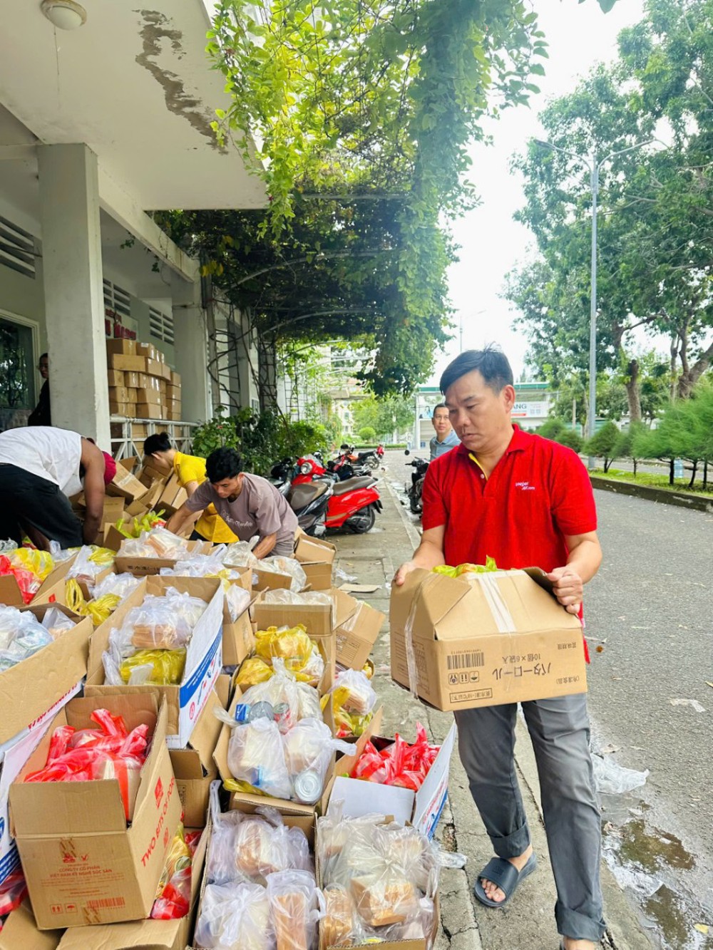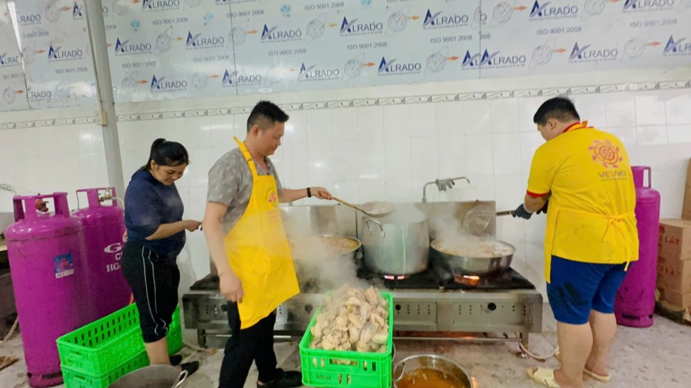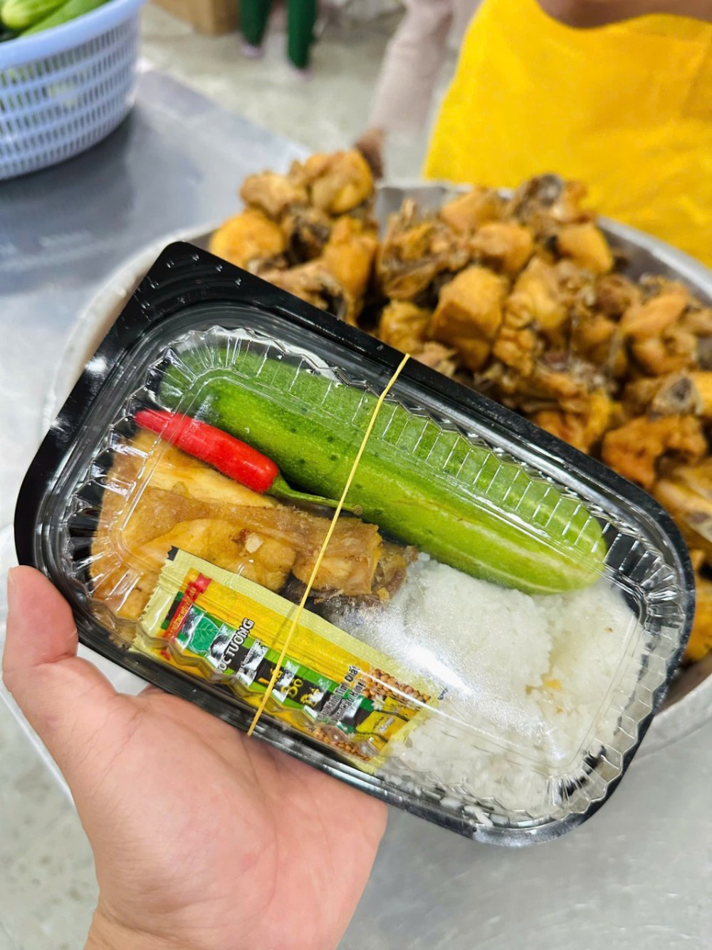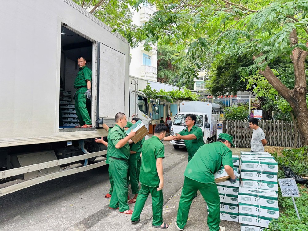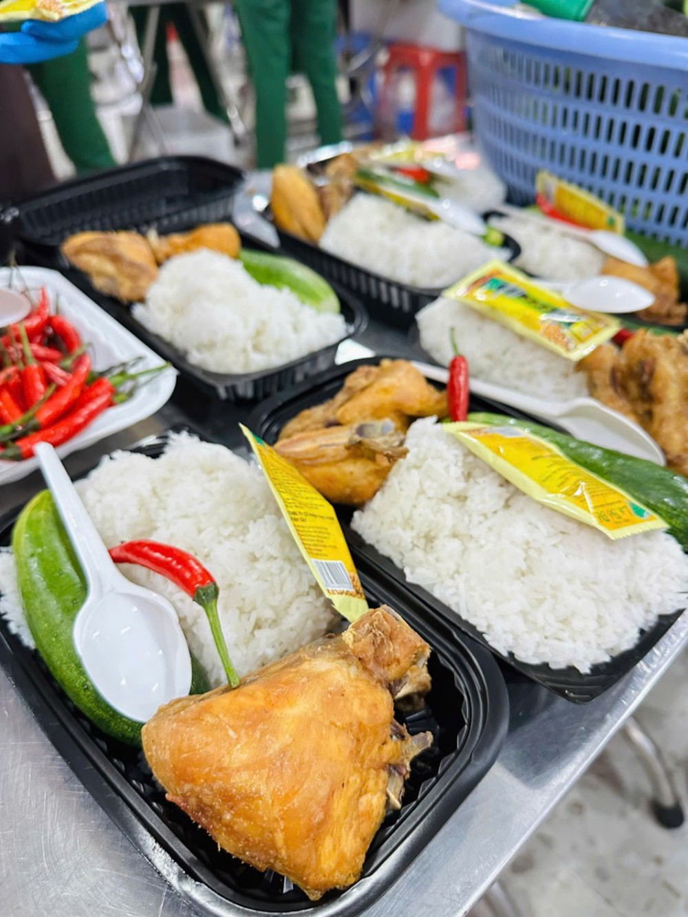 Để chuẩn bị cho các phần cơm phát trong trưa và chiều mỗi ngày, từ 3 giờ sáng các đoàn xe tải, container đã có mặt tại điểm tập kết. Công tác an toàn vệ sinh thực phẩm luôn được đảm bảo, đặc biệt với hệ thống container lạnh hoạt động 24/24 giúp bảo quản thực phẩm tươi sạch và an toàn.