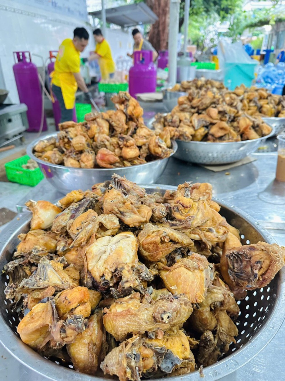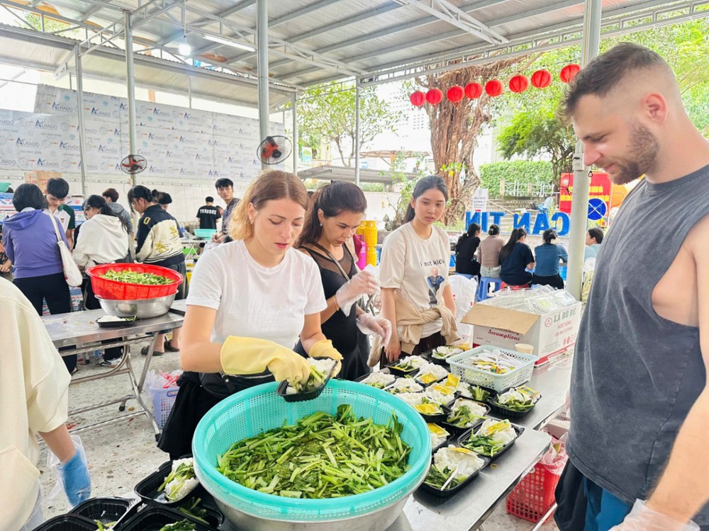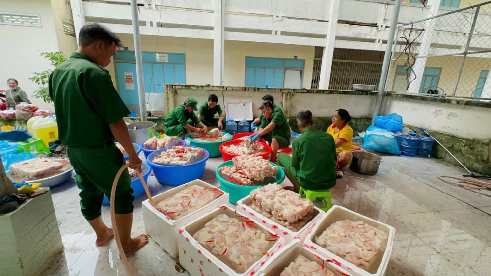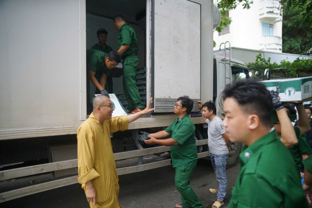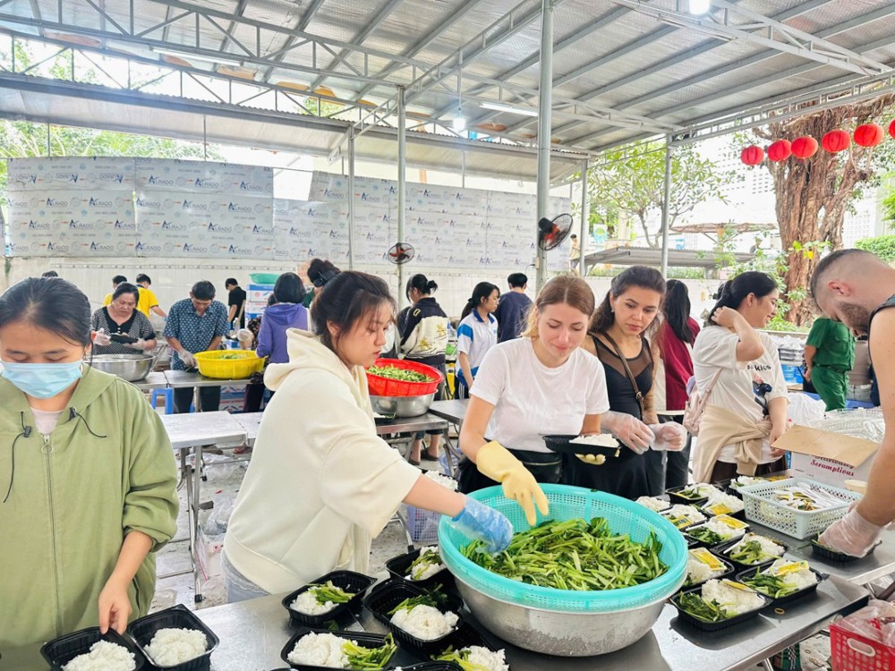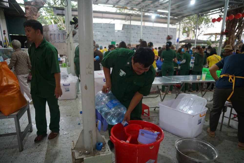 Để chuẩn bị cho các phần cơm phát trong trưa và chiều mỗi ngày, từ 3 giờ sáng các đoàn xe tải, container đã có mặt tại điểm tập kết. Công tác an toàn vệ sinh thực phẩm luôn được đảm bảo, đặc biệt với hệ thống container lạnh hoạt động 24/24 giúp bảo quản thực phẩm tươi sạch và an toàn.