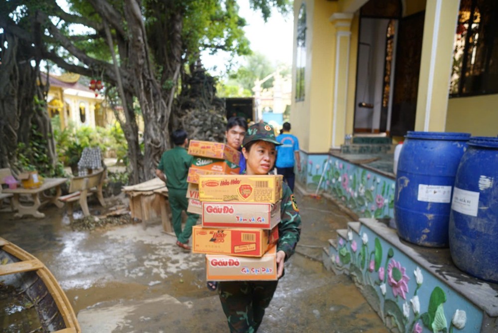 Mưa bão đi qua để lại cảnh tượng thương tâm: mất điện, thiếu nước sạch, thiếu áo ấm, lương thực và các nhu yếu phẩm thiết yếu. Nhiều khu vực bị chia cắt, phải dùng xuồng ghe để tiếp cận.