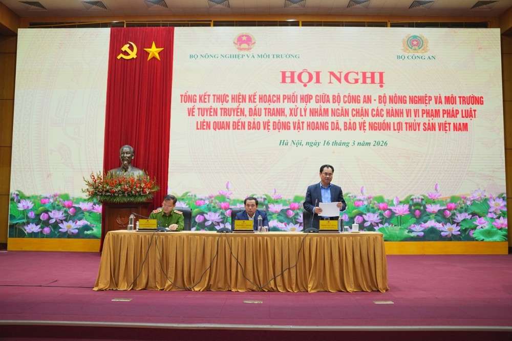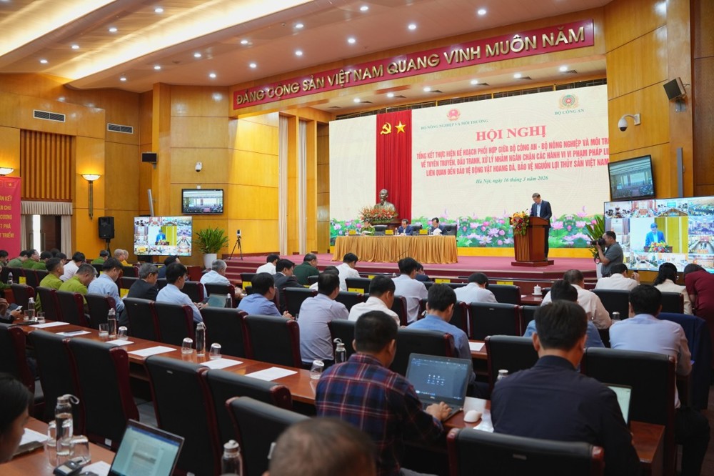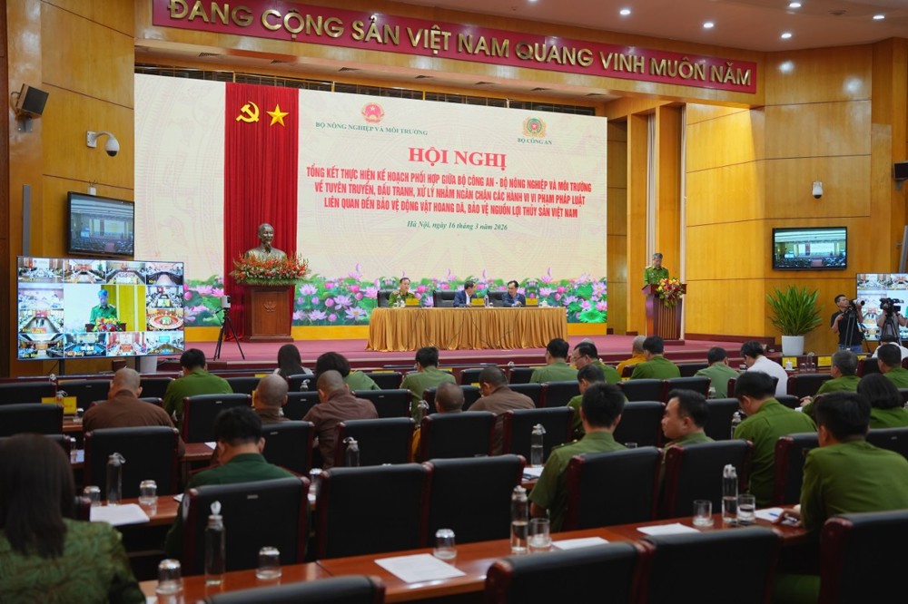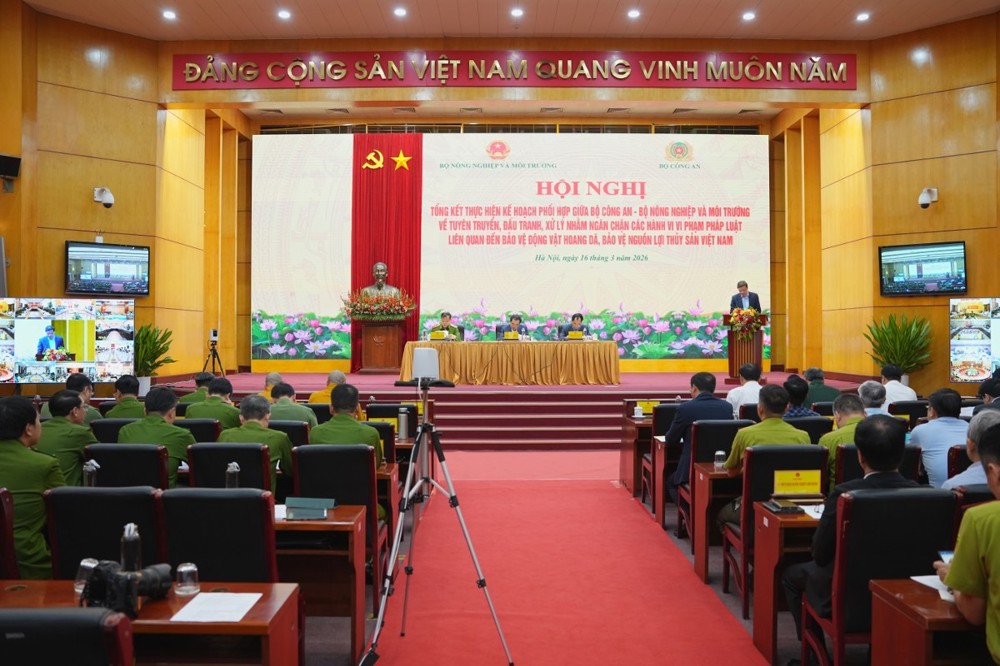 Ngày 16/3/2026, tại trụ sở Bộ Nông nghiệp và Môi trường (số 10 Tôn Thất Thuyết, TP. Hà Nội), Bộ Nông nghiệp và Môi trường phối hợp với Bộ Công an tổ chức Hội nghị tổng kết việc thực hiện Kế hoạch số 628 về tuyên truyền, đấu tranh và xử lý các hành vi vi phạm liên quan đến bảo vệ động vật hoang dã và nguồn lợi thủy sản. Hội nghị được tổ chức theo hình thức trực tiếp kết hợp trực tuyến tới 34 tỉnh, thành phố trên cả nước.