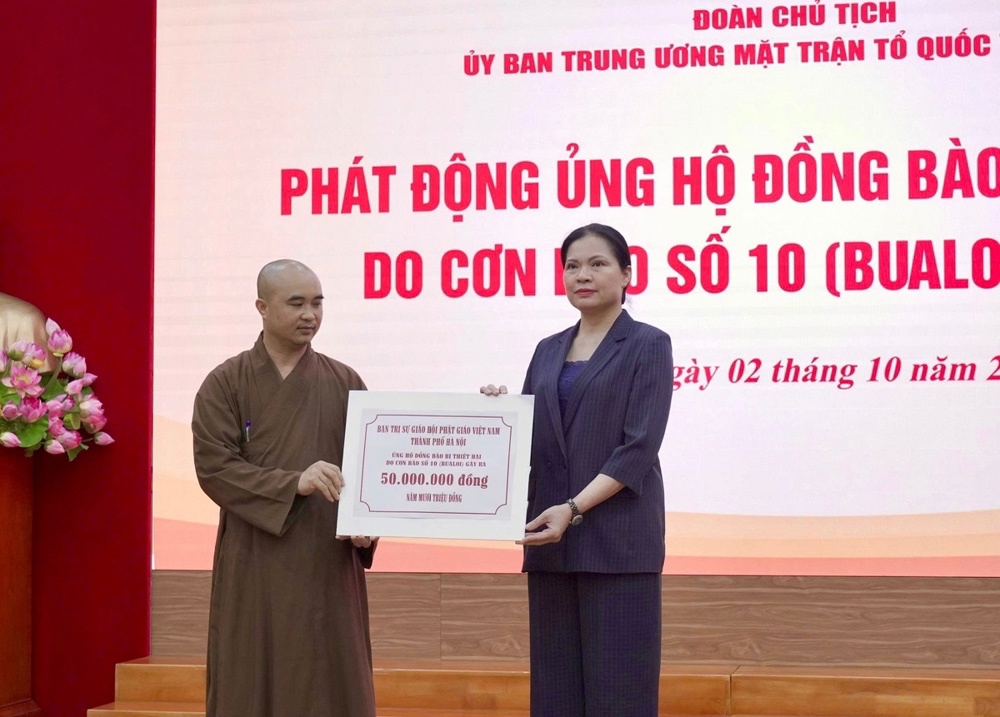 Cùng tại buổi lễ, đại diện Ban Trị sự GHPGVN Thành phố Hà Nội cũng đóng góp 50 triệu đồng, thể hiện tấm lòng từ bi của Tăng Ni, Phật tử Thủ đô.
