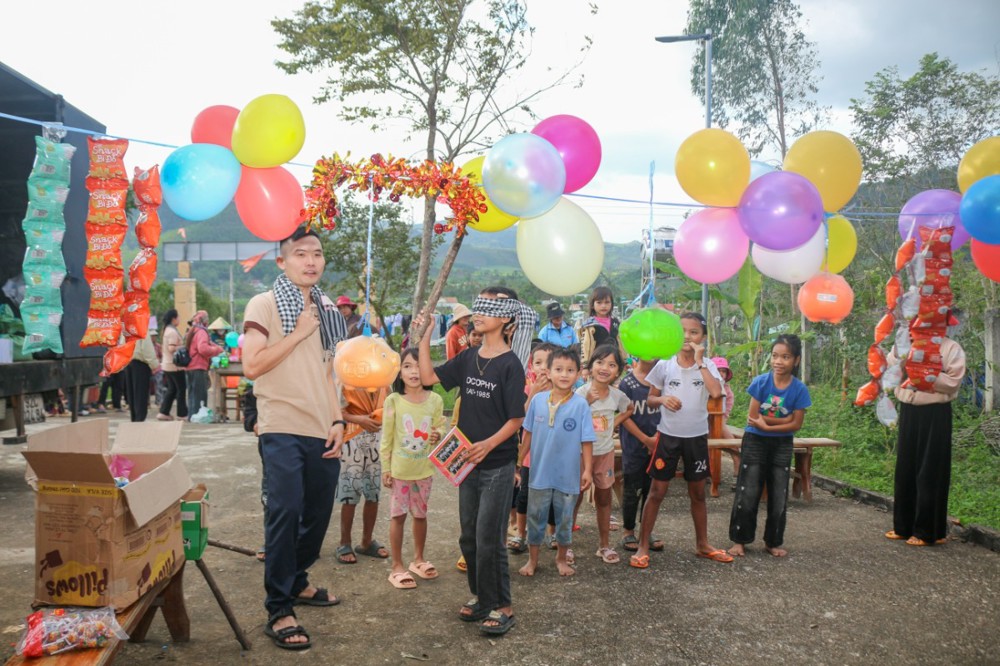 Bên cạnh đó, đoàn cũng thay mặt Mạnh thường quân trao tặng 40 suất quà gồm gạo, mì gói và nhu yếu phẩm cho các hộ có hoàn cảnh khó khăn, mỗi phần trị giá 200 ngàn đồng. Song với đó, trao tặng quần áo cũ, giầy dép trẻ em và đồ dùng sinh hoạt. Ngoài ra, đoàn cũng đã tổ chức các gian hàng trò chơi dân gian như: tô tượng, đập heo và ném banh vui nhộn, đầy ấp tiếng cười tạo nên không khí ấm áp, thân thương. Tổng kinh phí thực hiện chương trình là hơn 30 triệu đồng.