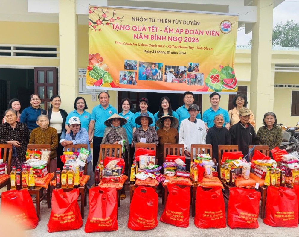Với tinh thần sẻ chia và tương thân tương ái, nhóm từ thiện Tùy Duyên đã trao tặng 200 phần quà Tết đến bà con tại các thôn Cảnh An 1, Cảnh An 2, Bình An 1, Bình An 2, xã Tuy Phước Tây, tỉnh Gia Lai. Mỗi phần quà trị giá trên 500.000 đồng, gồm các nhu yếu phẩm thiết yếu như: gạo, dầu ăn, nước tương, nước mắm, bột ngọt, bột nêm, đường, bánh, kẹo và mứt Tết. Tổng kinh phí cho chuyến thiện nguyện lần này hơn 100 triệu đồng.