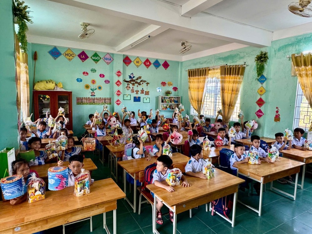 Sáng ngày 12/8 (Âm lịch), 100 phần quà gồm bánh, kẹo và sữa đã được trao đến các em nhỏ tại Trường Mầm non Nghĩa Hà (xã An Phú, tỉnh Quảng Ngãi). Chiều cùng ngày, 375 phần quà được tiếp tục phát tại khu vực Bắc Phương Danh, phường An Nhơn.