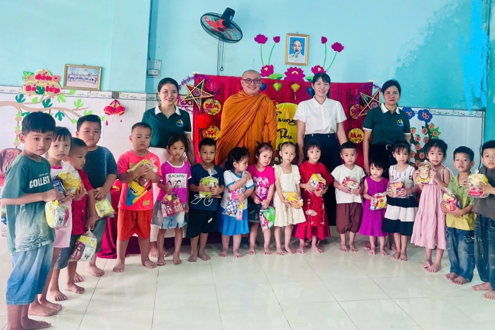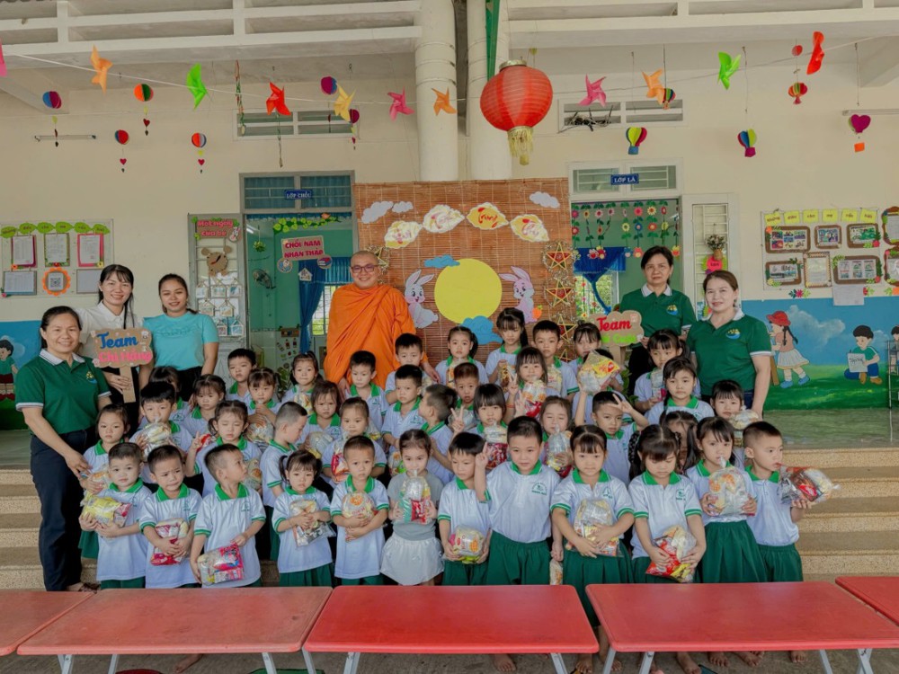 Tổng cộng 2.000 phần quà Trung thu, mỗi phần trị giá gần 20.000 đồng, đã được trao tận tay các em. Đây không chỉ là món quà vật chất, mà còn là thông điệp yêu thương, là tinh thần phụng sự và sẻ chia mà tịnh xá Ngọc Duyên cùng quý Phật tử gửi gắm đến thế hệ tương lai.