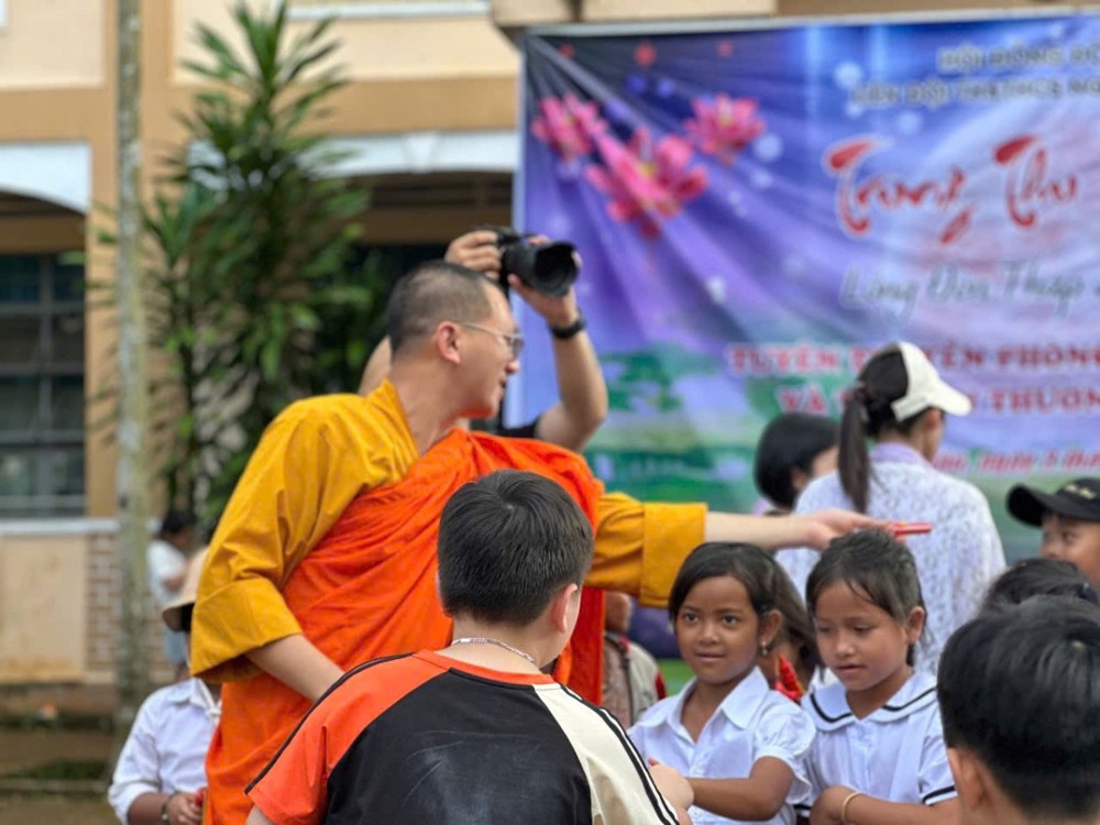 Chương trình còn là nhịp cầu yêu thương kết nối tấm lòng của các mạnh thường quân và quý Phật tử, lan tỏa tinh thần “lá lành đùm lá rách”, giúp các em nhỏ vùng sâu vùng xa có thêm động lực bước vào năm học mới với niềm tin và hy vọng.