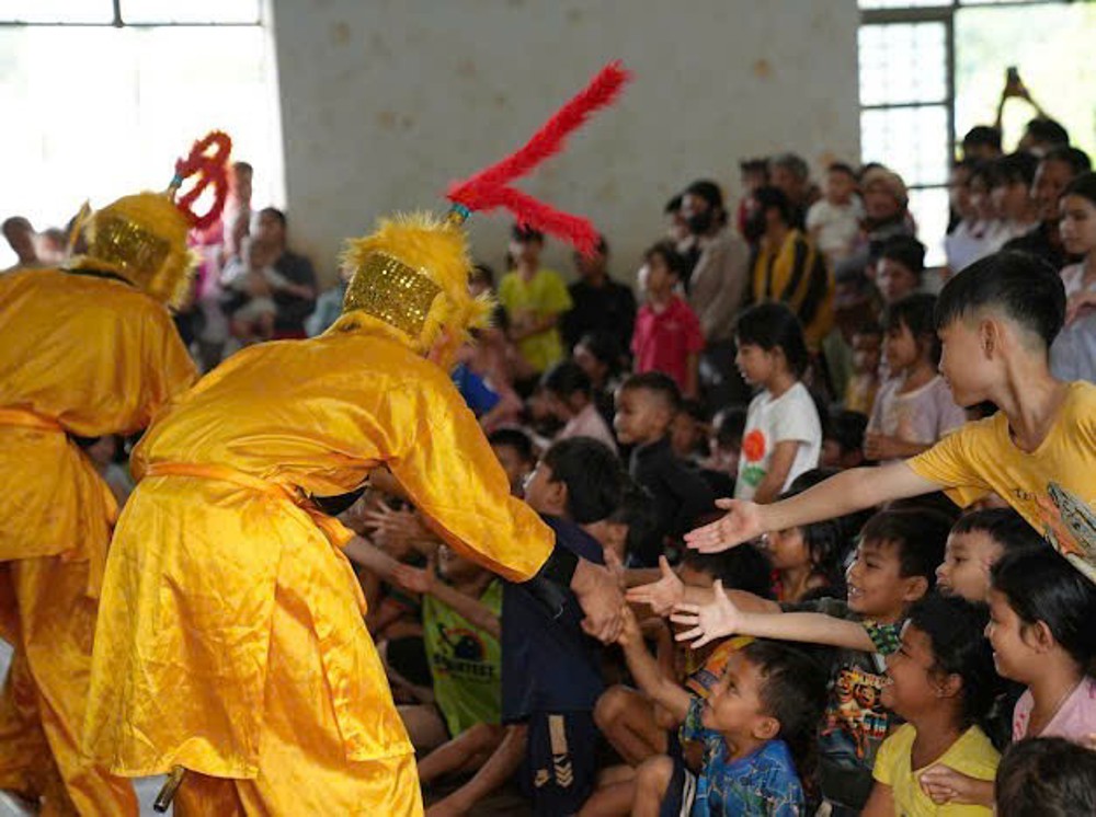 Các em thiếu nhi được hòa mình vào nhiều hoạt động vui nhộn như rước đèn, văn nghệ, trò chơi dân gian và đặc biệt là nhận hơn 1.000 phần quà gồm bánh, sữa, lồng đèn và đồ dùng học tập. Niềm vui lấp lánh trong đôi mắt trẻ thơ khiến không gian càng thêm ấm áp, chan chứa tình người.