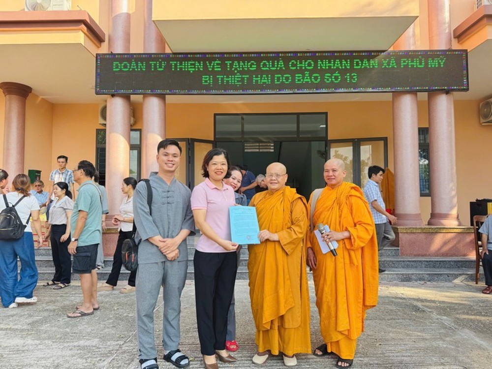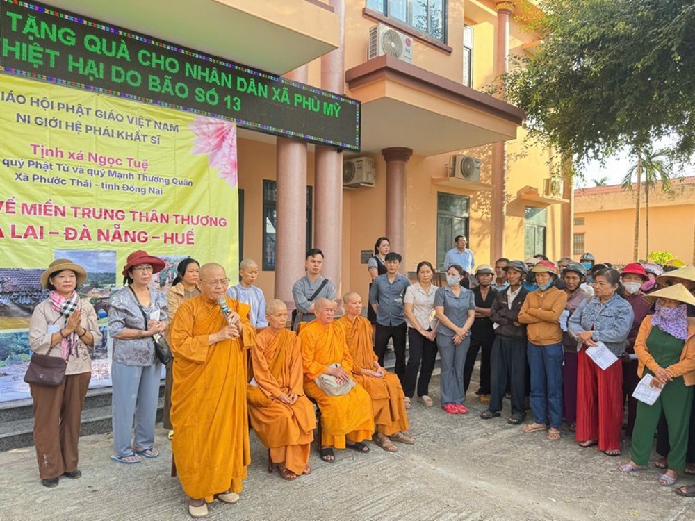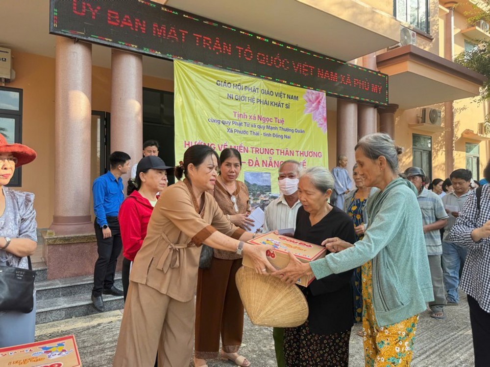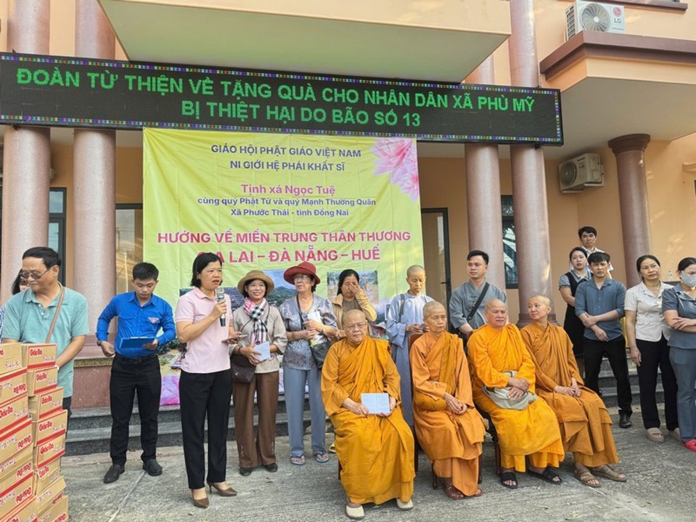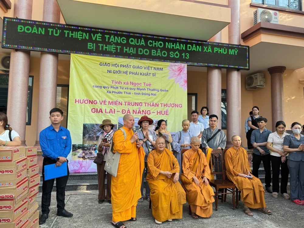 PSO- Sáng ngày 14/11/2025 (nhằm ngày 25 tháng chín năm Ất Tỵ), tại UBND xã Phù Mỹ, tỉnh Gia Lai (Bình Định cũ) đoàn Từ thiện do Ni trưởng Xuân Liên – Ủy viên Thường trực Ban Trị sự, Phó Trưởng Phân ban Ni giới tỉnh Đồng Nai, Giáo phẩm Thường trực Ni giới Hệ phái Khất sĩ, Trưởng ban Quản trị tịnh xá Ngọc Uyển -phường Biên Hoà, Trụ trì tịnh xá Ngọc Tuệ -xã Phước Thái làm Trưởng đoàn– cùng quý thiện tín Phật tử và mạnh thường quân đã đến thăm và trao 200 phần quà trị giá hơn 100 triệu đồng cứu trợ đồng bào xã Phù Mỹ bị ảnh hưởng bão số 13 (Kalmaegi).