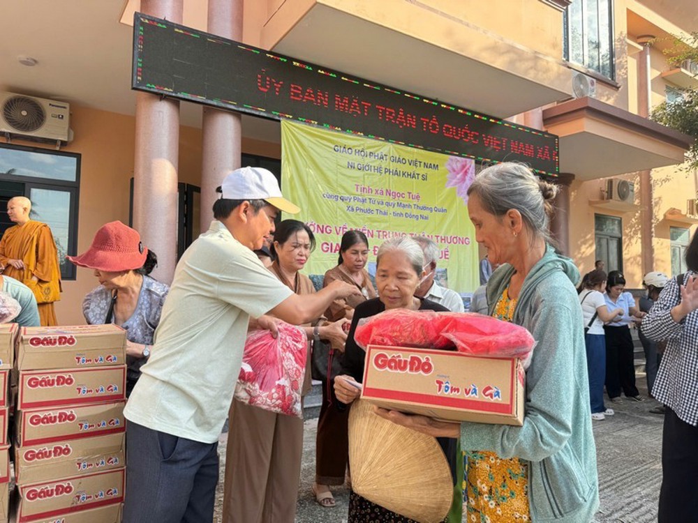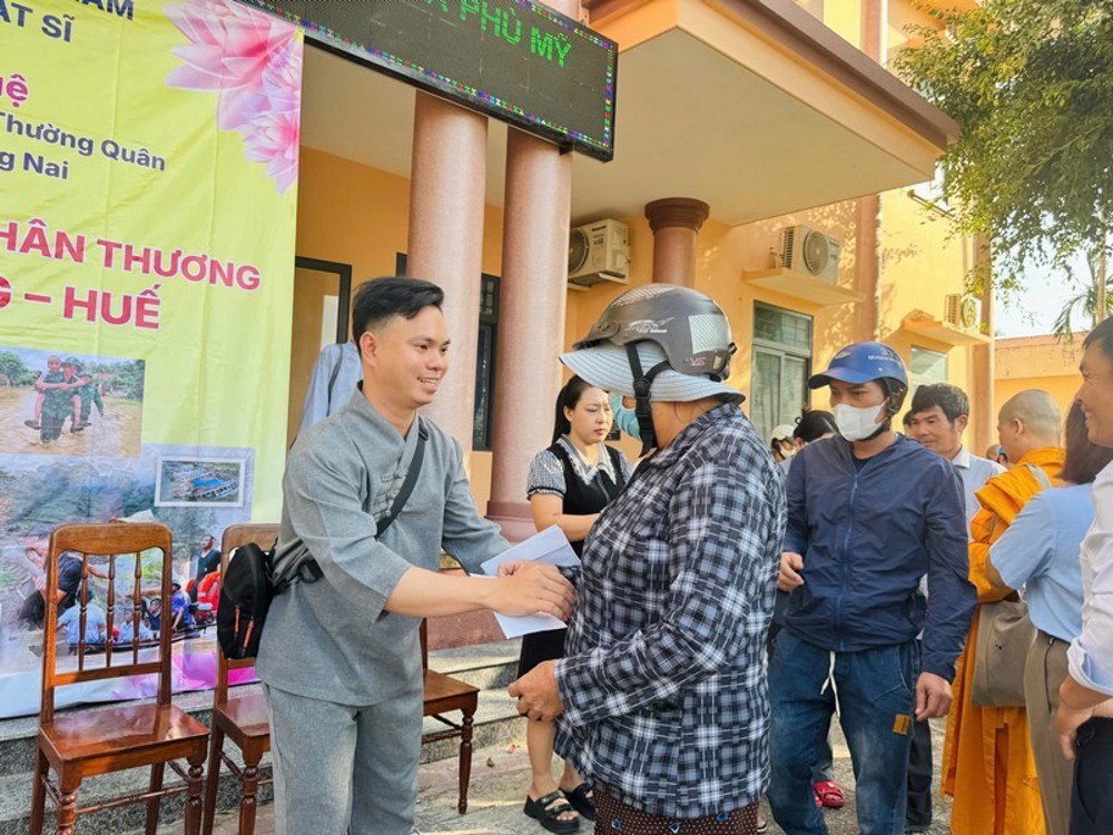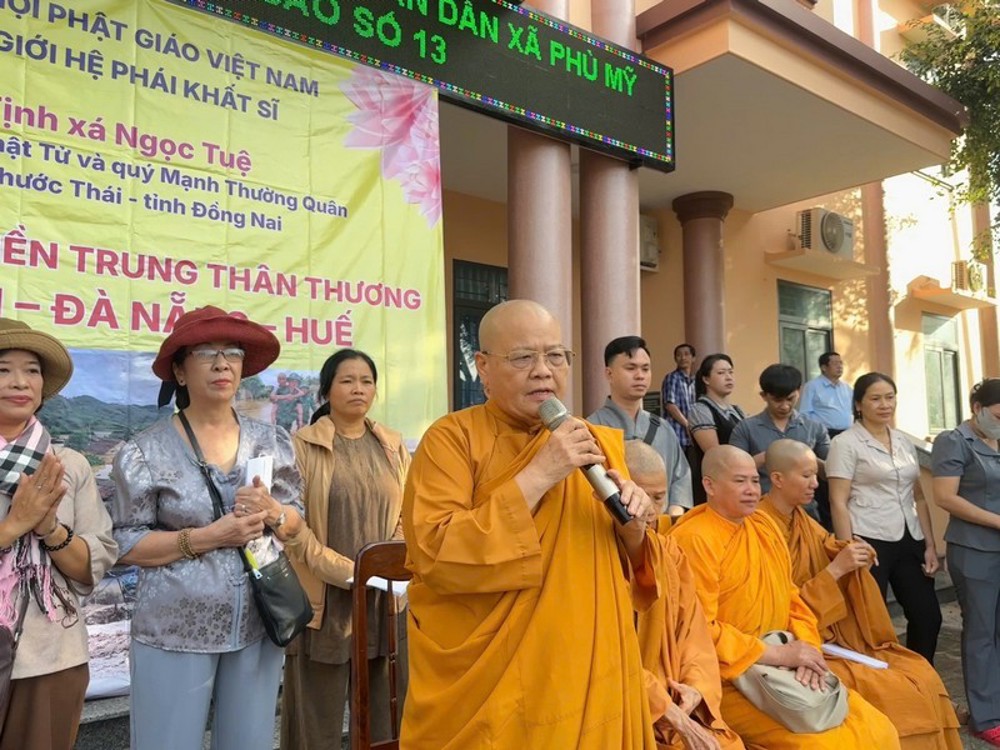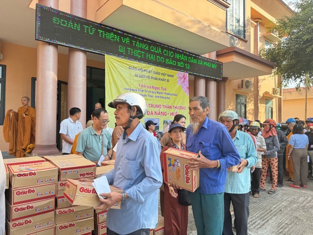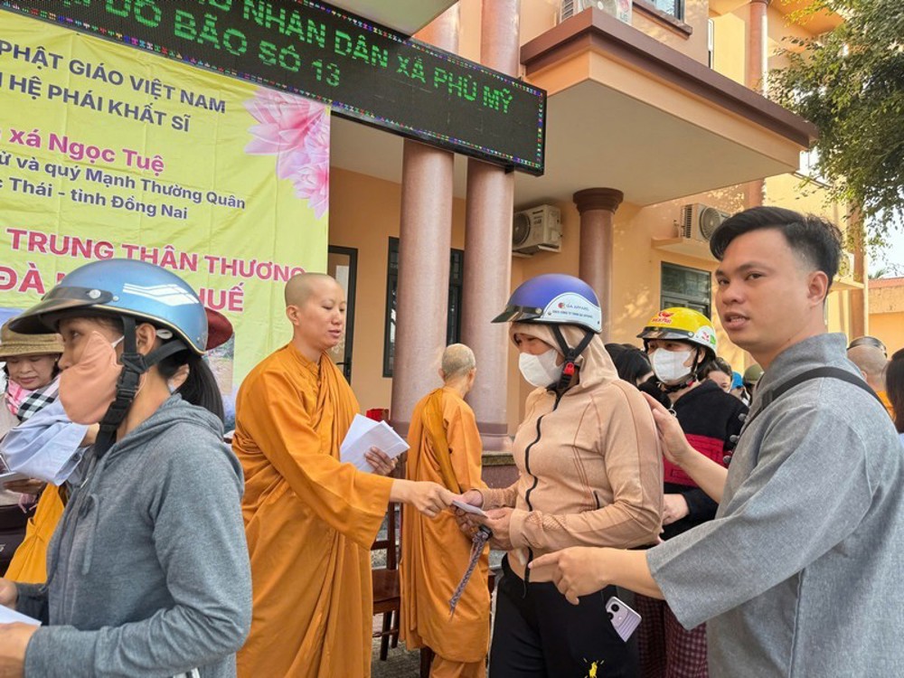 PSO- Sáng ngày 14/11/2025 (nhằm ngày 25 tháng chín năm Ất Tỵ), tại UBND xã Phù Mỹ, tỉnh Gia Lai (Bình Định cũ) đoàn Từ thiện do Ni trưởng Xuân Liên – Ủy viên Thường trực Ban Trị sự, Phó Trưởng Phân ban Ni giới tỉnh Đồng Nai, Giáo phẩm Thường trực Ni giới Hệ phái Khất sĩ, Trưởng ban Quản trị tịnh xá Ngọc Uyển -phường Biên Hoà, Trụ trì tịnh xá Ngọc Tuệ -xã Phước Thái làm Trưởng đoàn– cùng quý thiện tín Phật tử và mạnh thường quân đã đến thăm và trao 200 phần quà trị giá hơn 100 triệu đồng cứu trợ đồng bào xã Phù Mỹ bị ảnh hưởng bão số 13 (Kalmaegi).