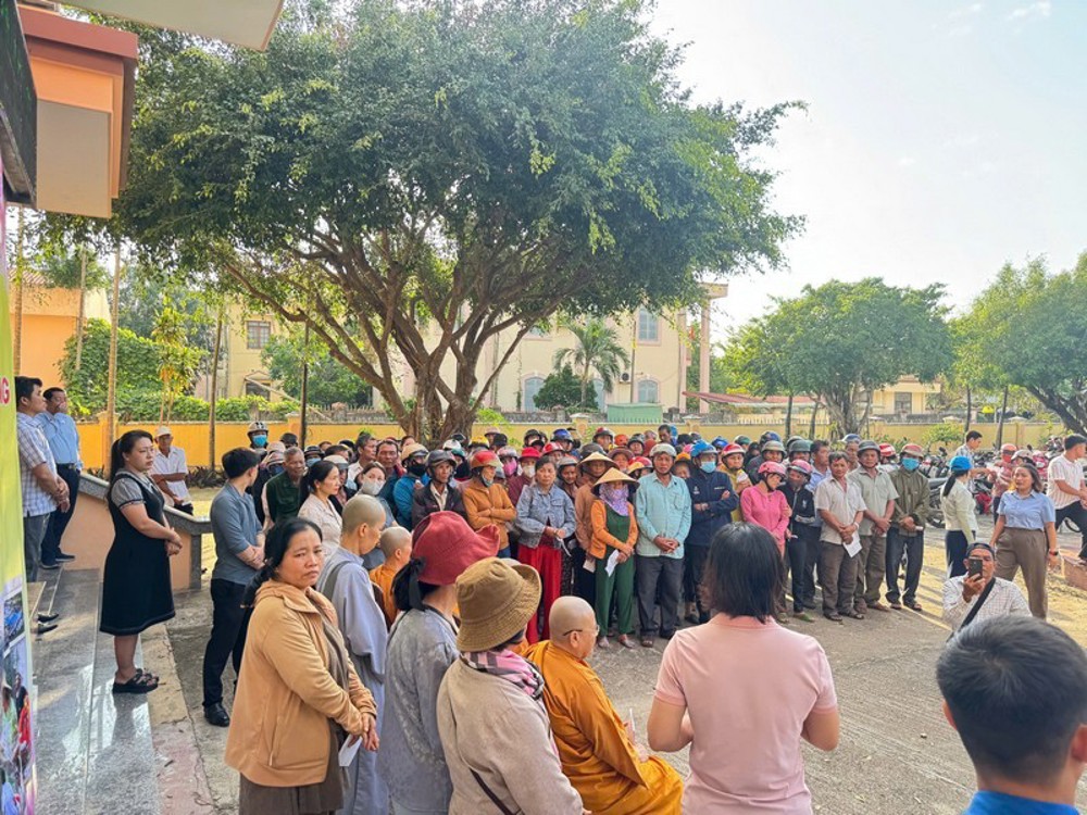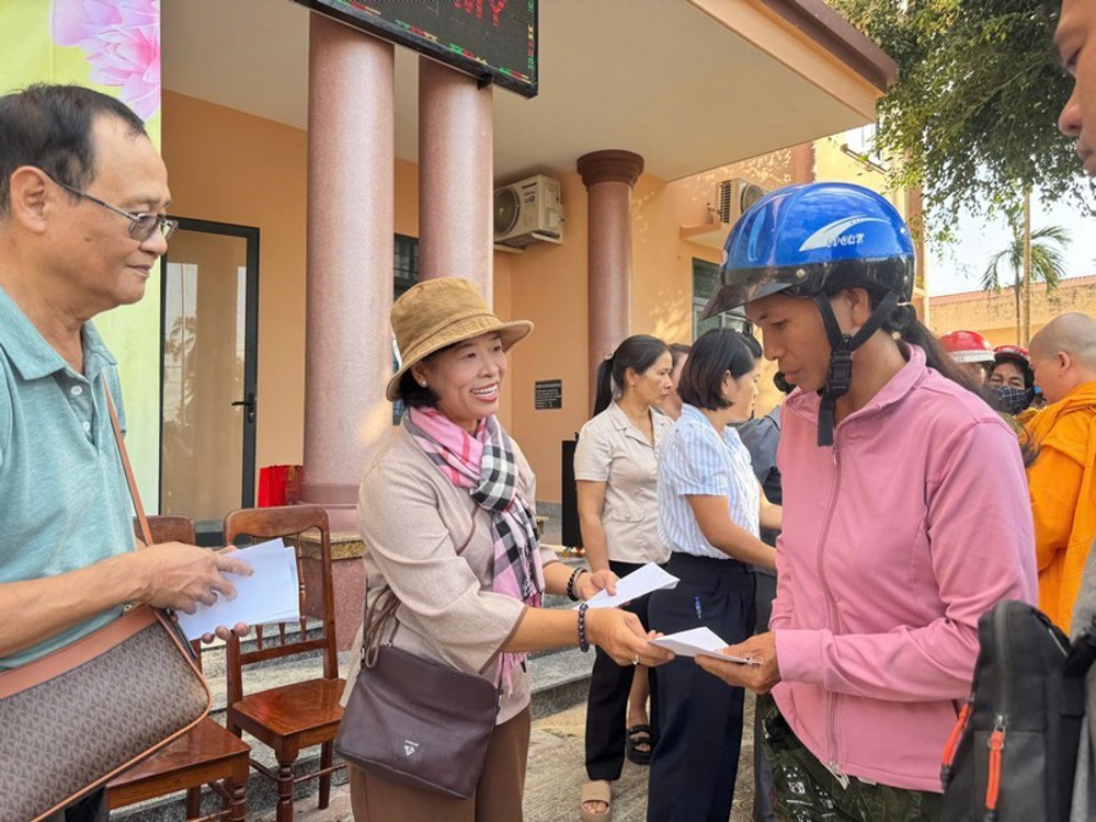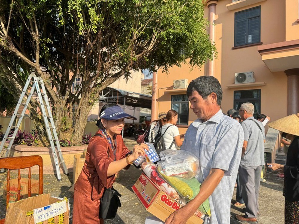 Bà Nguyễn Thị Hải Vân – Chủ tịch Ủy ban MTTQVN xã – xúc động cảm ơn chư Tôn đức trong đoàn cùng các mạnh thường quân và quý Phật tử đã vượt đường xa đồng hành cùng địa phương trong công tác an sinh xã hội, đây là niềm động viên lớn lao để đồng bào địa phương sớm vượt qua khó khăn sau bão.